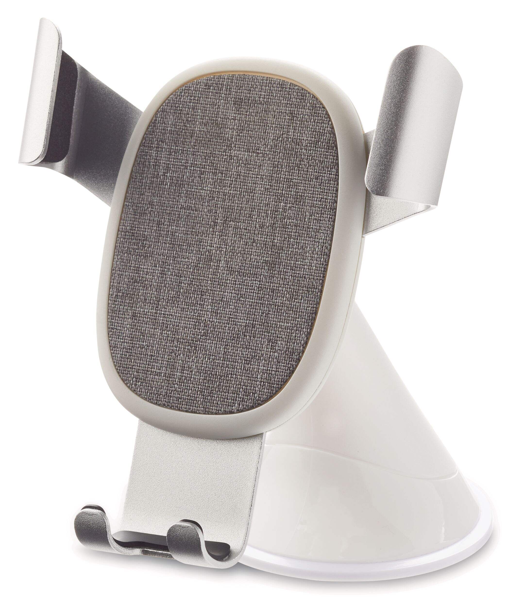 The Bluehive Nordique Fabric Phone Mount in white is a reliable and practical accessory for your vehicle that allows you to safely mount and angle your phone even when driving. This phone mount attaches securely to your car's windshields and dashboards with a strong suction cup base and padded grips. The cable passing through the feet of the mount allows for charging, ensuring your phone stays powered up on the go. Made with a combination of plastic and fabric, this phone mount offers durability and a sleek look. 1-year warranty included.
