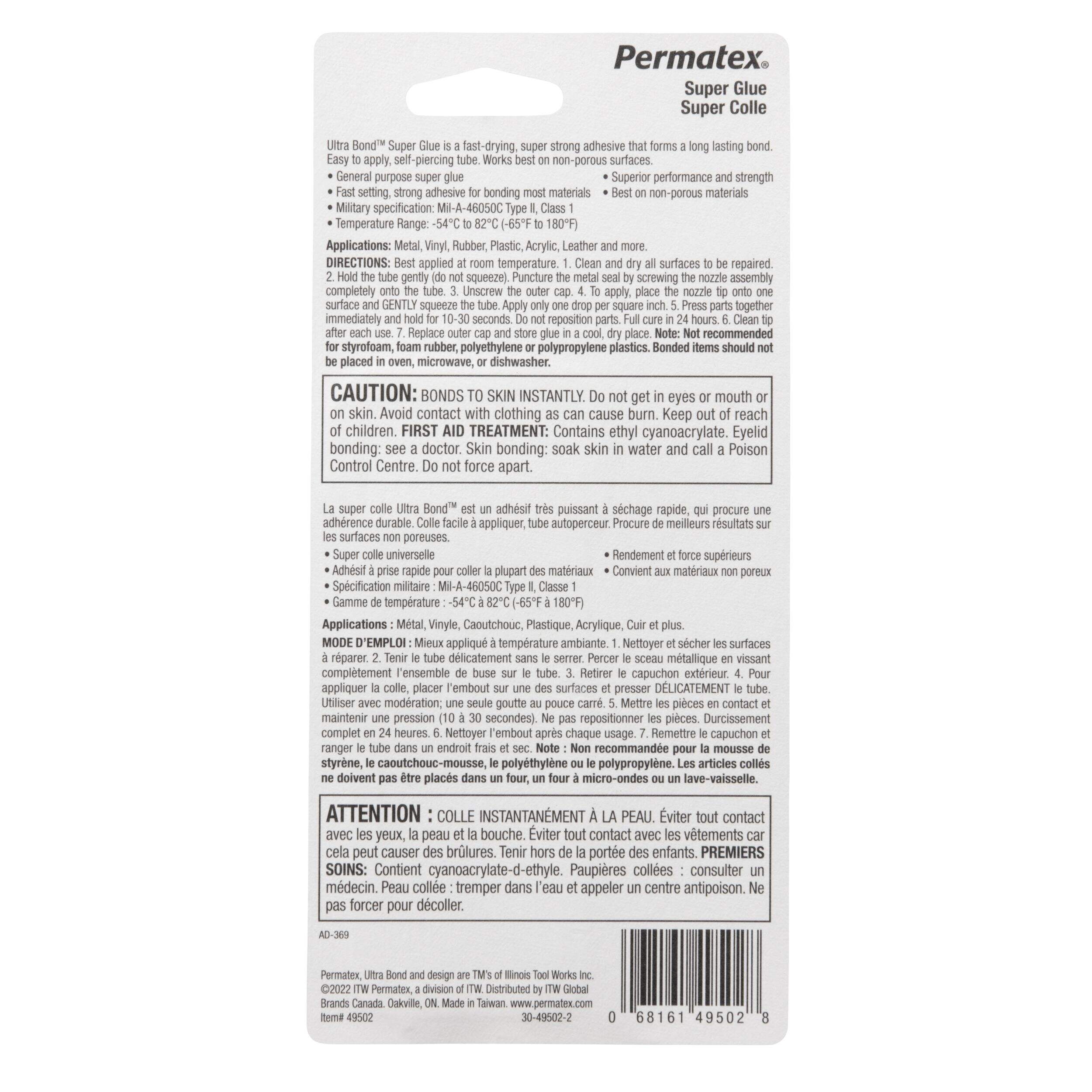 Permatex Fast Drying Super Glue is specially designed for a faster, long-lasting bond