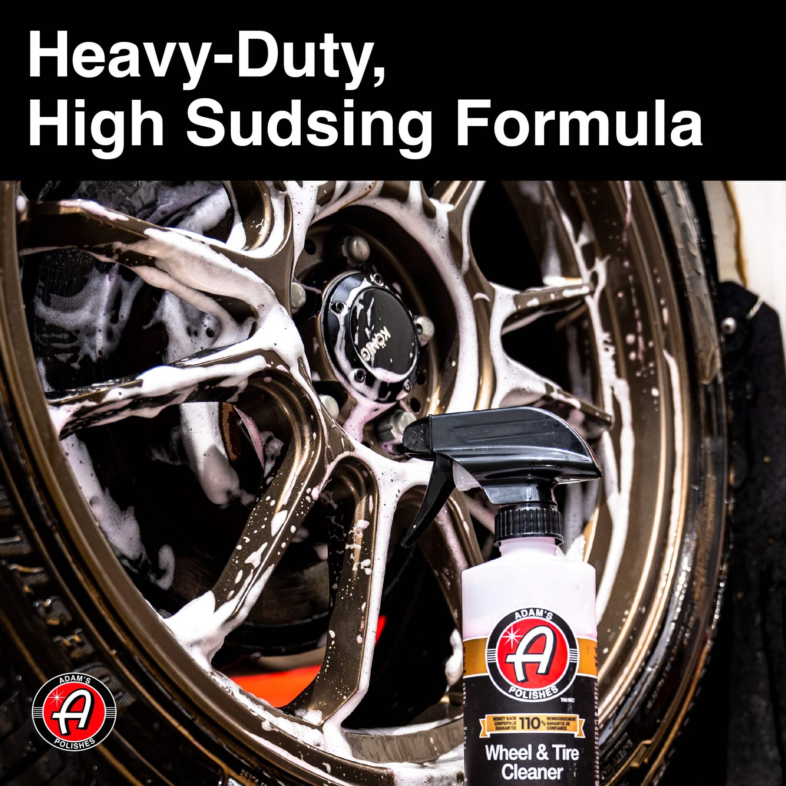 Adam's Polishes Car Wheel & Tire Cleaner Spray is designed to make cleaning stubborn tires and caked up wheel contamination a breeze with one chemical. The formulation specifically targets neglected sidewalls and wheel surfaces to breakdown buildup.