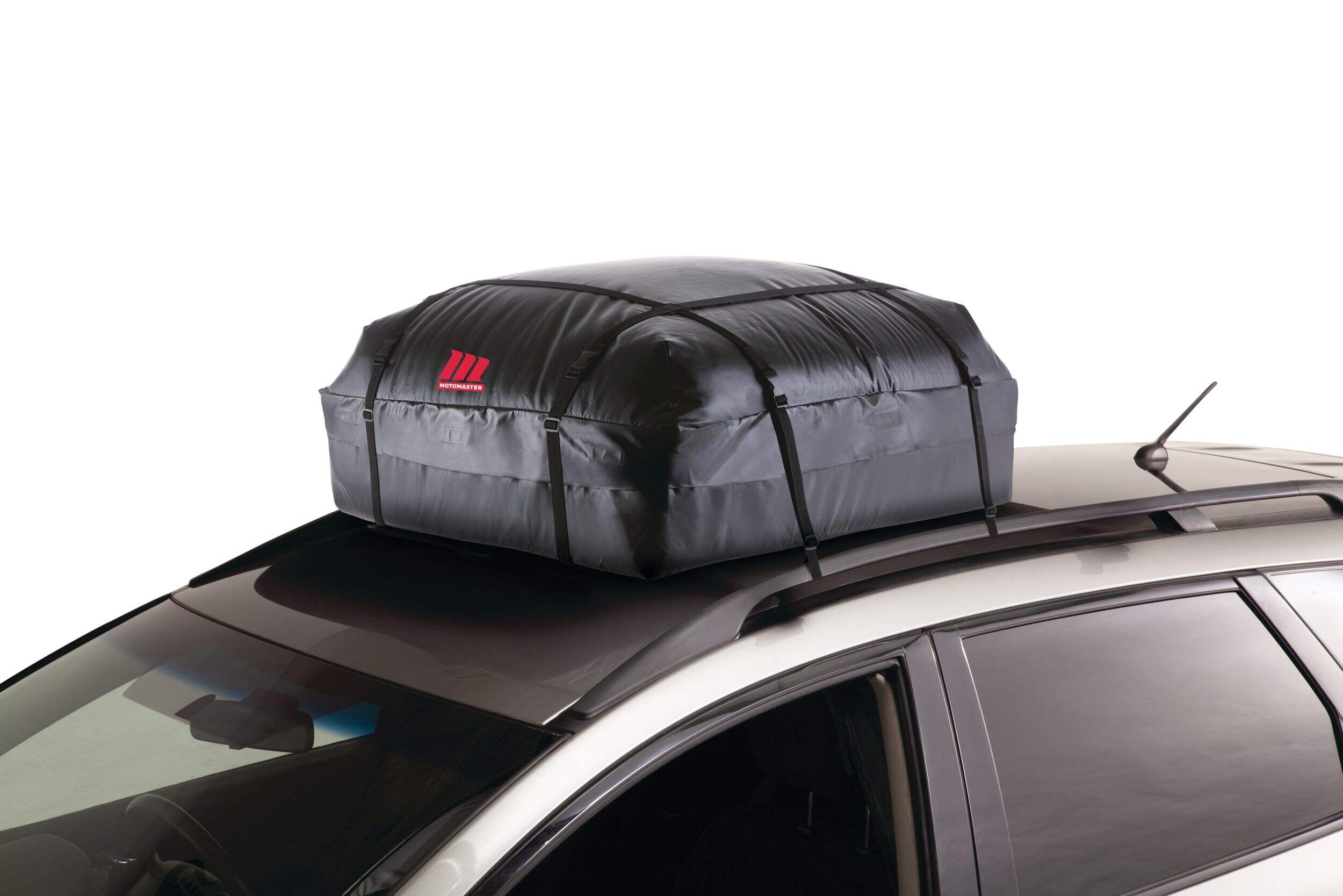 The MotoMaster Rooftop Cargo Carrier Bag is a great way to add extra storage capacity to your vehicle. The bag connects to preexisting roof racks and provides a waterproof enclosure you can use to store cargo when trunk space is lacking.