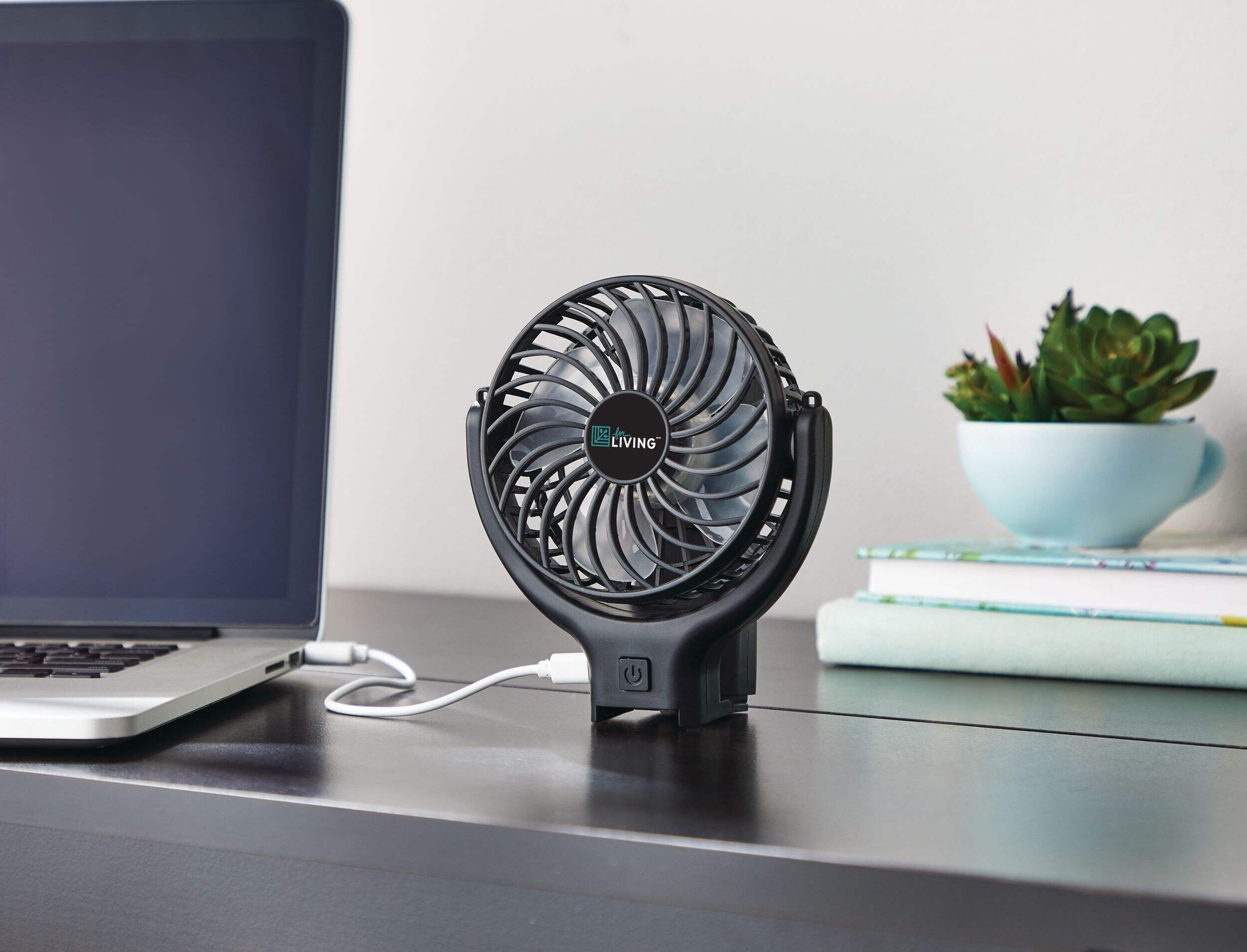 This For Living Portable Fan is USB and battery operated to provide a convenient and powerful personal cooling experience