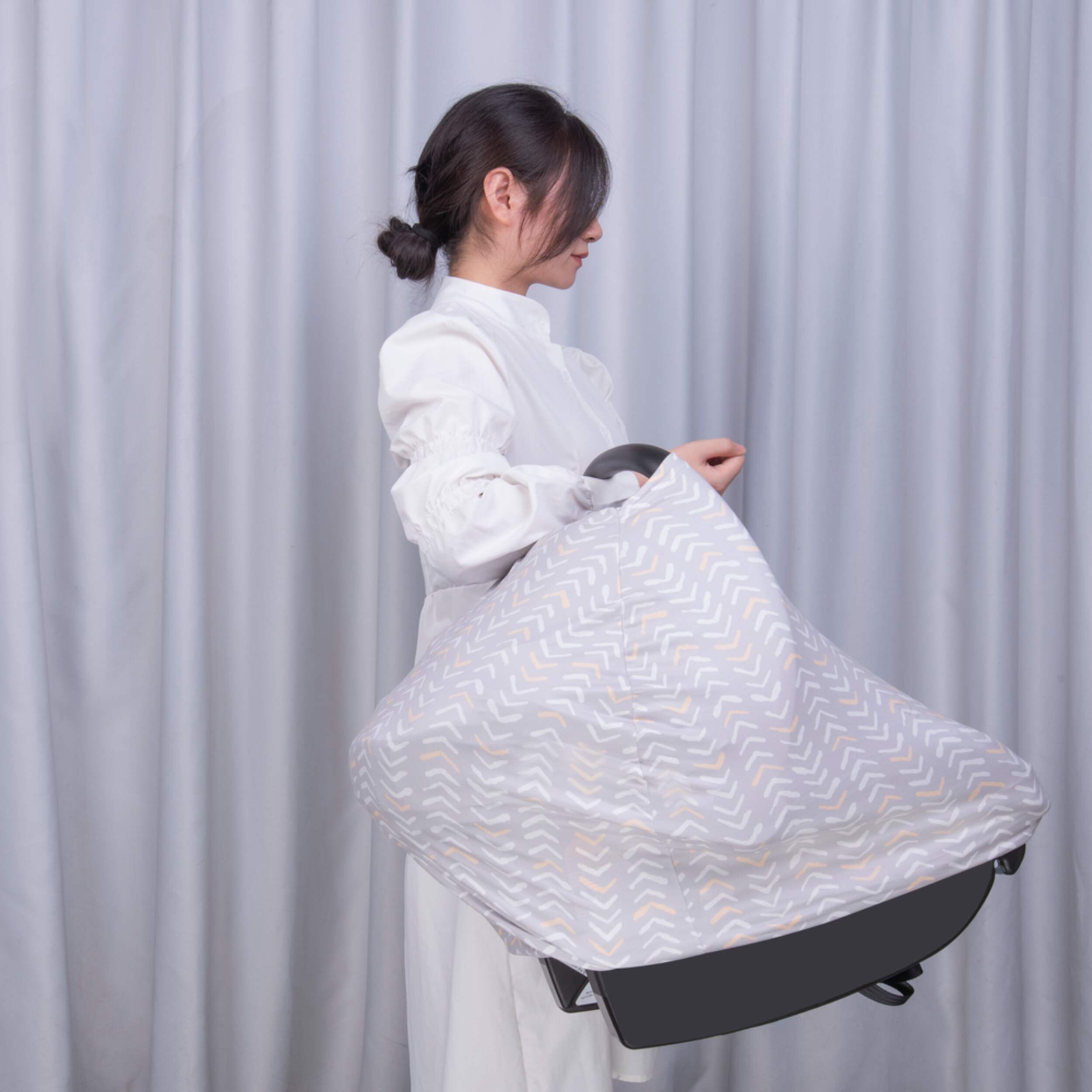 A multi-purpose cover that can be used as a breastfeeding cover, stroller cover, car seat canopy cover, high chair cover and shopping cart cover