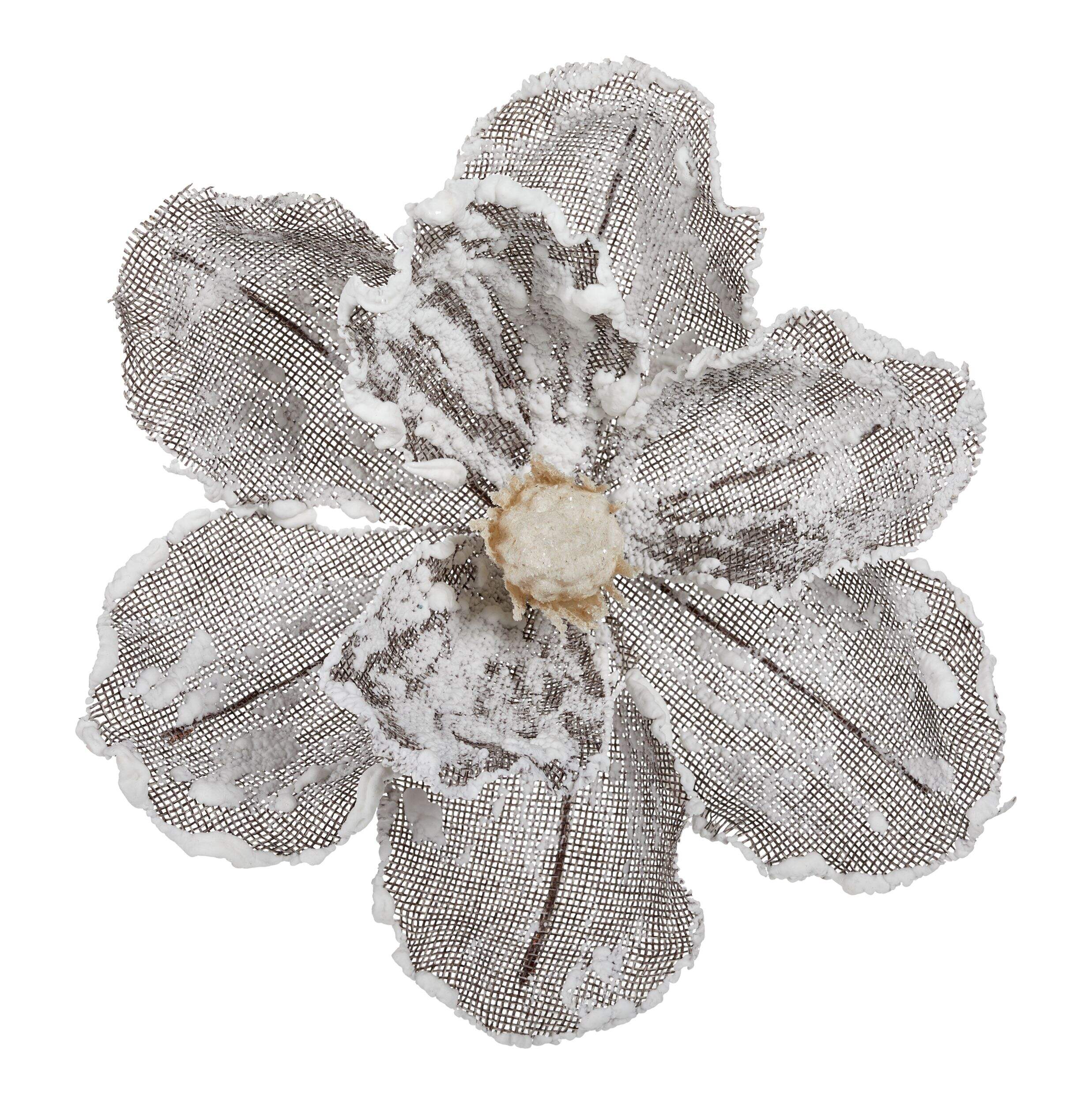 Elevate your holiday decor with the CANVAS Silver Collection Grey Flower Clip-On Christmas Ornament. This versatile piece features an elegant silver flower design that effortlessly clips onto tree branches and wreaths or can be used as a charming centrepiece on your dinner table. With its simple, sophisticated aesthetic, the Grey Flower Clip ornament seamlessly blends into any festive display. Part of the CANVAS Silver Collection, it brings a touch of modern style to your Christmas tree or mantel. The convenient clip-on design allows for quick, fuss-free decorating — no need for cumbersome ornament hooks.