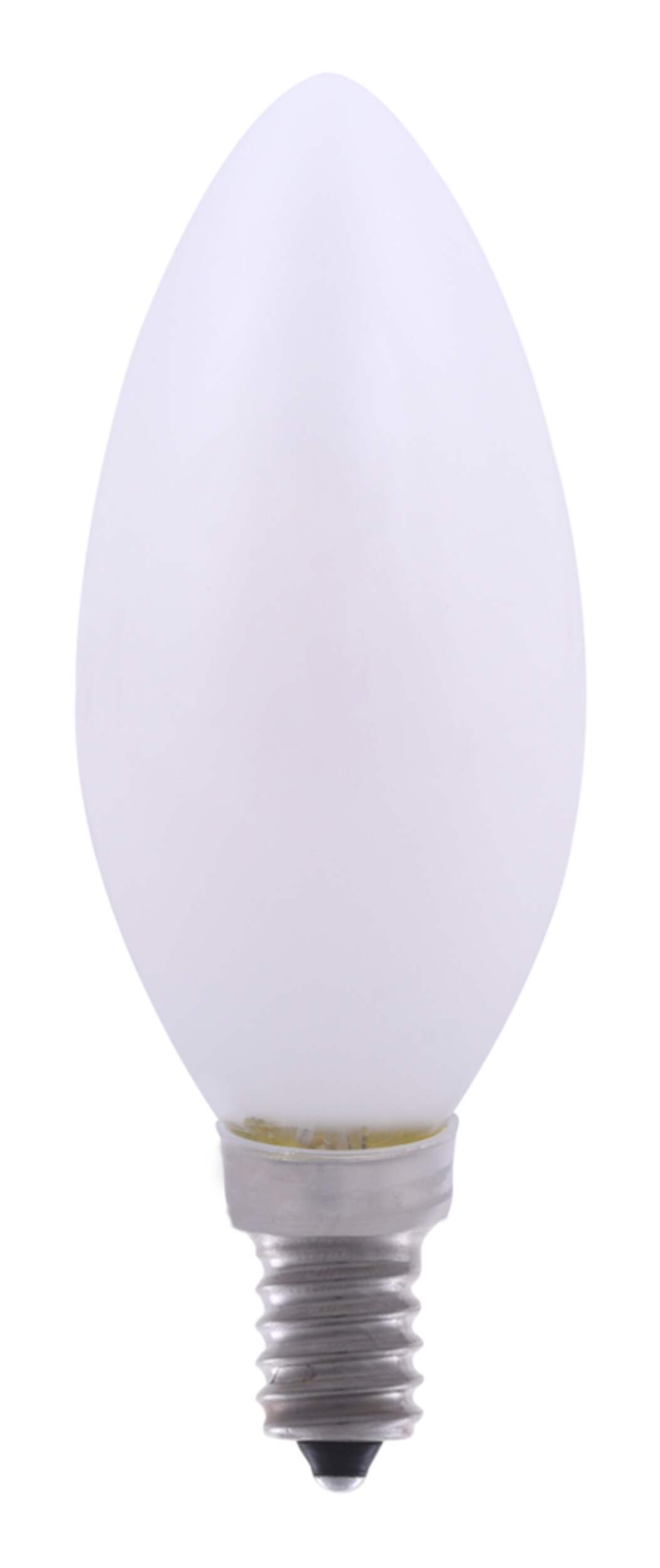 The NOMA Designer Series LED Chandelier Frosted B10 40W Dimmable Warm White Filament Light Bulb has an ambient glow that helps brighten up your home