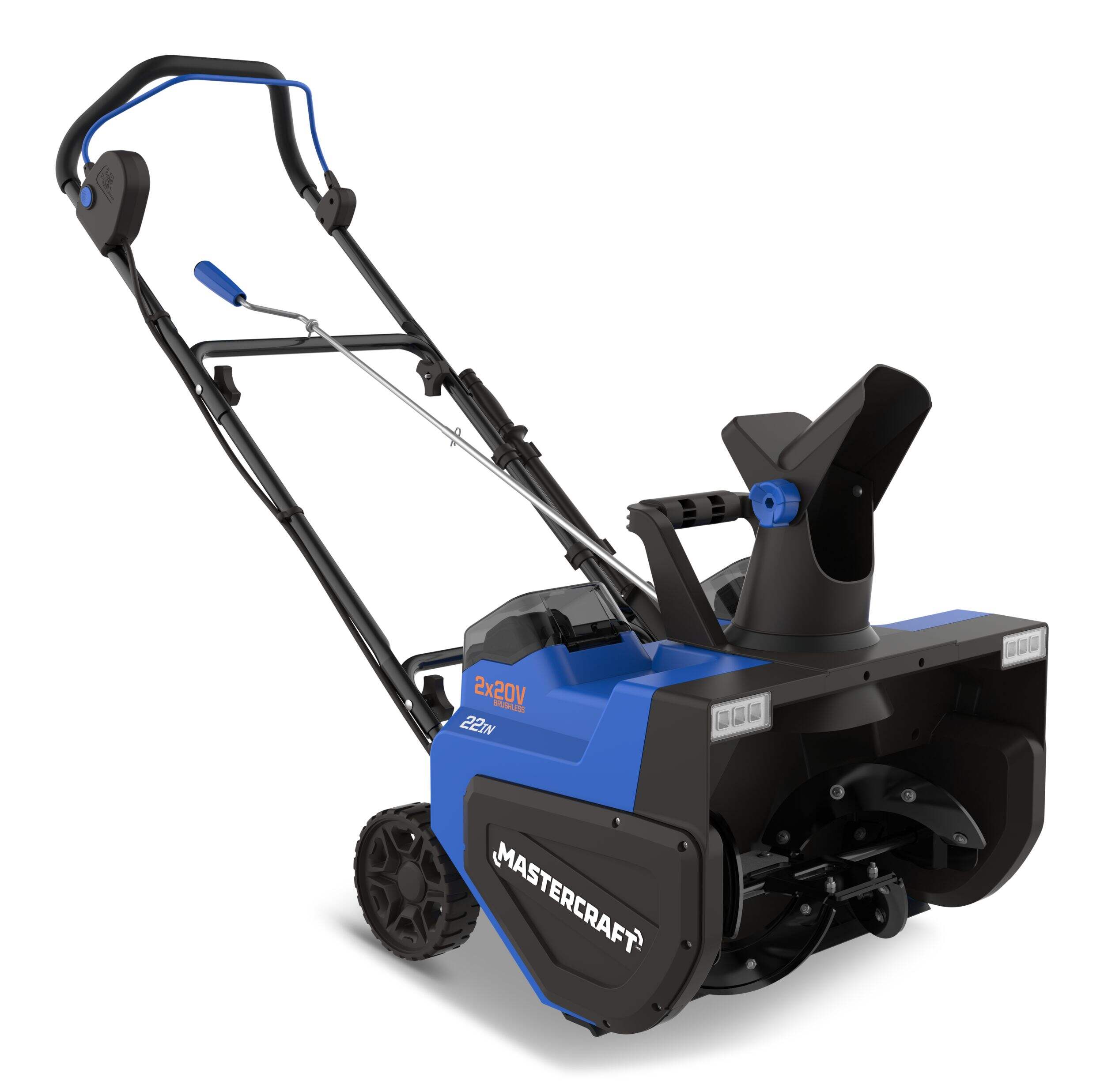 The Mastercraft 22-in Electric Snowblower offers cordless convenience and plenty of snow-moving muscle for easy driveway cleaning after a wintry blast. The 1600W brushless motor provides effortless power for fewer passes and efficient performance. This electric snowblower delivers 25 minutes of runtime on a single battery charge, more than enough to free your vehicle from snowy drifts and clear a path to your door. Complete with two PWR POD 8.0Ah batteries and a charger, it's everything you need to tackle the snow.