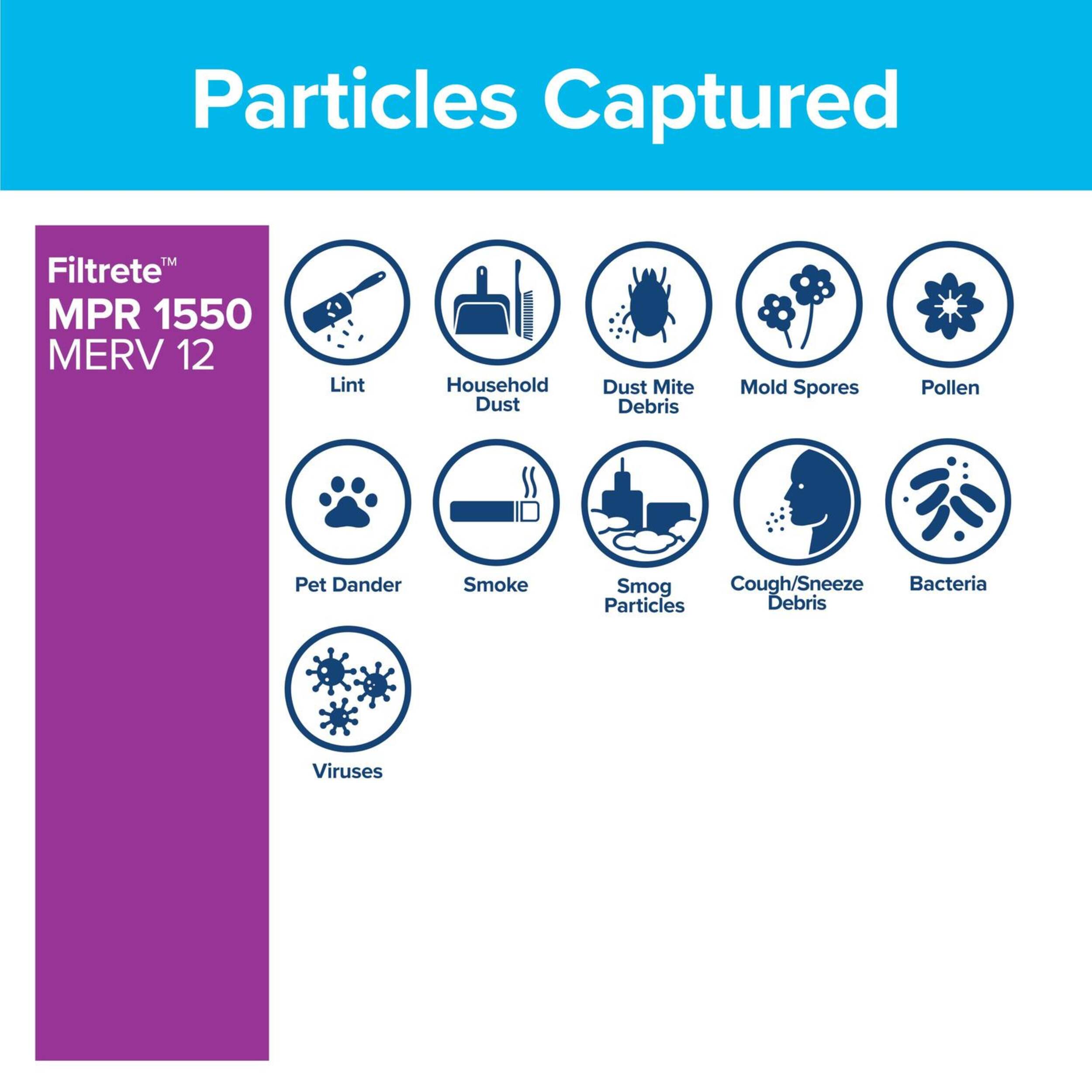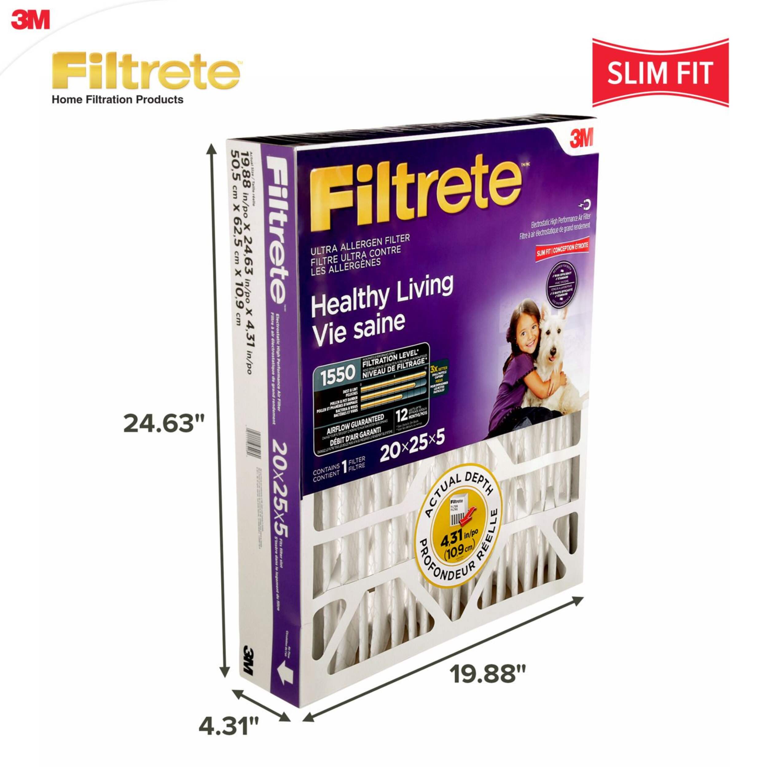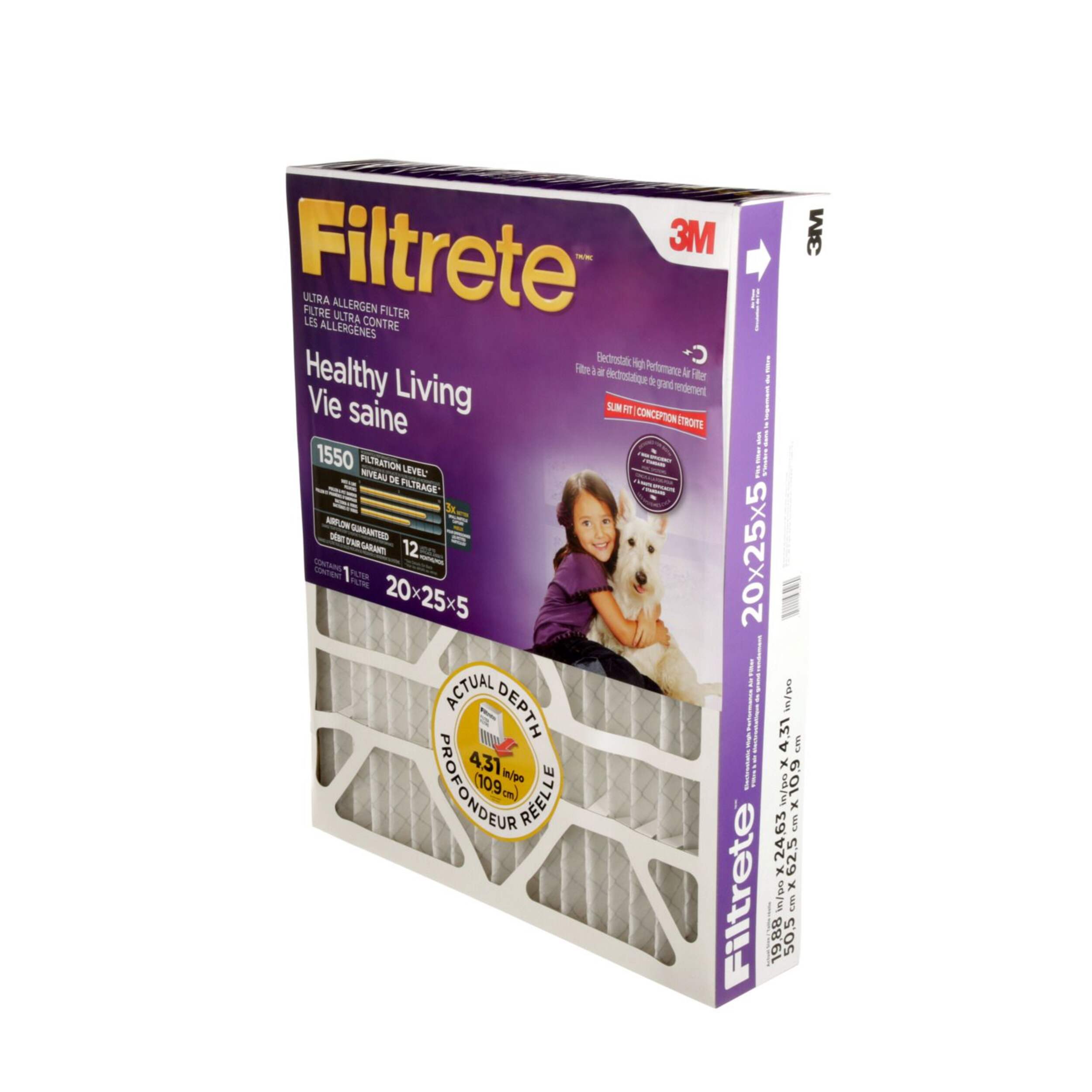 The Filtrete™ MPR 1550 Healthy Living Ultra Allergen Filter is designed for residential housing units that accommodate 5-inch nominal size filters. This high-performance filter effectively attracts and captures allergens such as pollen, mould spores and dust mite debris, significantly improving your home’s air quality. Its deep pleat design allows for enhanced filtration, making it an essential choice for maintaining a healthier living environment.