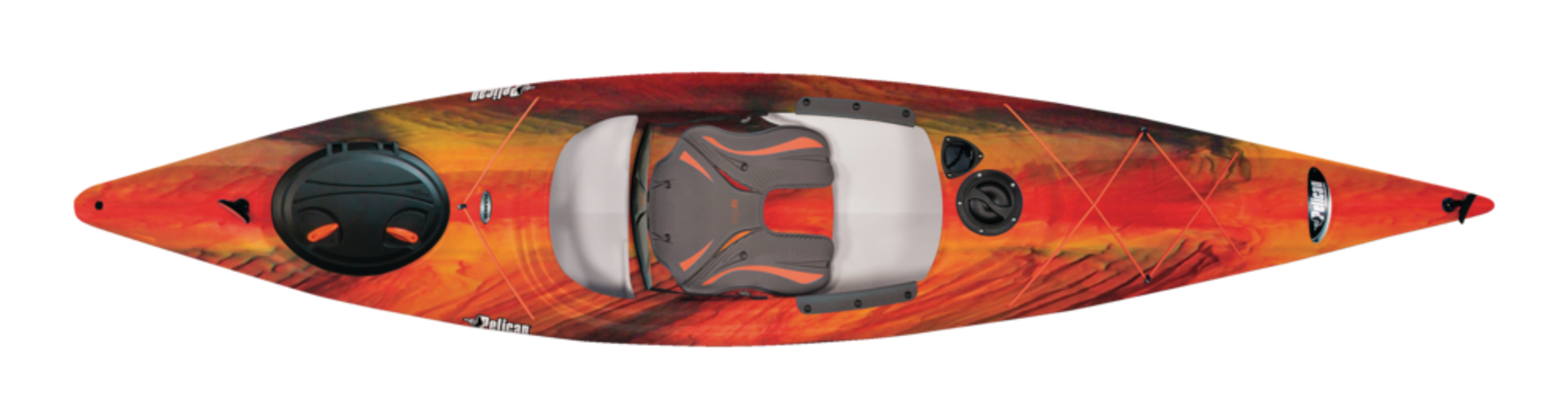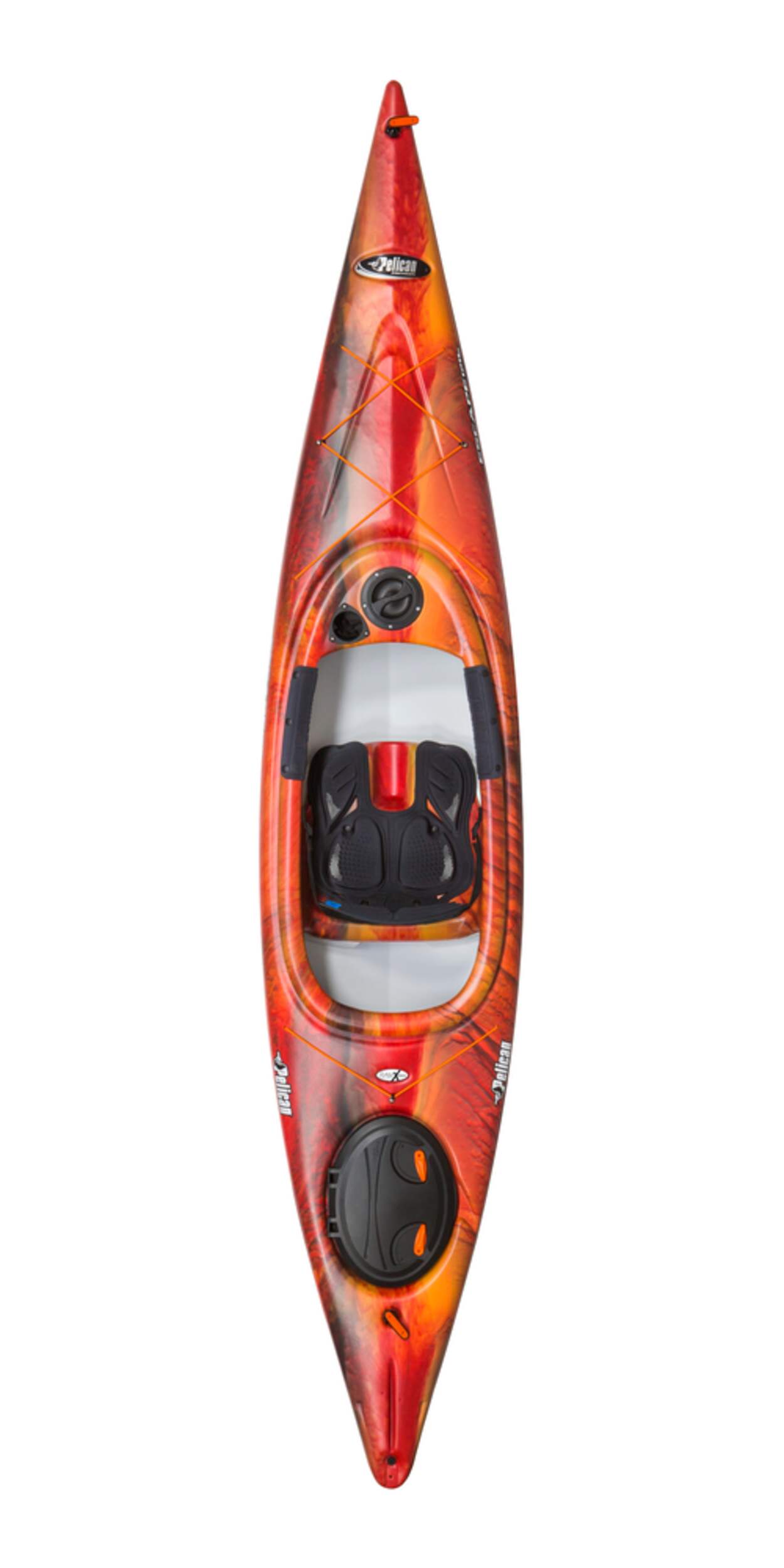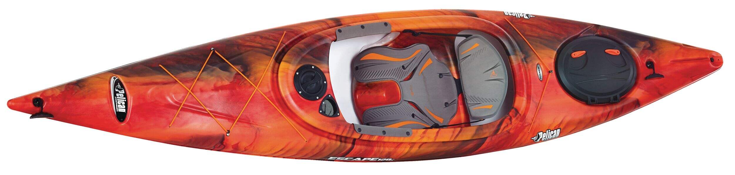 Escape 120 kayak has a bow and stern elastic bungee and a black stern hinge hatch