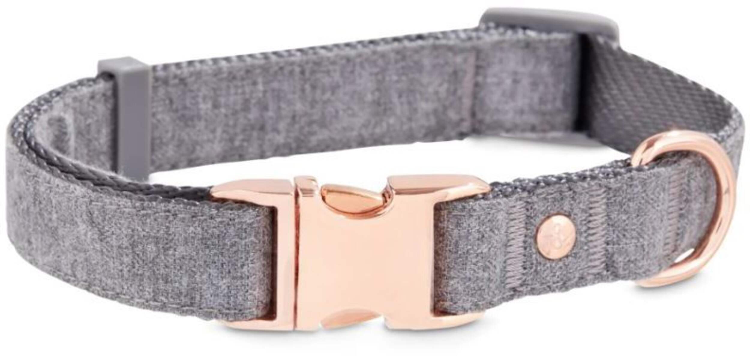 Petco Rose Adjustable Collar is designed with a fashionable and minimalist grey fabric over matching nylon webbing