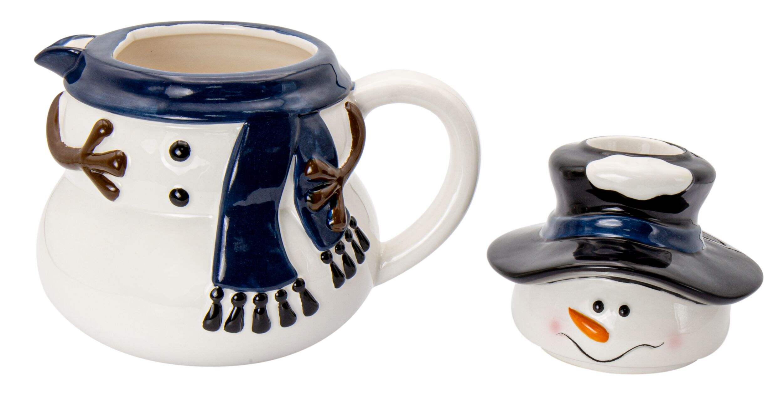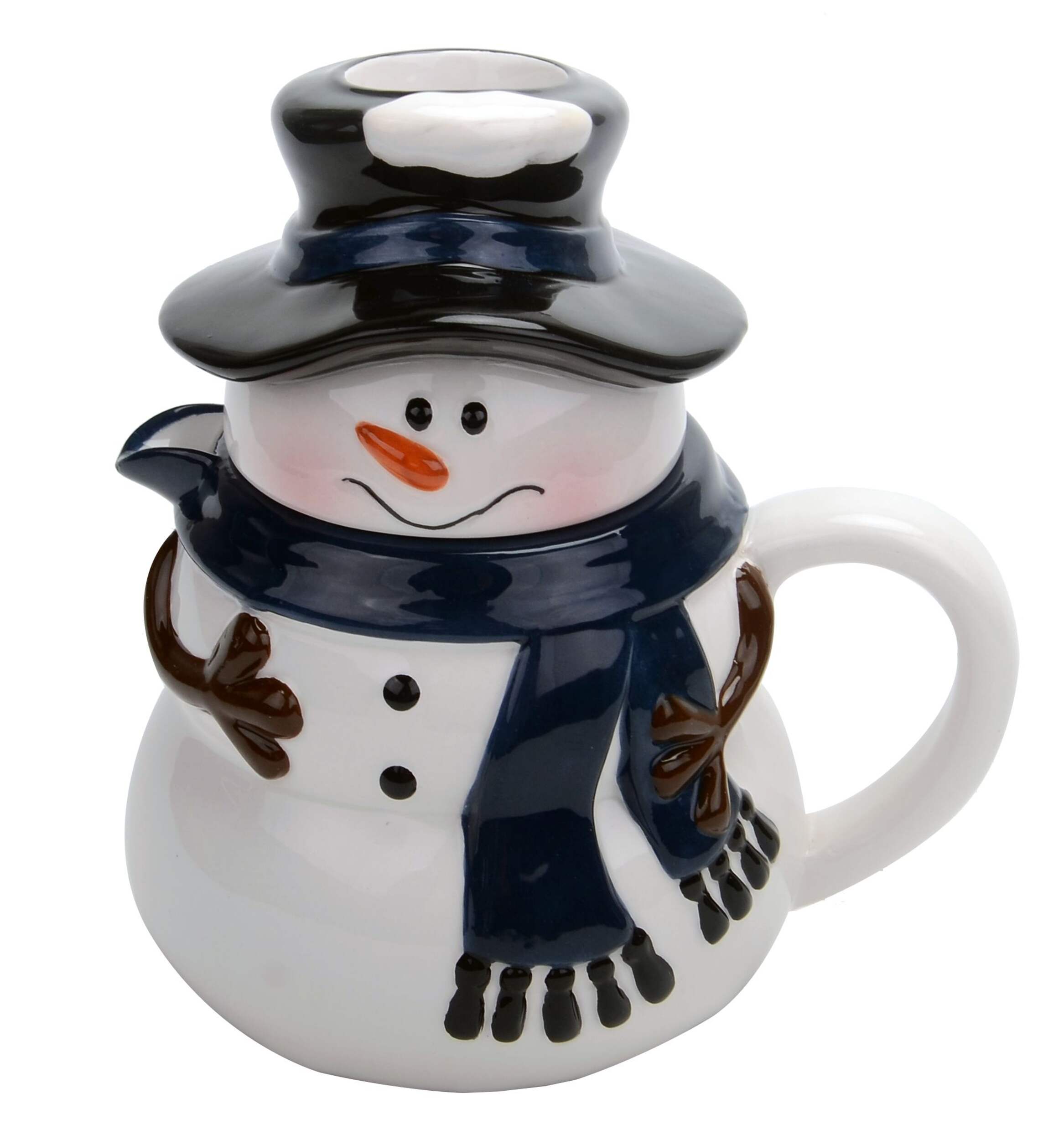 Snowman Carafe Hot Chocolate Maker w/ Mixer is a detailed, snowman-shaped hot chocolate maker