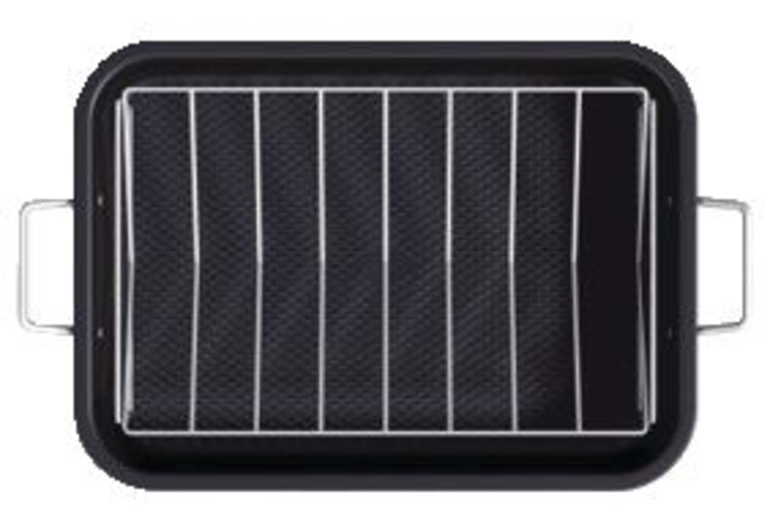 As Seen On TV Blue Diamond Roasting Pan with Stainless Steel Rack is constructed of tough carbon steel