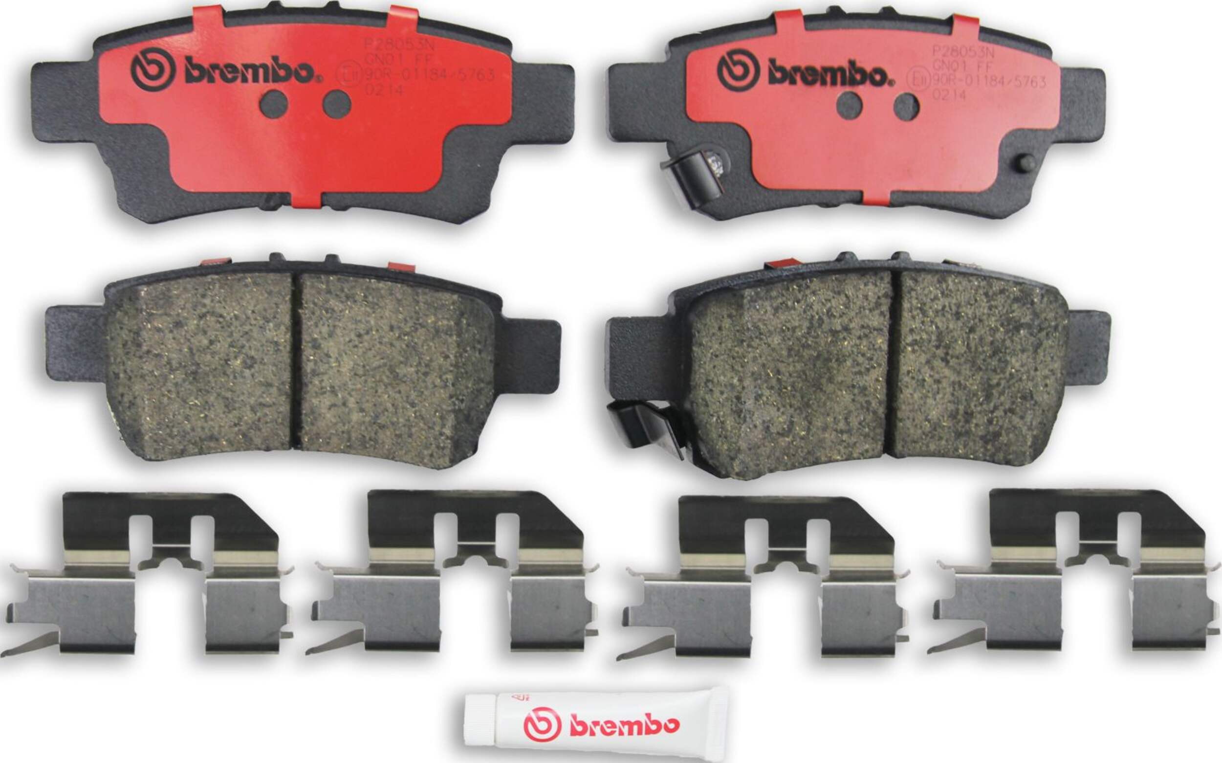 Engineered for superior braking power, this Brembo Brake Pad Set delivers shorter stopping distances and fade-free performance. Featuring a unique friction formula, these braking pads minimize braking distances and provide a safe braking experience in all road conditions. This brake pad set comes with hardware included for easy installation and features a form matching your vehicle's calipers and rotors for a precise fit.