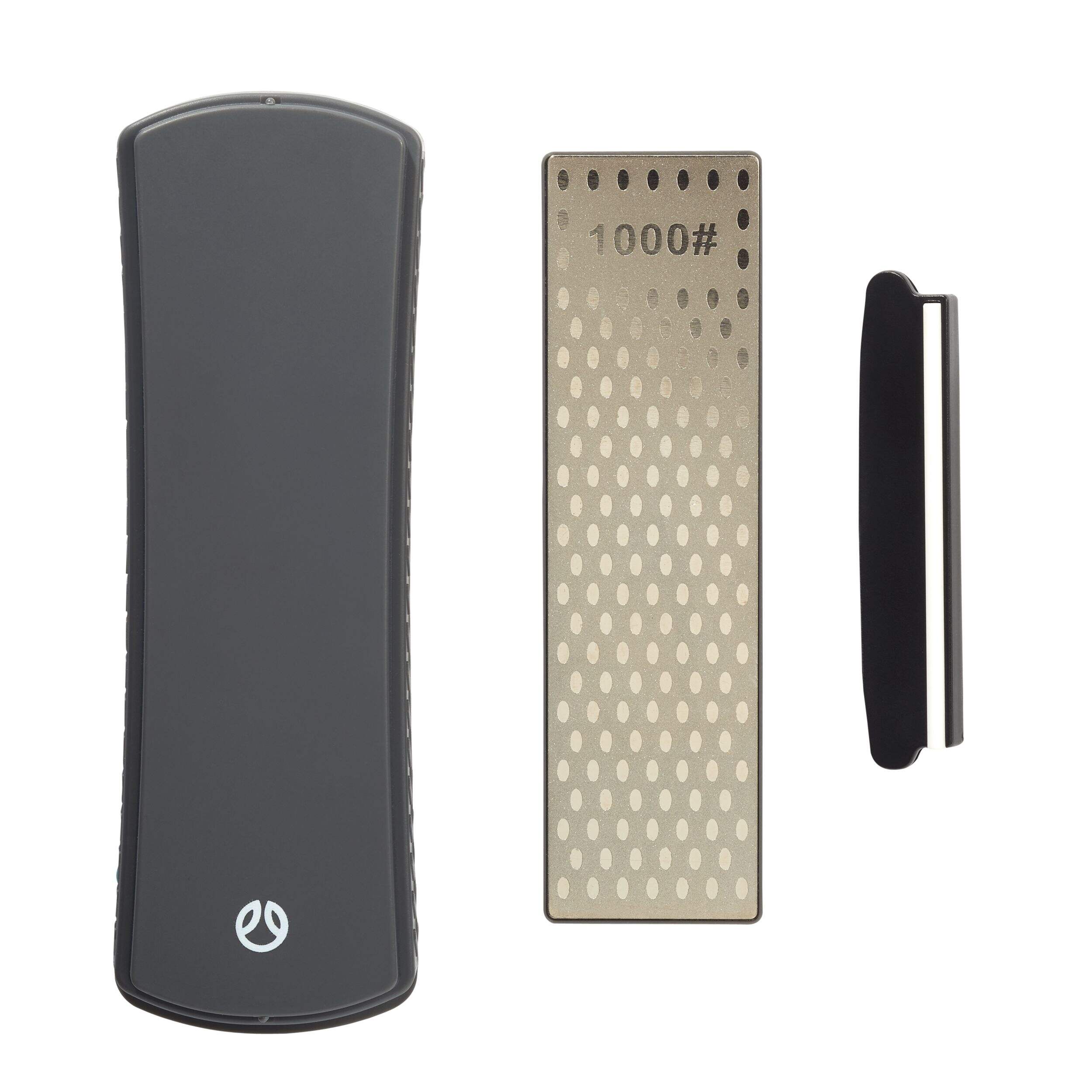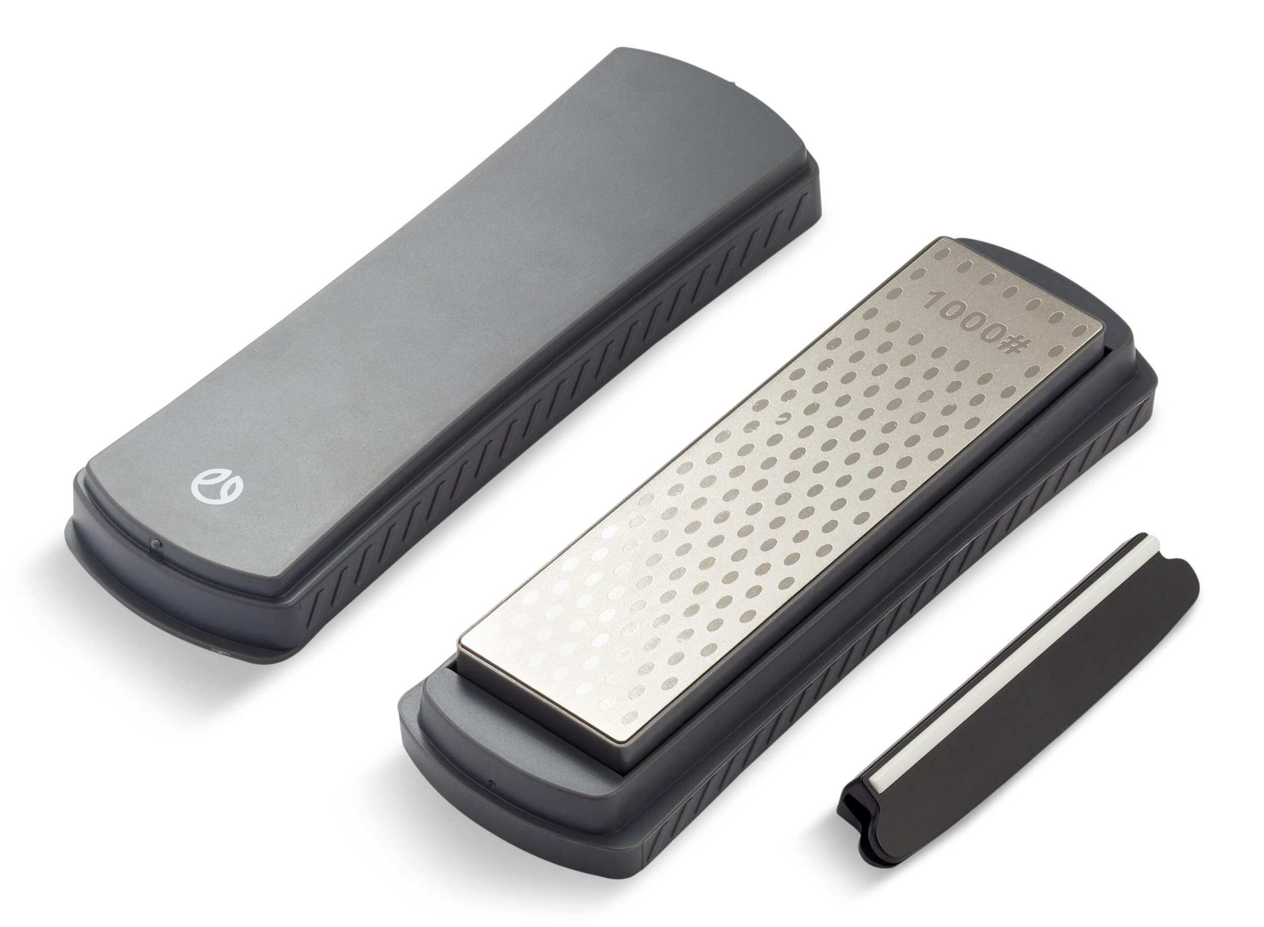 Fine, 1000 grit side refines and finishes blade edge to precision