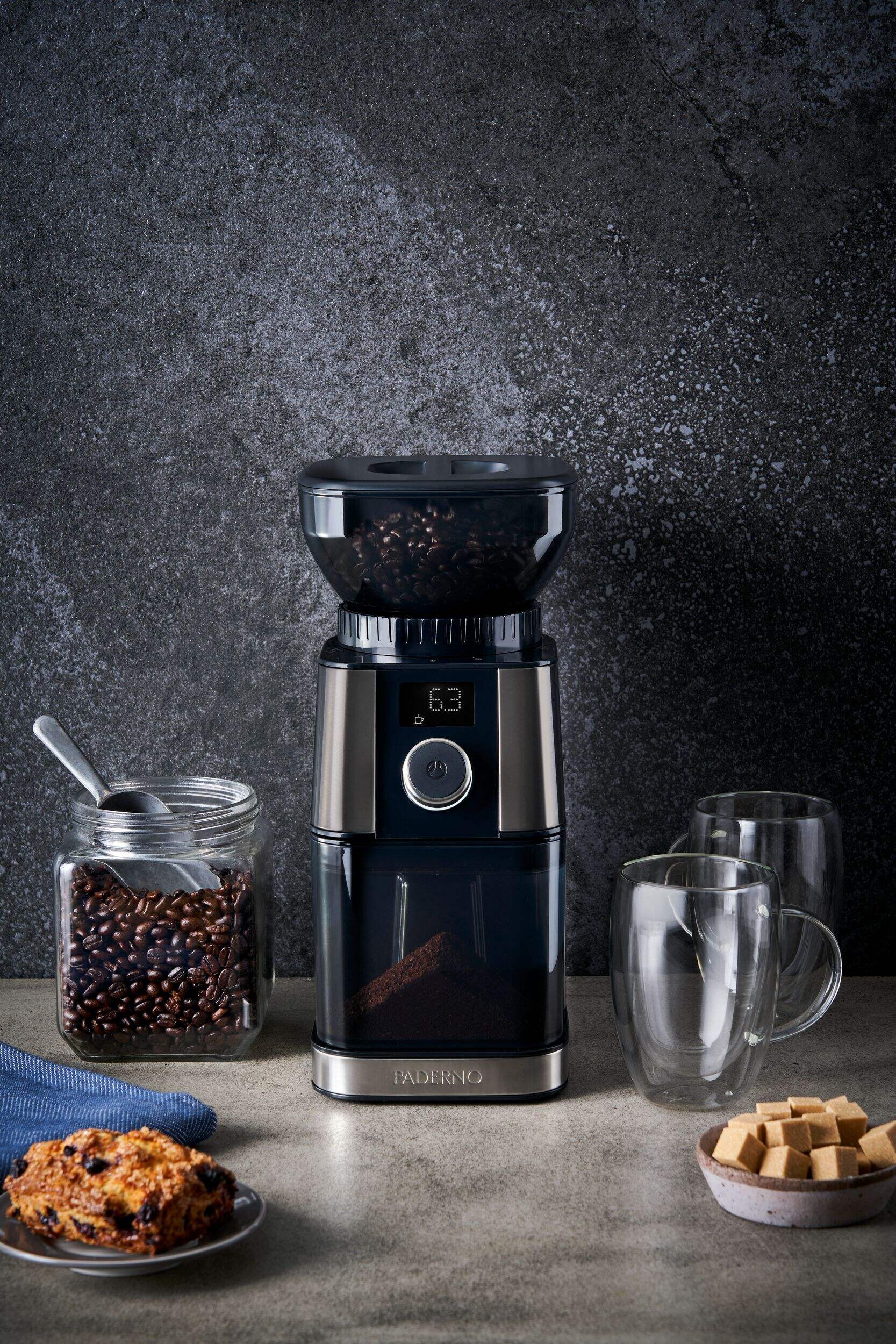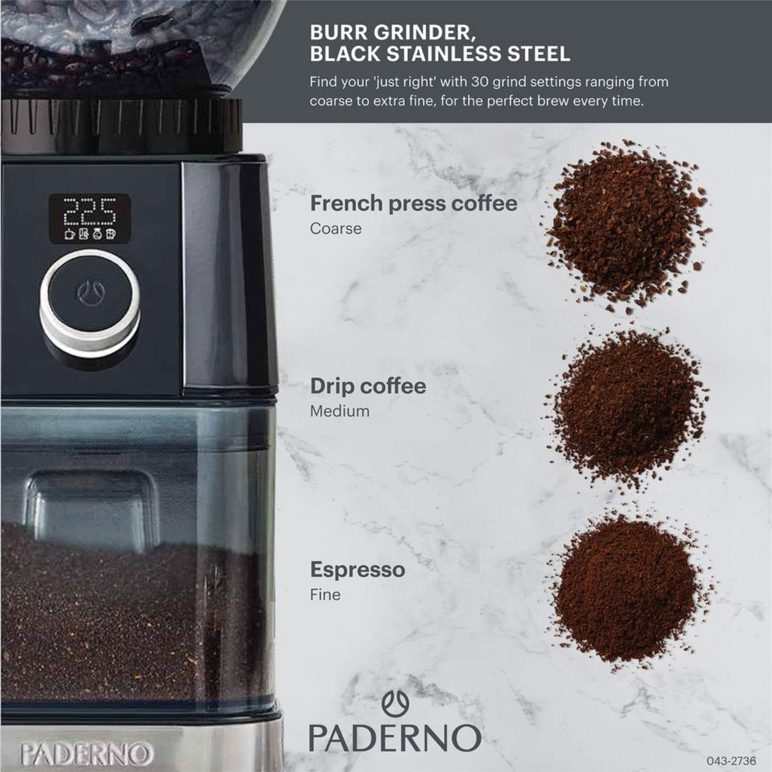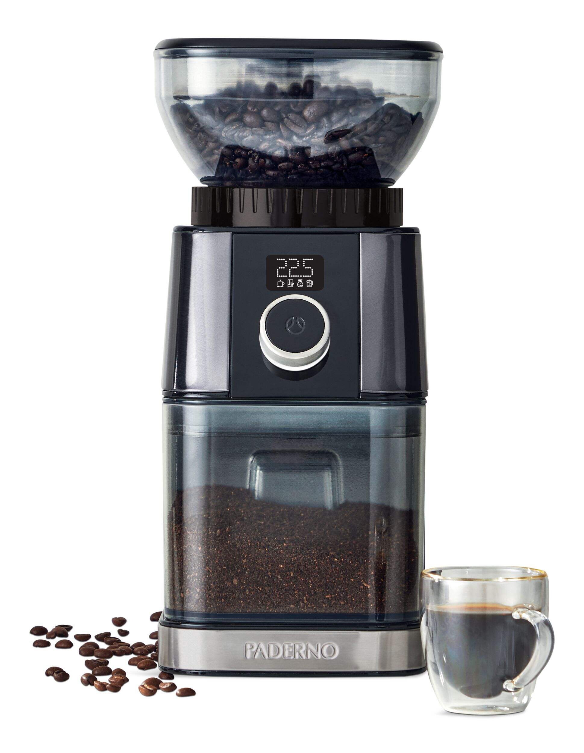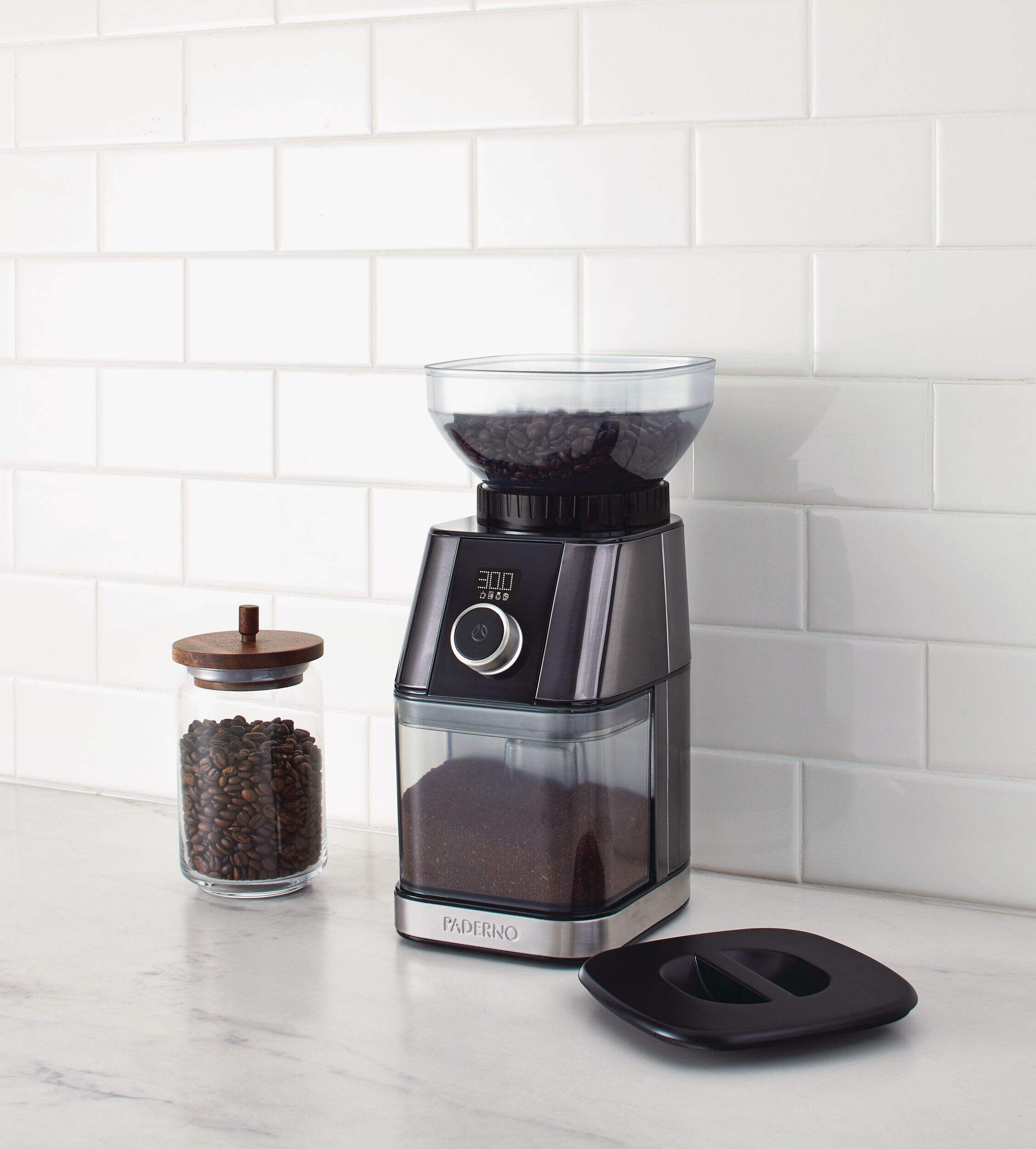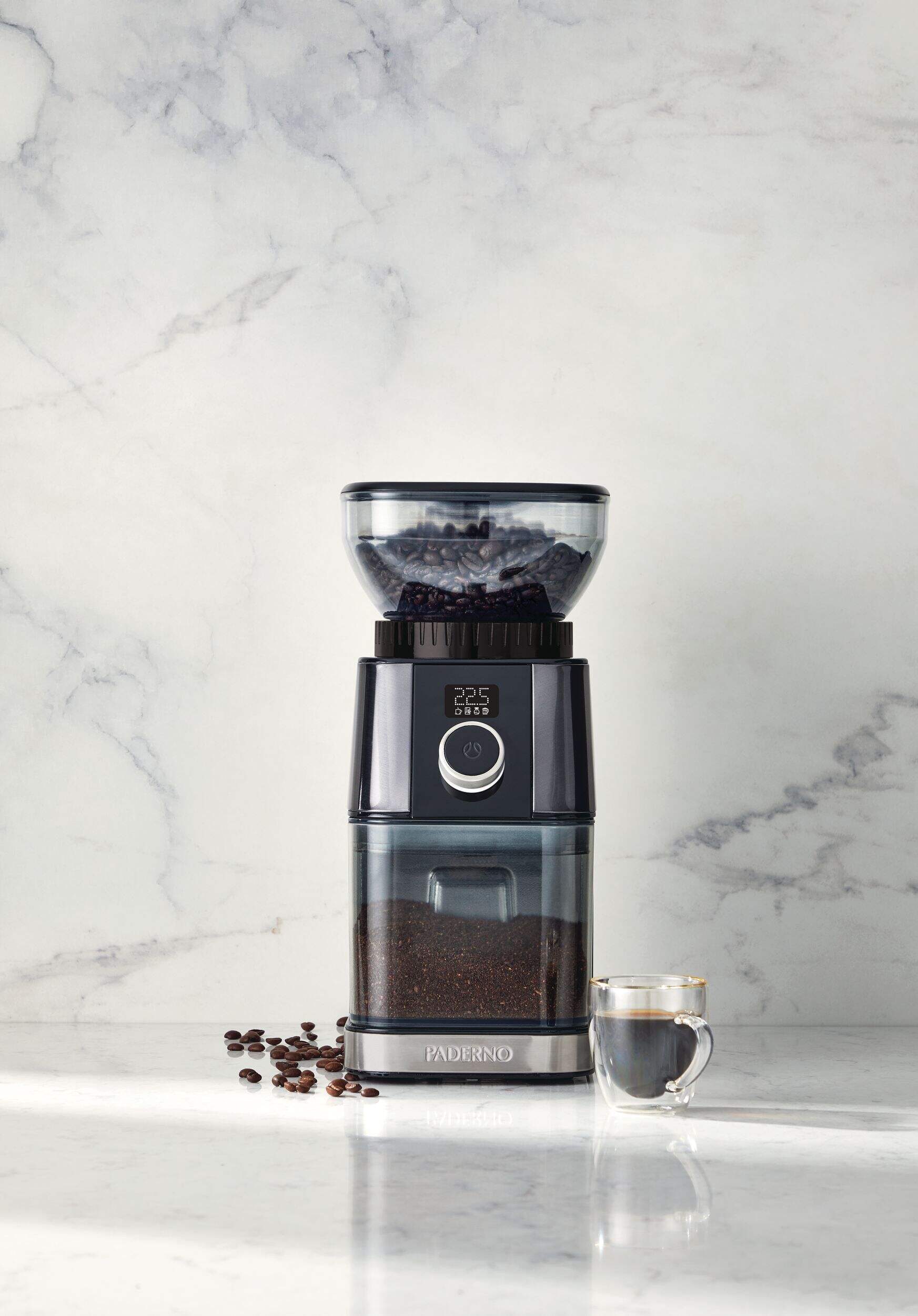 The PADERNO Burr Grinder offers precise control of grind size and coffee output with 30 settings, ranging from coarse to extra fine