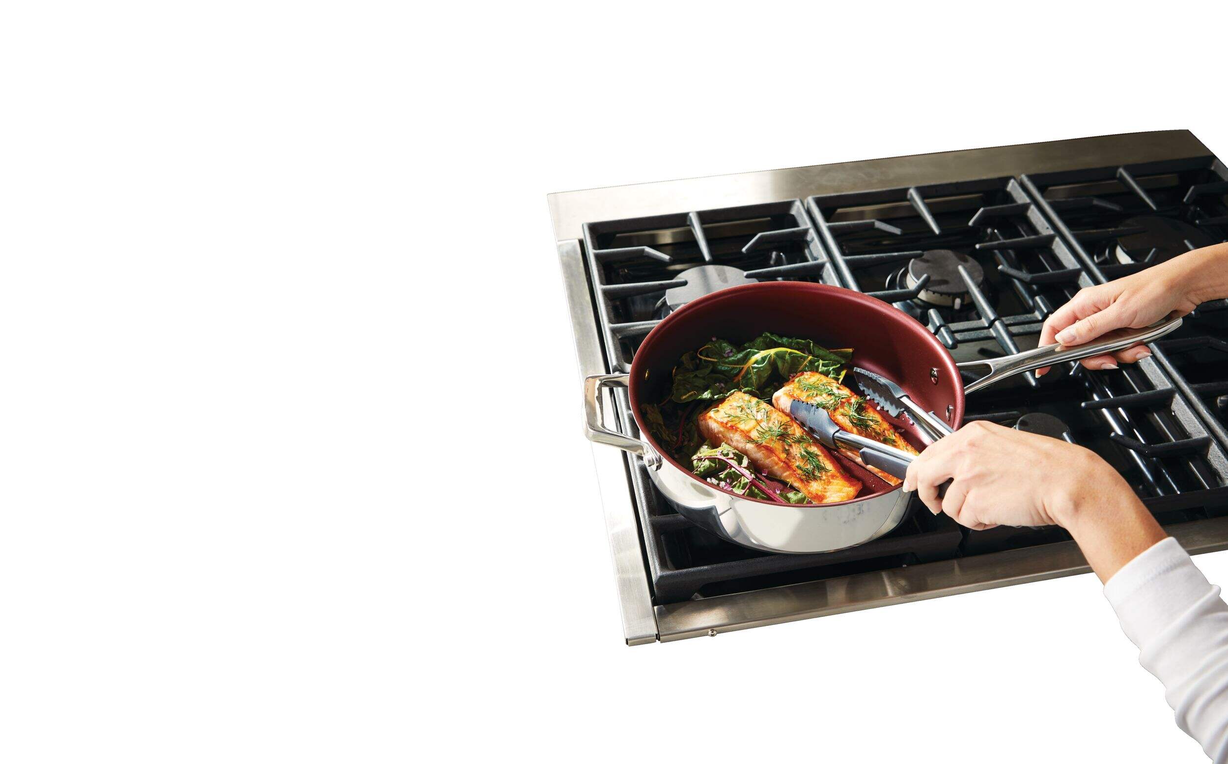 Non-stick surface is great for stovetop searing, browning, sautéing, frying and more