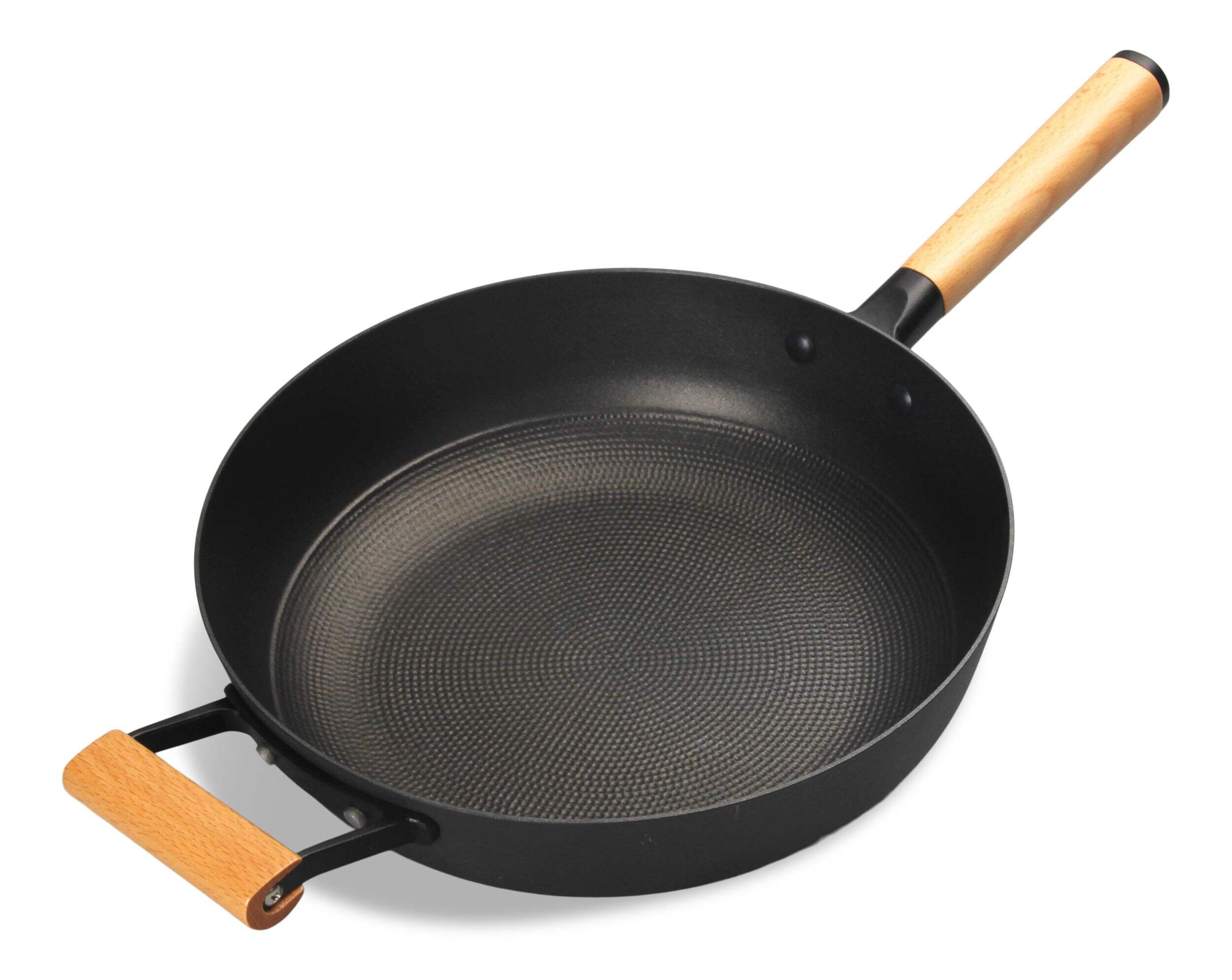 The PADERNO Classic Cast Iron Jumbo Cooker is perfect for stovetop searing, browning, sautéing, frying, or steaming a delicious meal. This wok pan has many features to make your time in the kitchen easier and even more enjoyable. The Dimpled honeycomb surface traps oils to improve cooking performance and thanks to the Premium PFOA-free non-stick surface, makes food release effortless. Featuring Ultra-durable seamless cast iron construction with quantanium coating, this PADERNO wok is built to last.