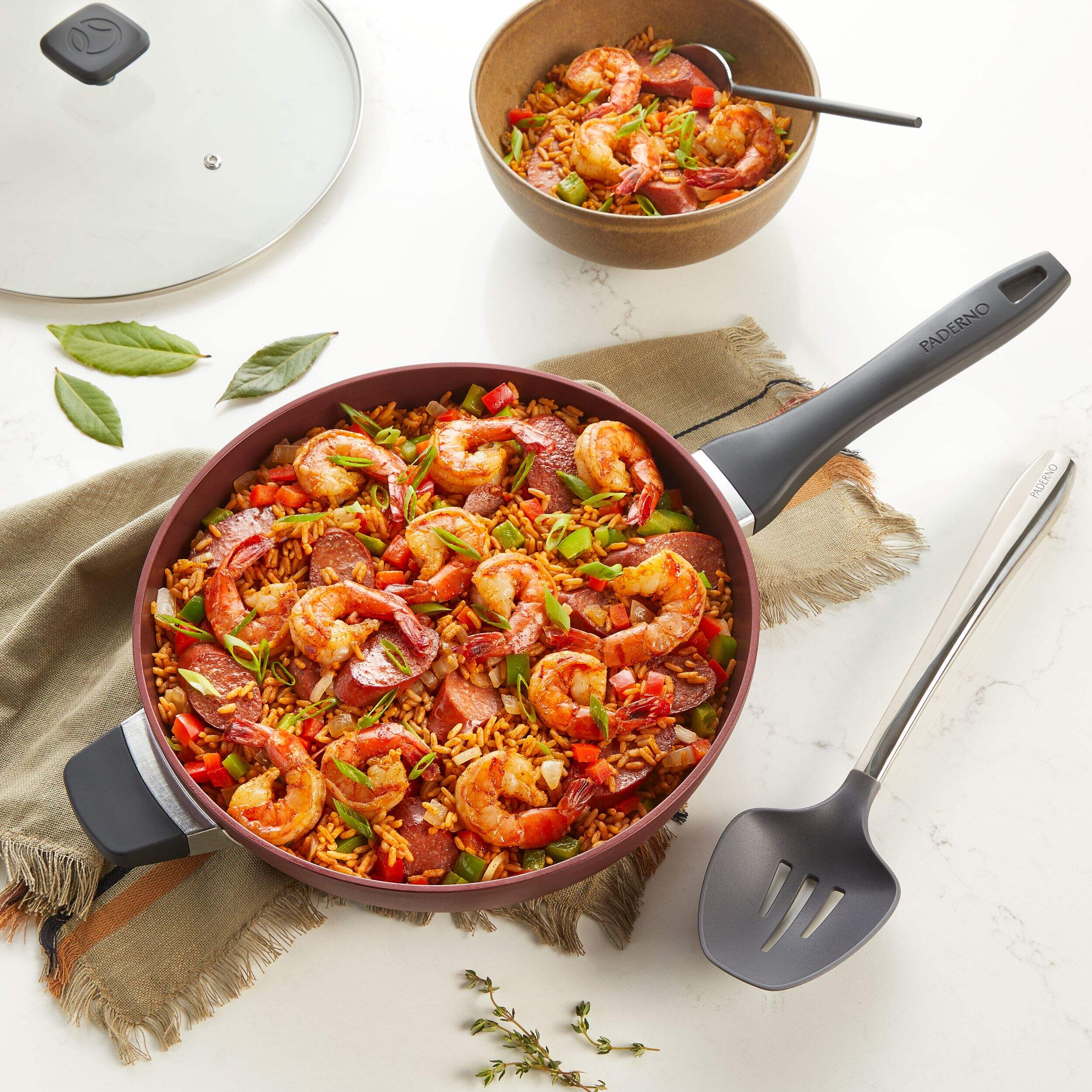The PADERNO Classic Jumbo Cooker combines style and functionality with its durable, non-stick surface, making cooking easier and healthier. Its extra-large capacity is perfect for preparing family meals, from searing to sautéing. The pan's sturdy design ensures even heat distribution for consistent results, while the comfortable, heat-resistant handle provides safe and secure handling. The vibrant maroon finish adds a modern touch to any kitchen.