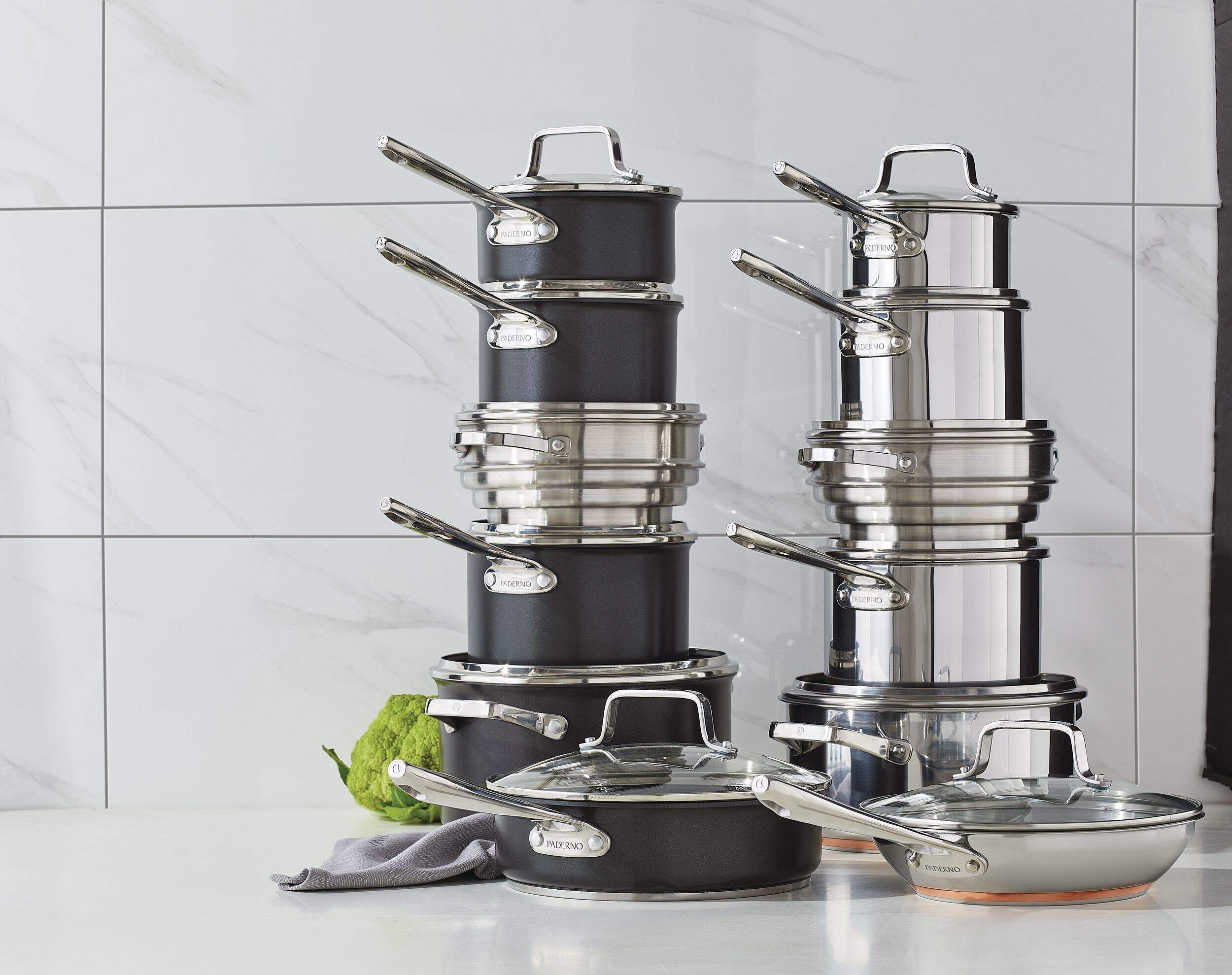The PADERNO 12-pc Cookware Set includes an assortment of pots and pans to suit all of your cooking needs