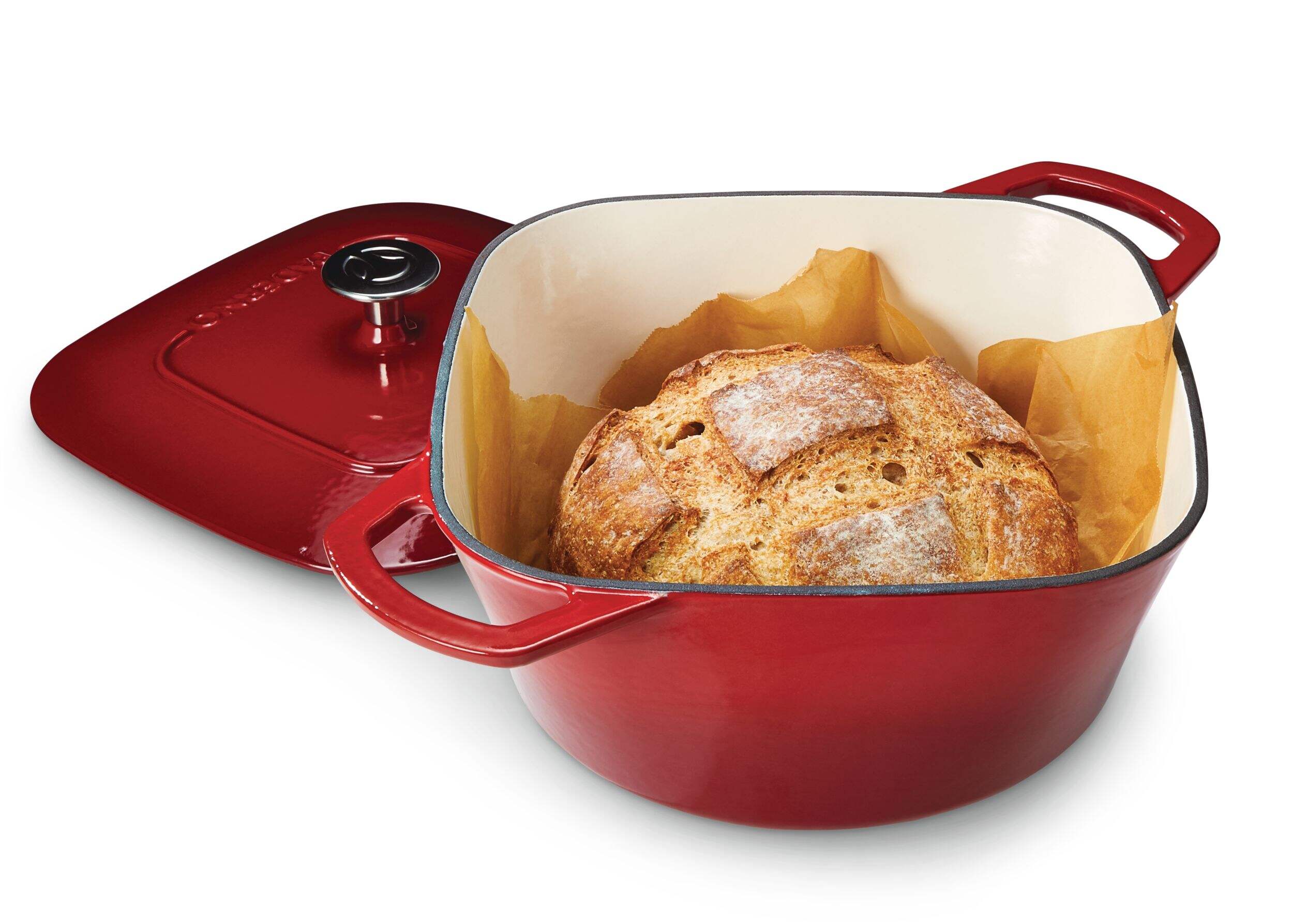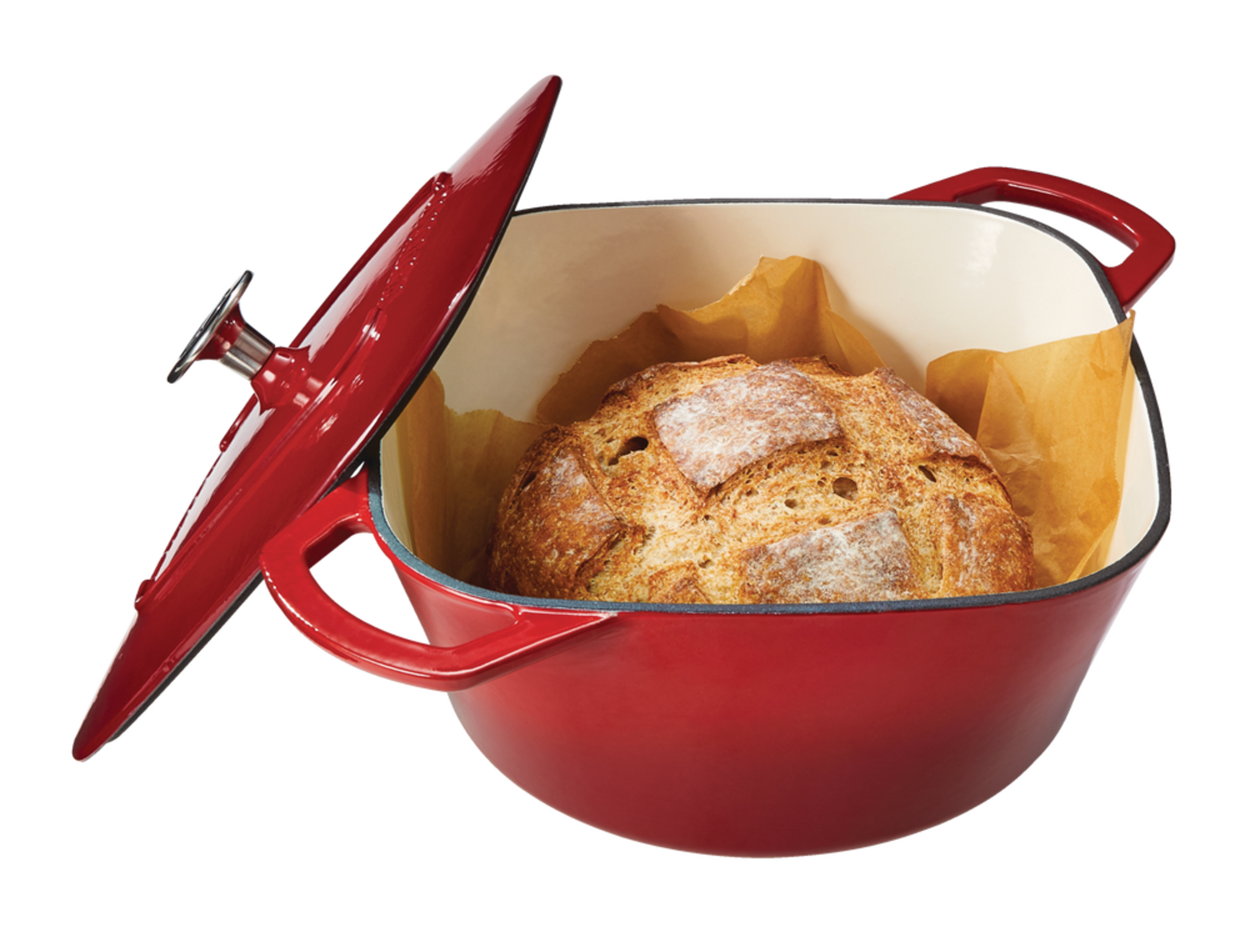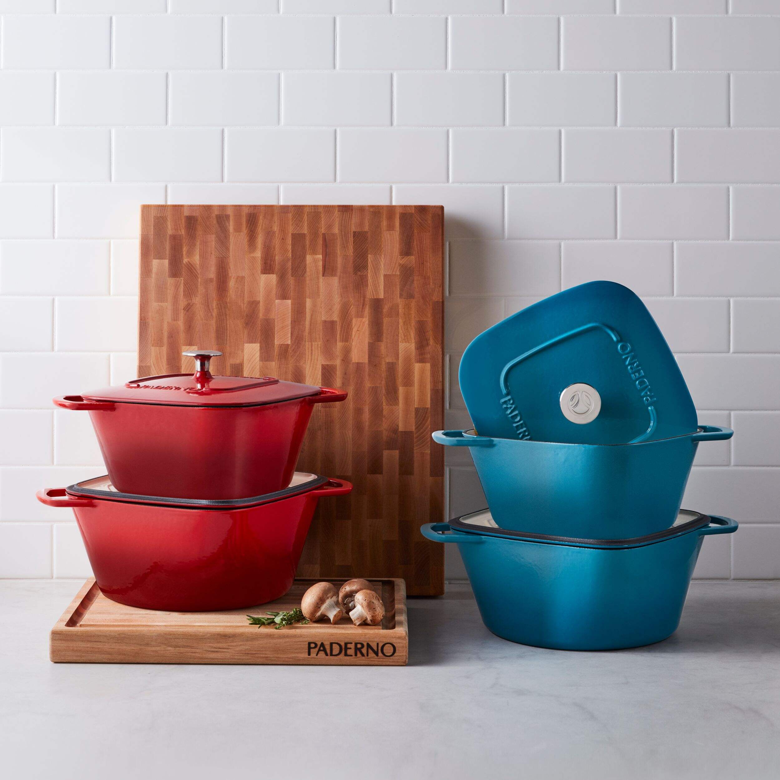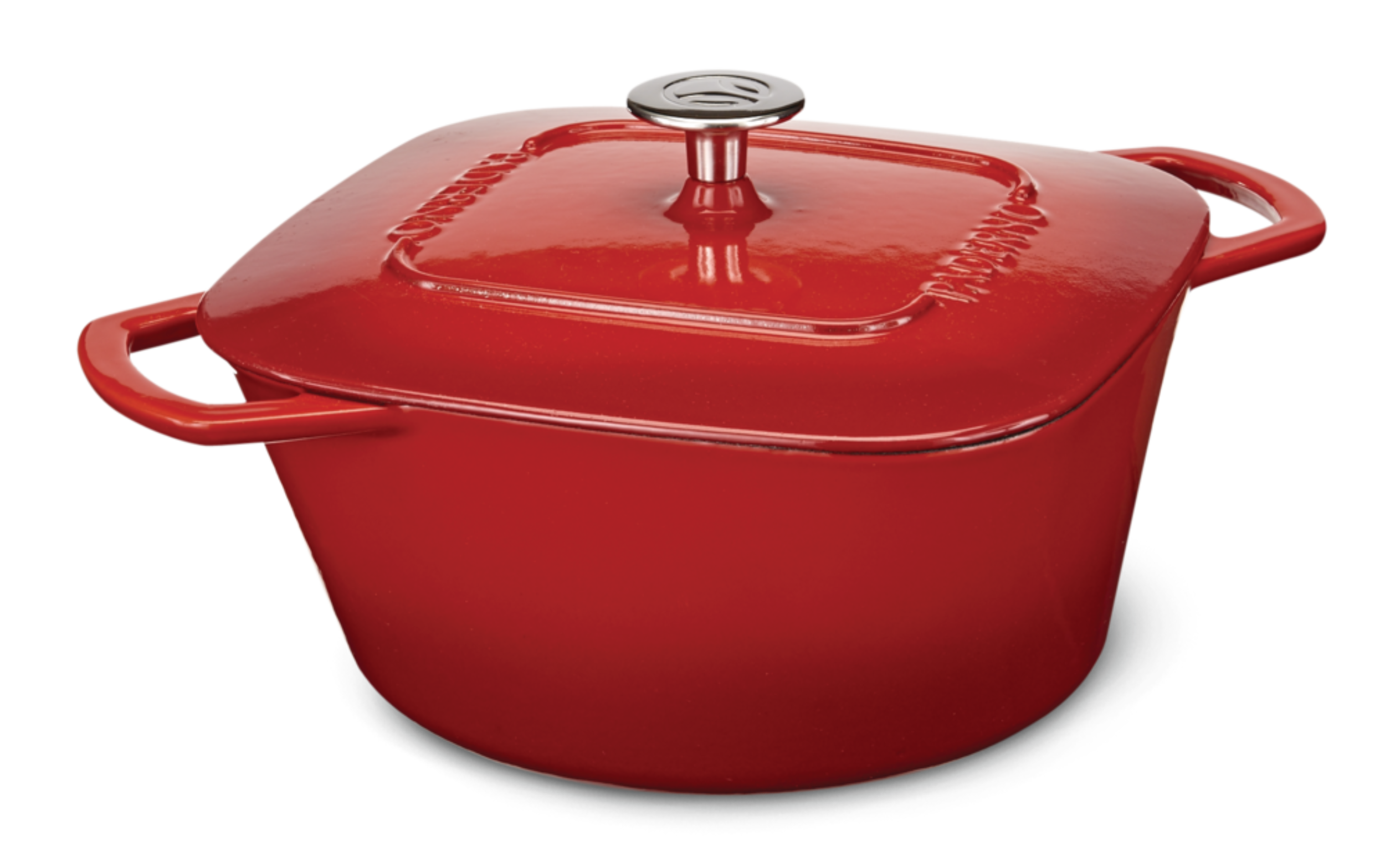 PADERNO’s Dutch Oven provides superior heat distribution and retention for even cooking. Designed in brilliant red, this Dutch oven features a unique shape that offers exceptional cooking performance and easy handling. This cast iron Dutch oven is suitable on all cooktops, including induction, making it a welcome addition to any kitchen. The chip-resistant enamel finish on this quality cookware adds impressive durability, ensuring it will last for years to come.