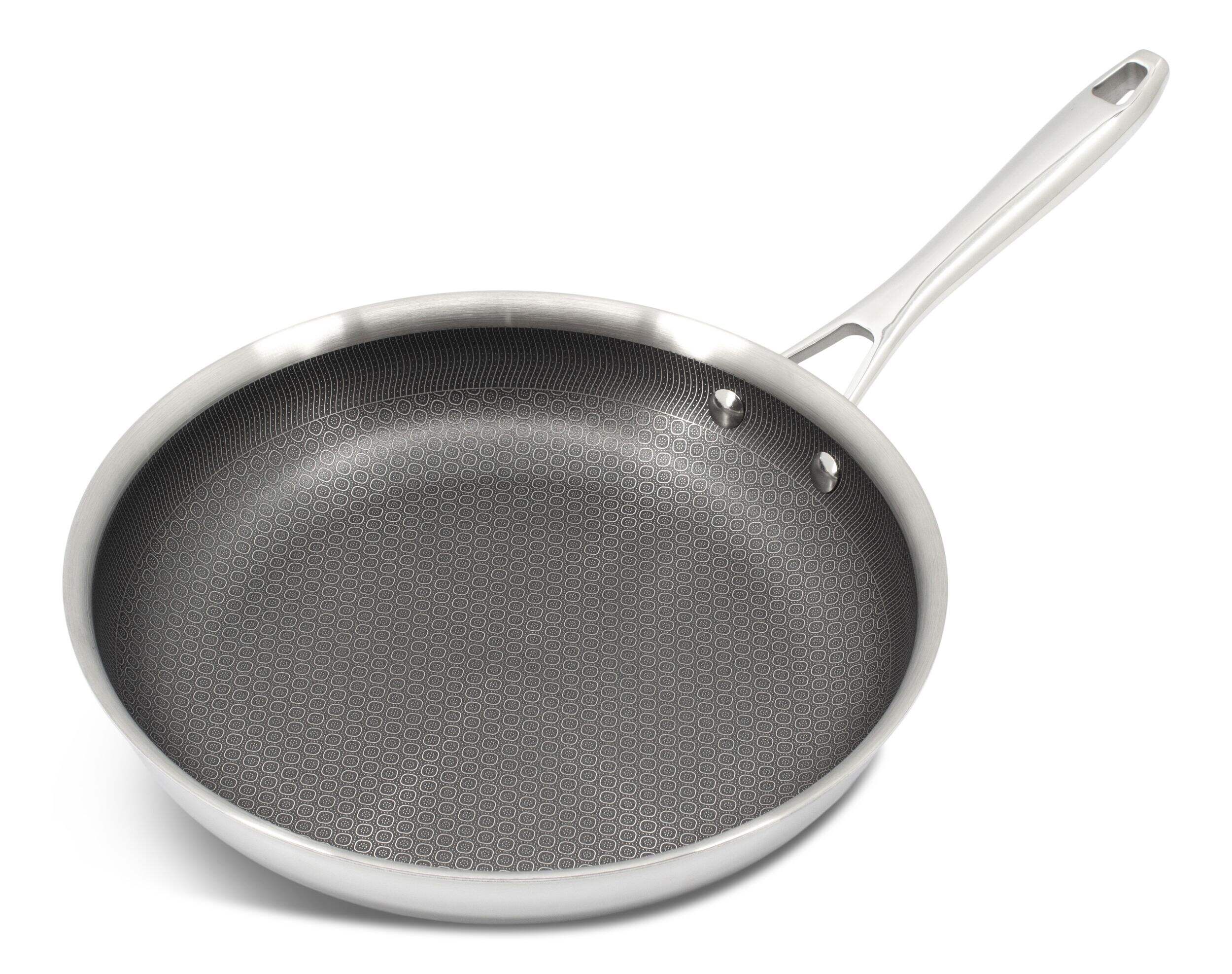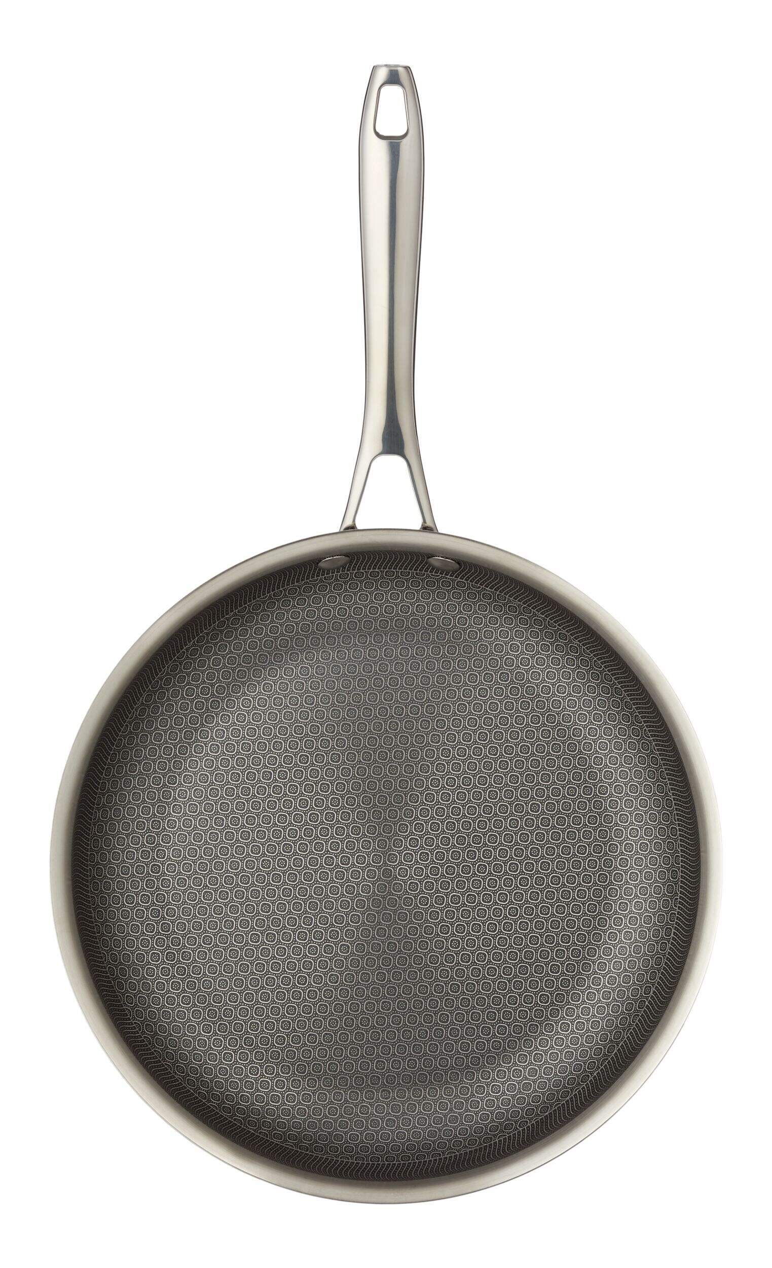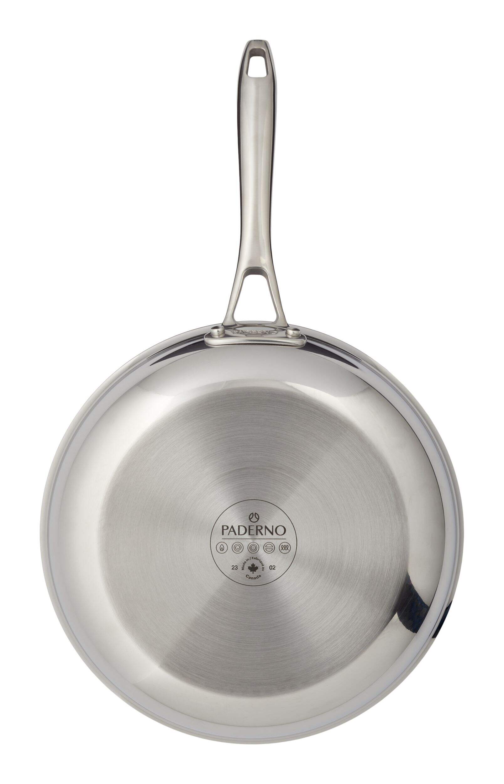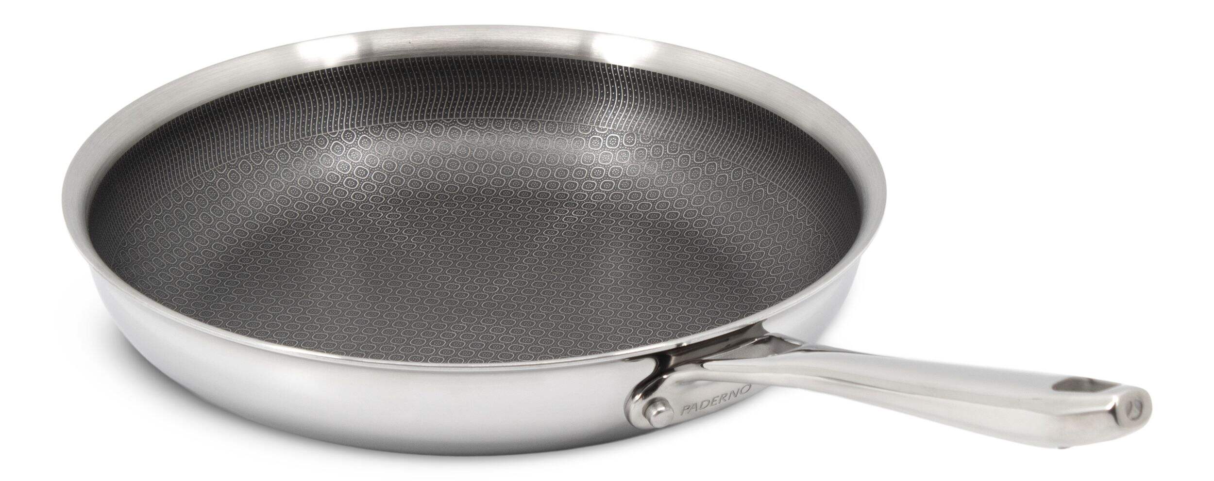 The PADERNO Hybrid Clad Frying Pan eliminates cooking woes by helping you prepare your meals easily. Designed with a durable PFOA-free stick resistant coating for easy food release, and a 18/10 stainless steel construction with aluminum core for even heat distribution and exceptional durability.