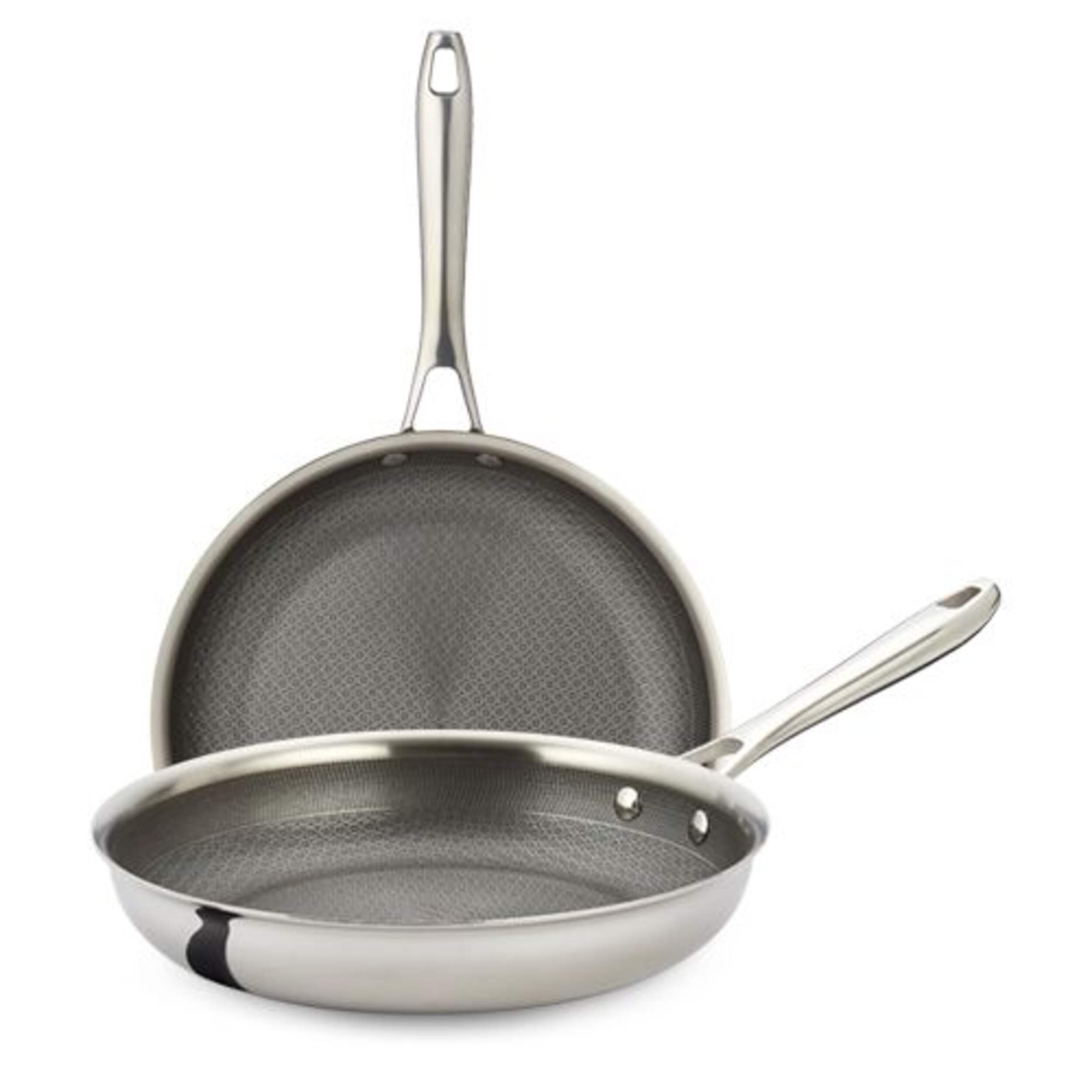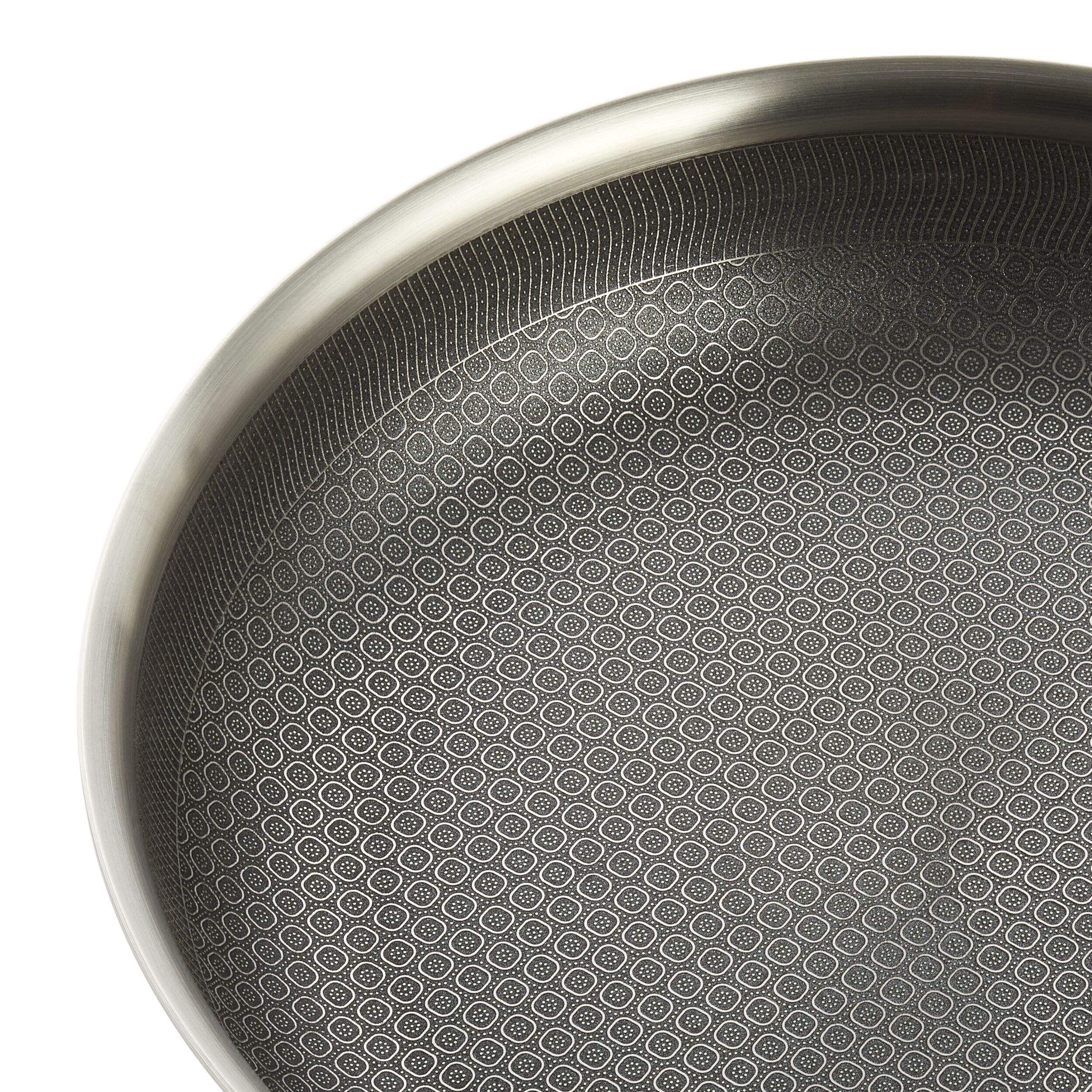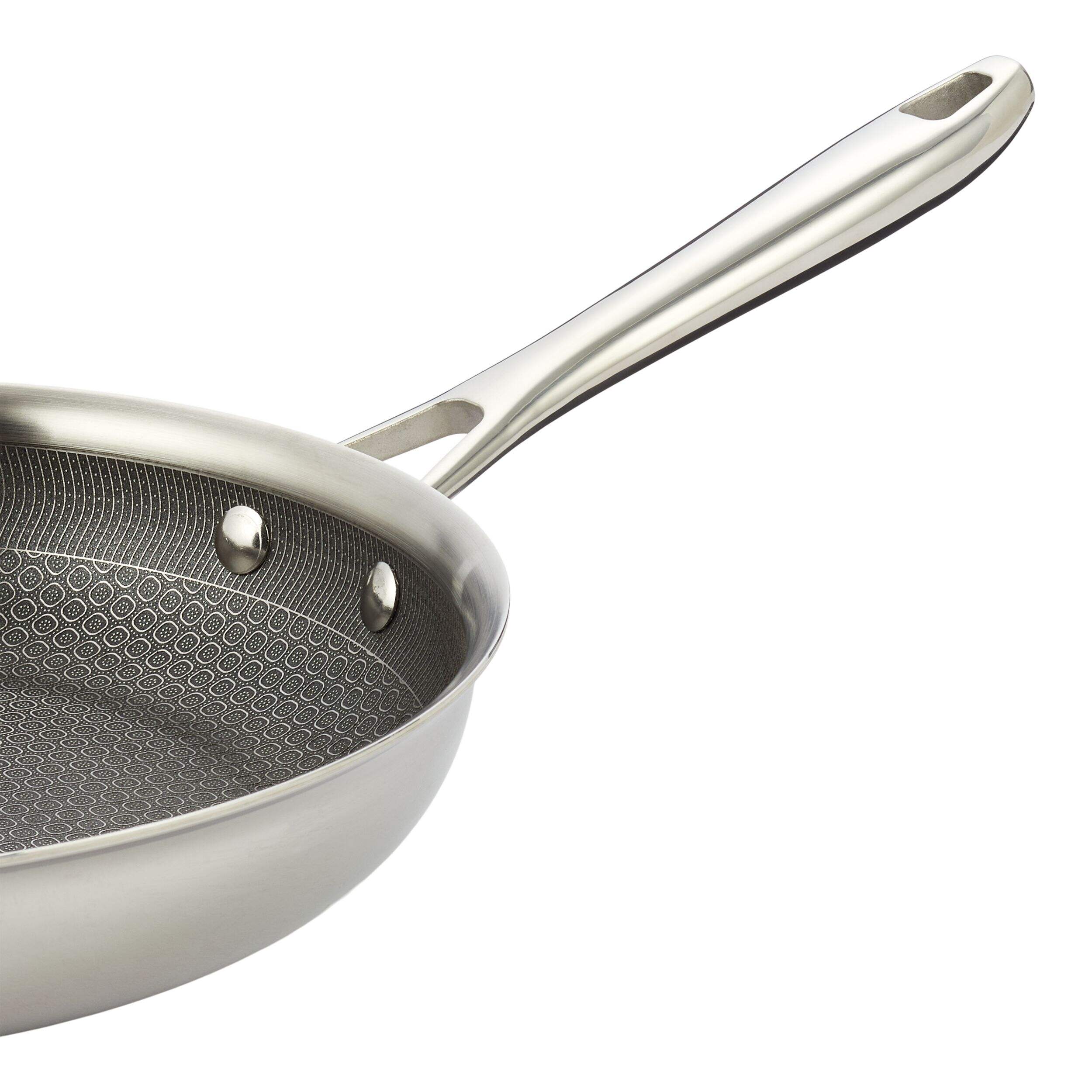 The PADERNO Hybrid Clad Frying Pan eliminates cooking woes by helping you prepare your meals easily. Designed with a durable PFOA-free stick resistant coating for easy food release, and a 18/10 stainless steel construction with aluminum core for even heat distribution and exceptional durability.