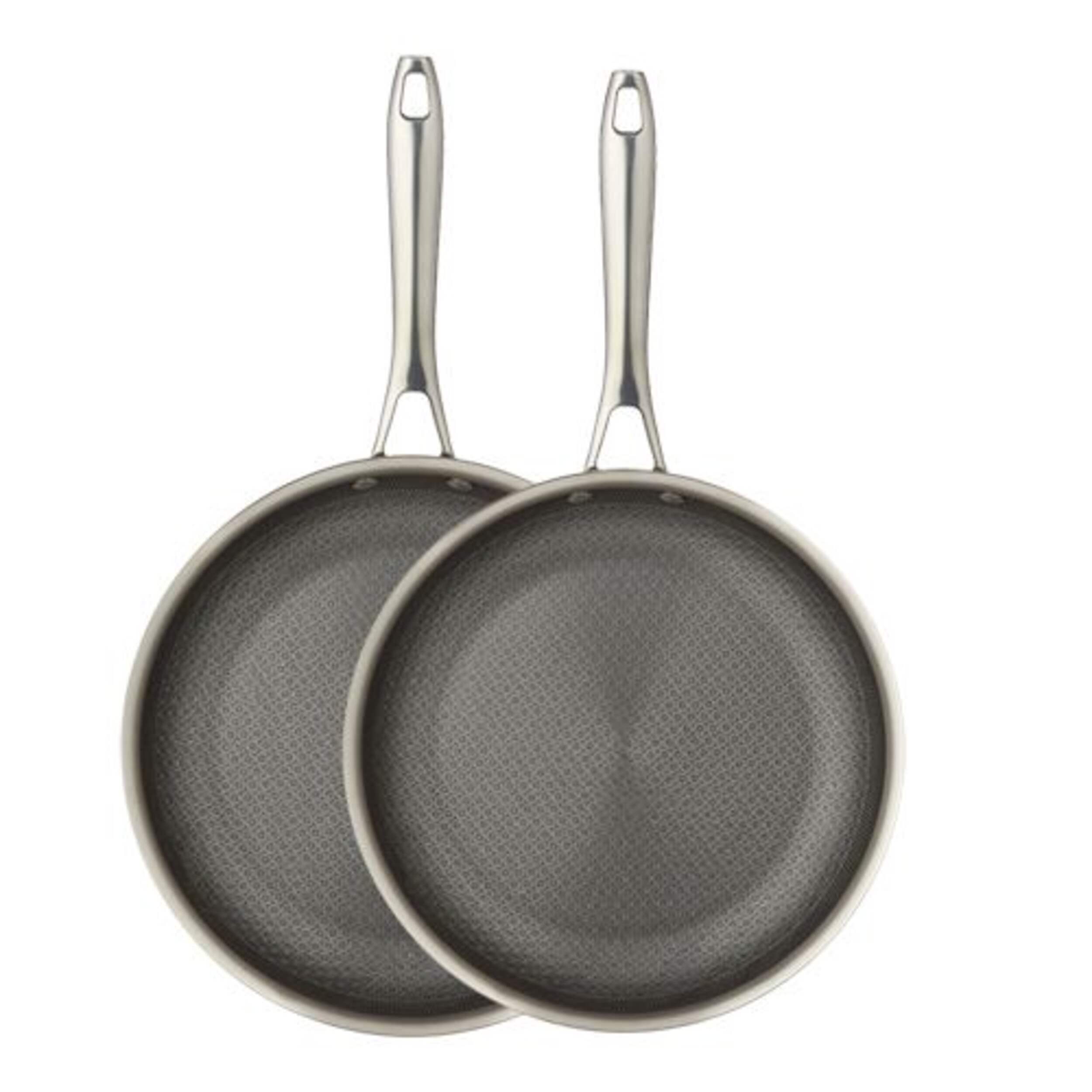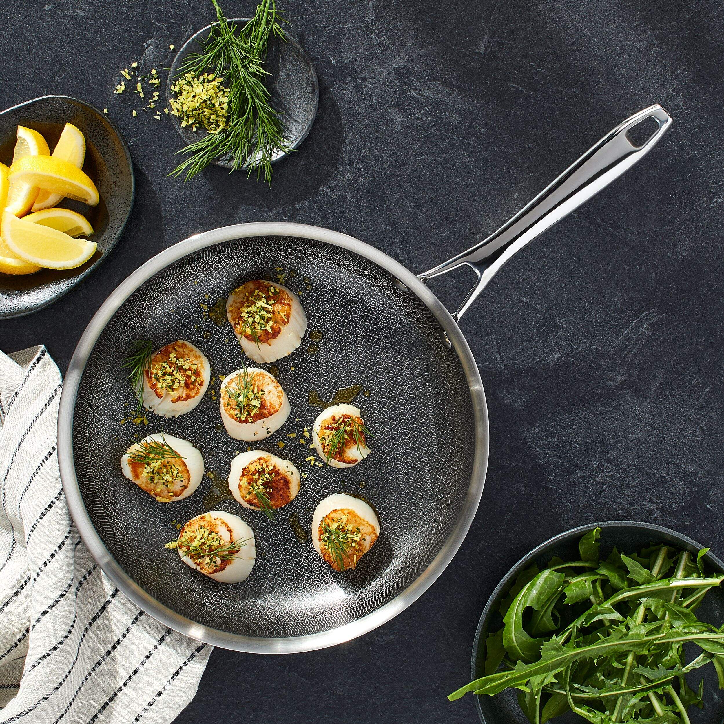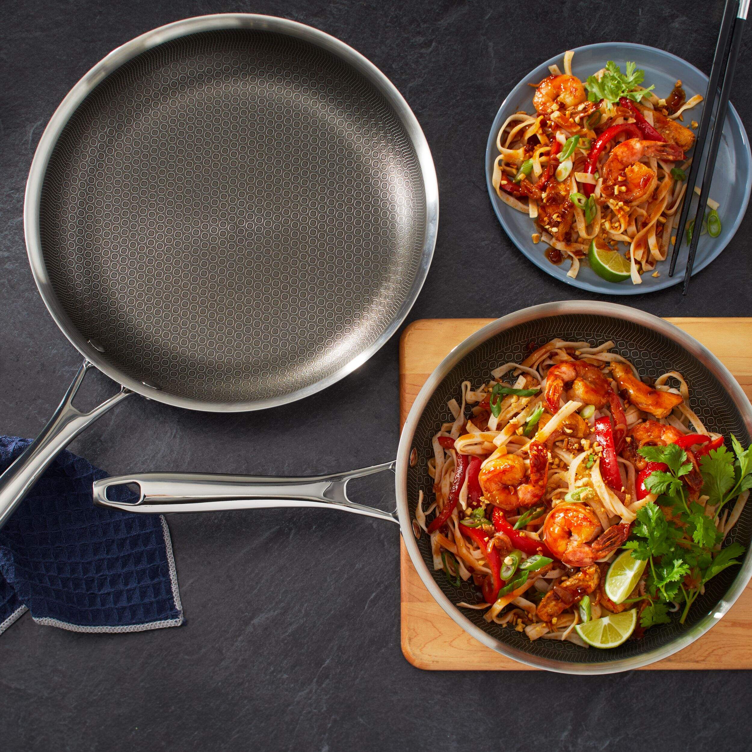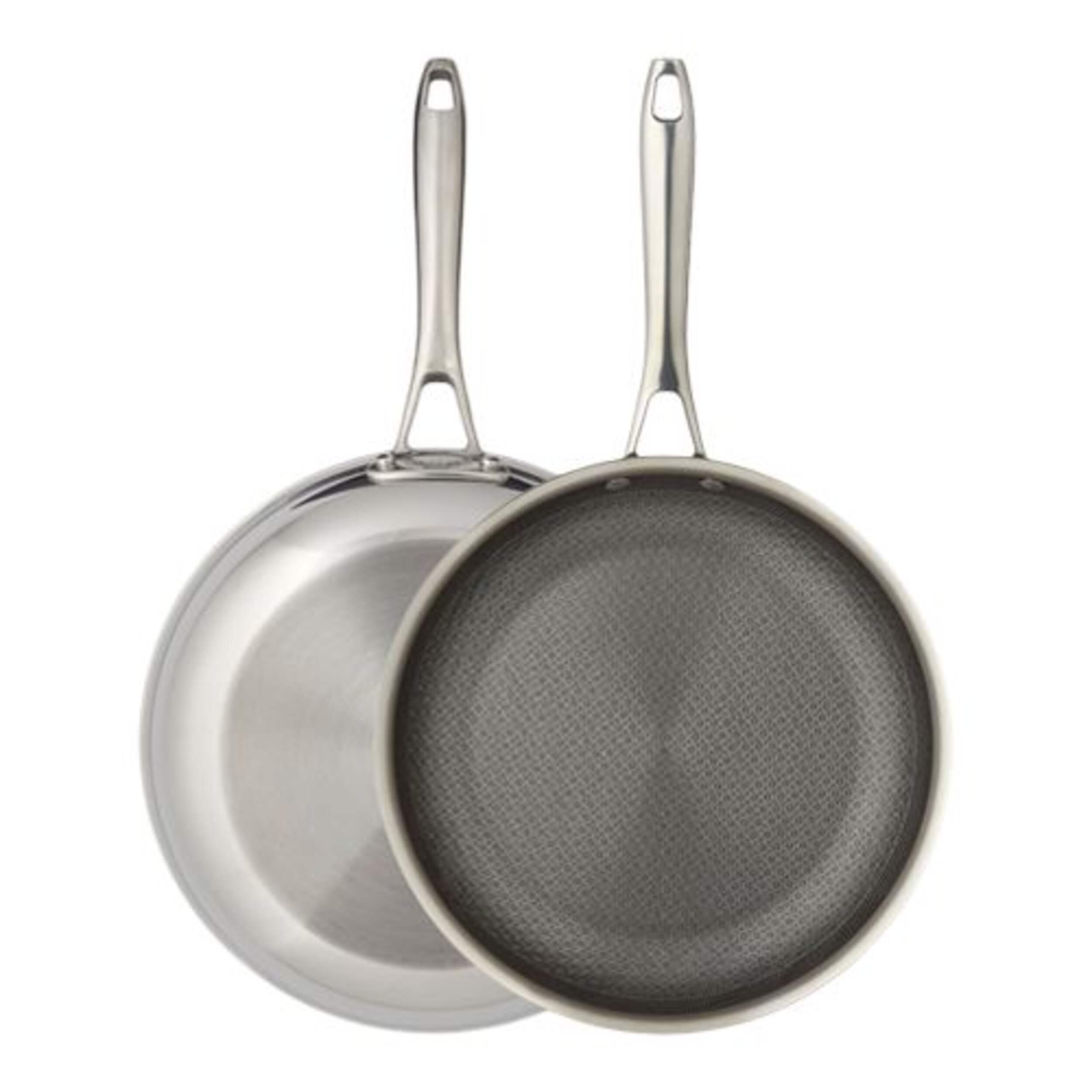 The PADERNO Hybrid Clad Frying Pan eliminates cooking woes by helping you prepare your meals easily. Designed with a durable PFOA-free stick resistant coating for easy food release, and a 18/10 stainless steel construction with aluminum core for even heat distribution and exceptional durability.