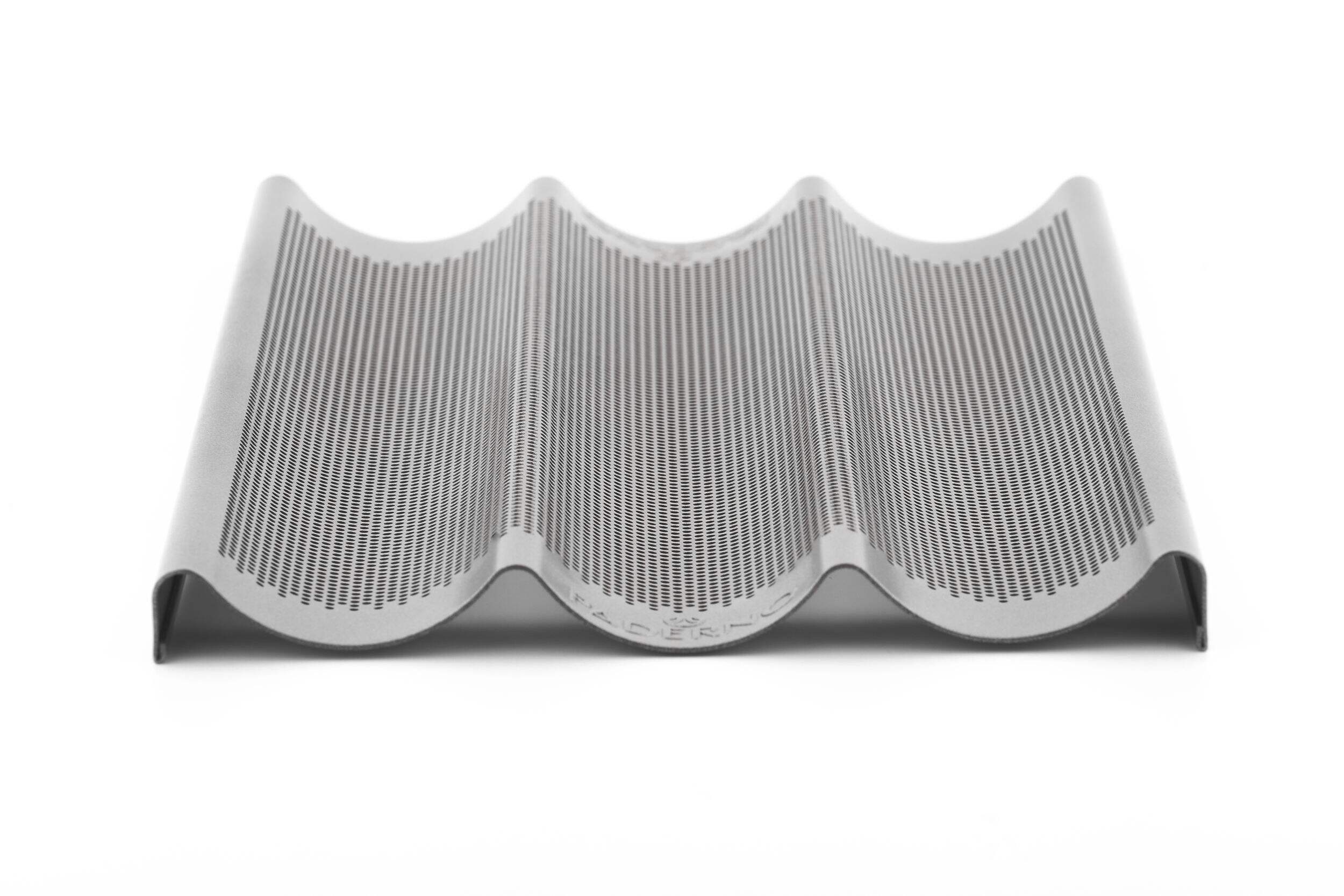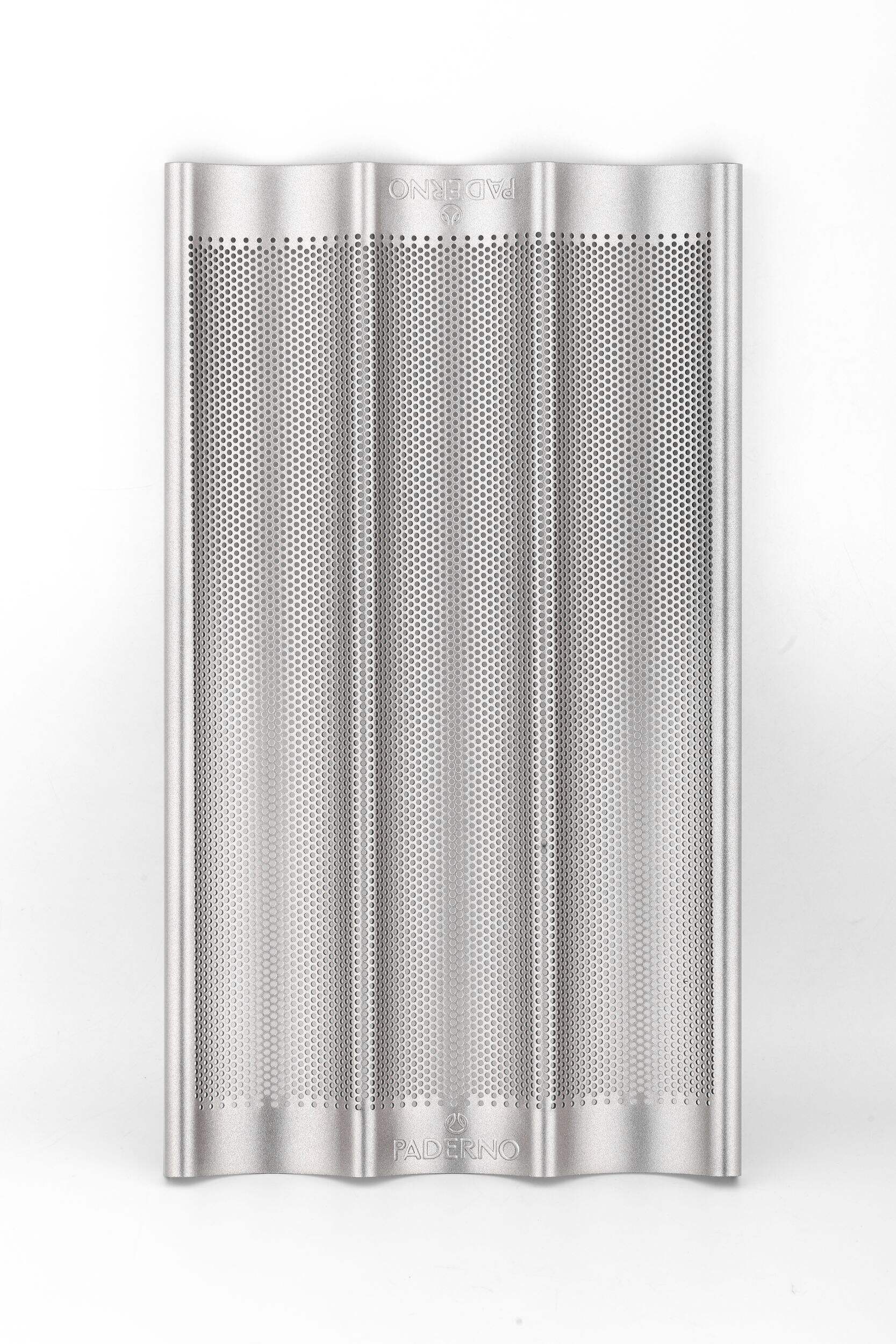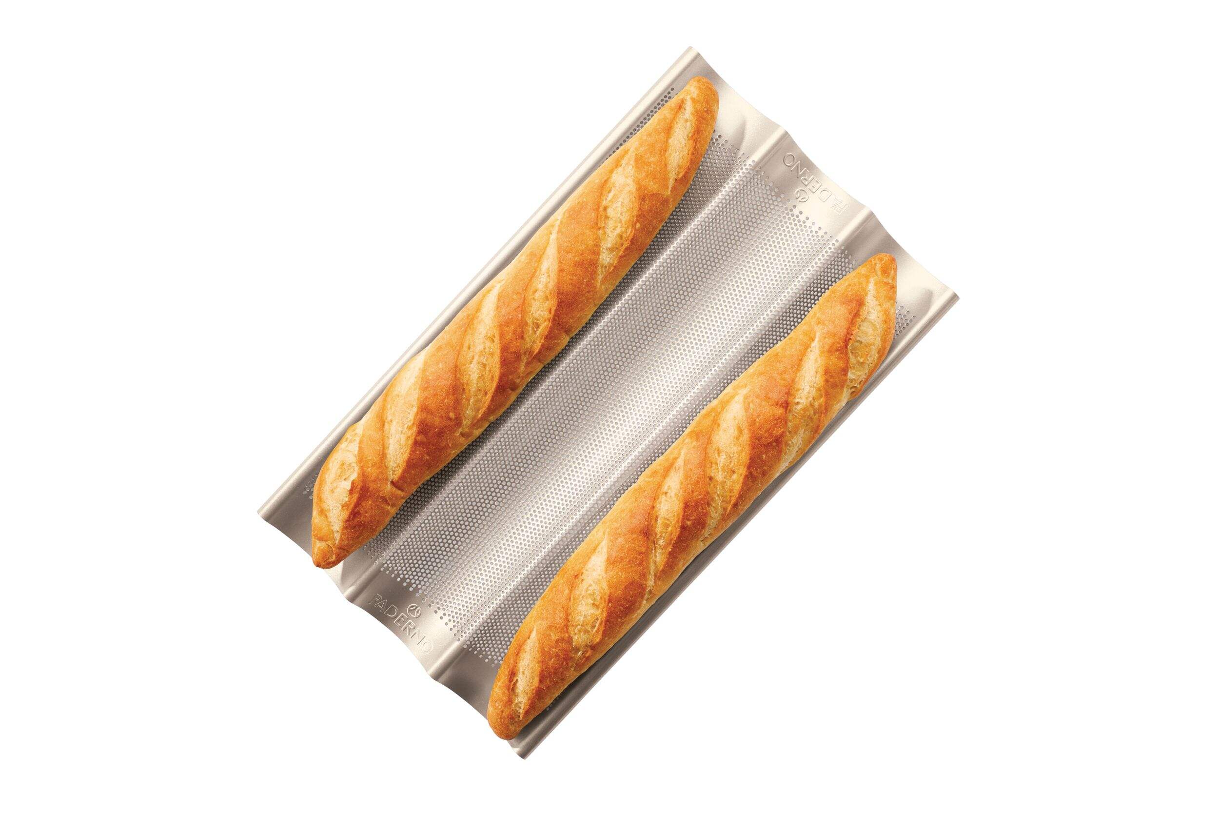 Bake perfect baguettes every time with the Paderno Professional Non-Stick Baguette Pan. Crafted from heavy gauge aluminized steel, this pan ensures even heat distribution for consistent baking results. Its champagne finish adds a touch of elegance to your kitchen.