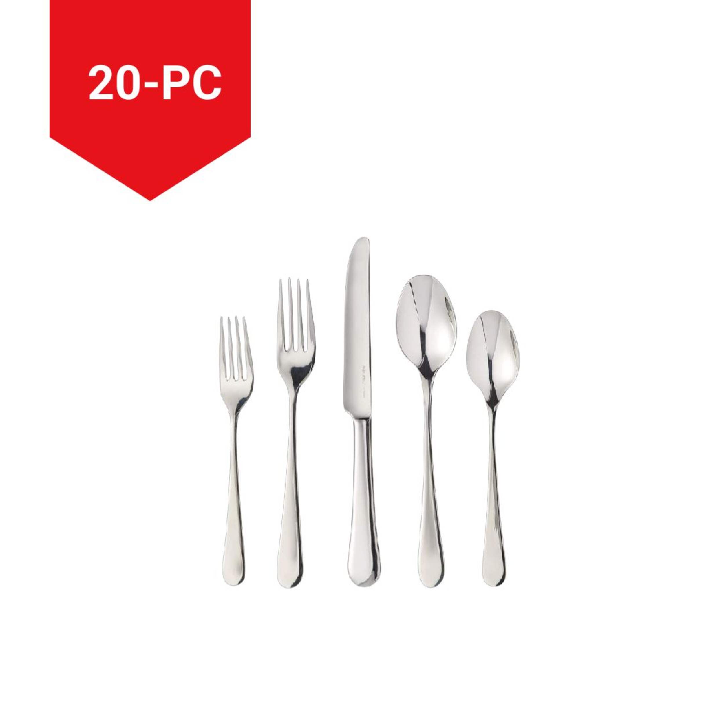 Sleek and stylish, the PADERNO Richmond Flatware Set is equally suitable for casual dining, everyday use, or formal dinner parties. Guests will love the clean, polished finish, while you’ll appreciate the easy-care durability and corrosion resistance. This fashionable and functional 20-piece cutlery set includes four complete settings, with everything you need to enjoy meals with friends and family.