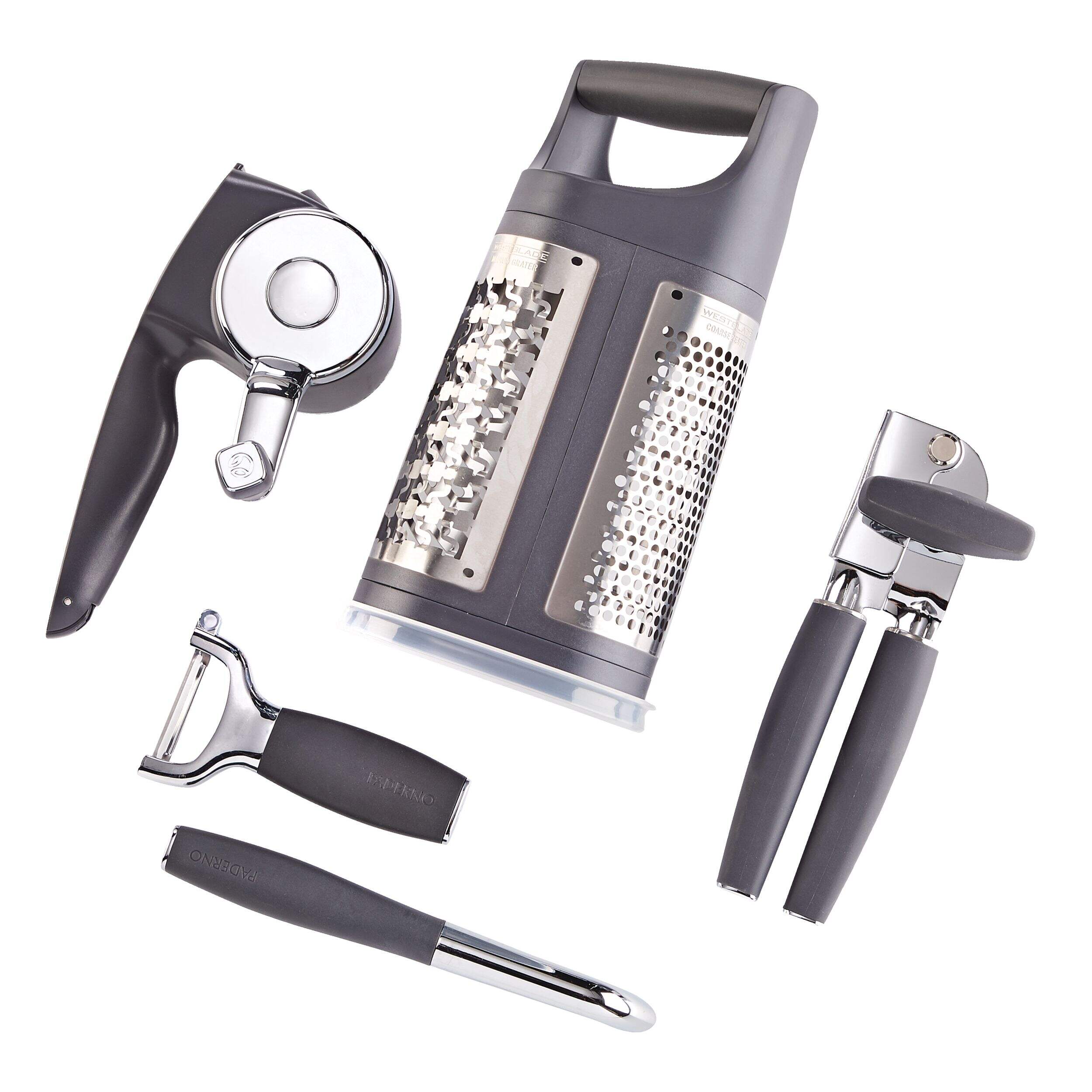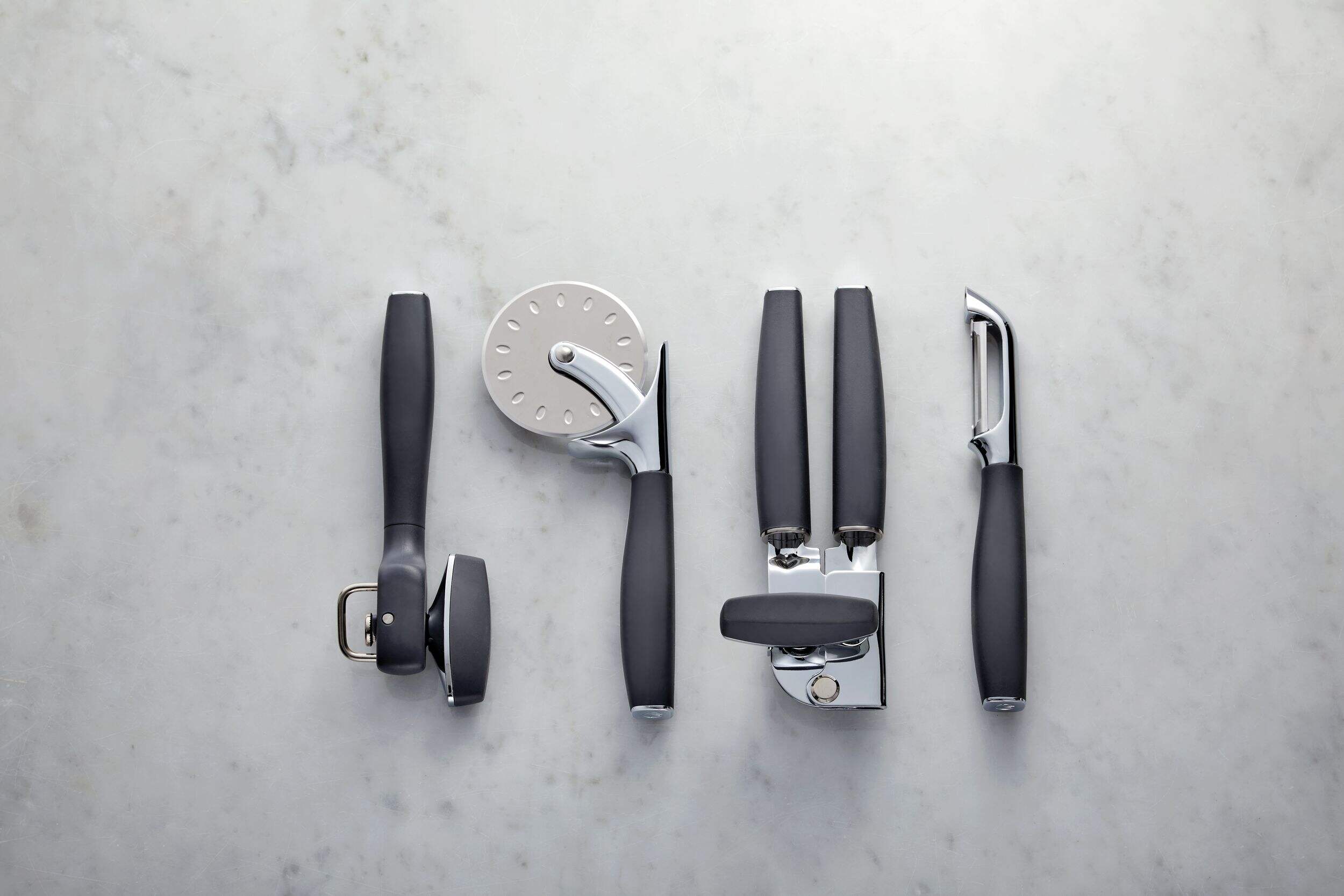 Simplify food prep with the handy PADERNO Stainless Steel Can Opener. The durable cutting blade will make short work of metal lids, while the easy-to-turn, soft touch wing nut mechanism ensures easy operation. This ergonomically designed soft grip can opener works smoothly to give your cans a clean cut every time while keeping your hands safe and comfortable.