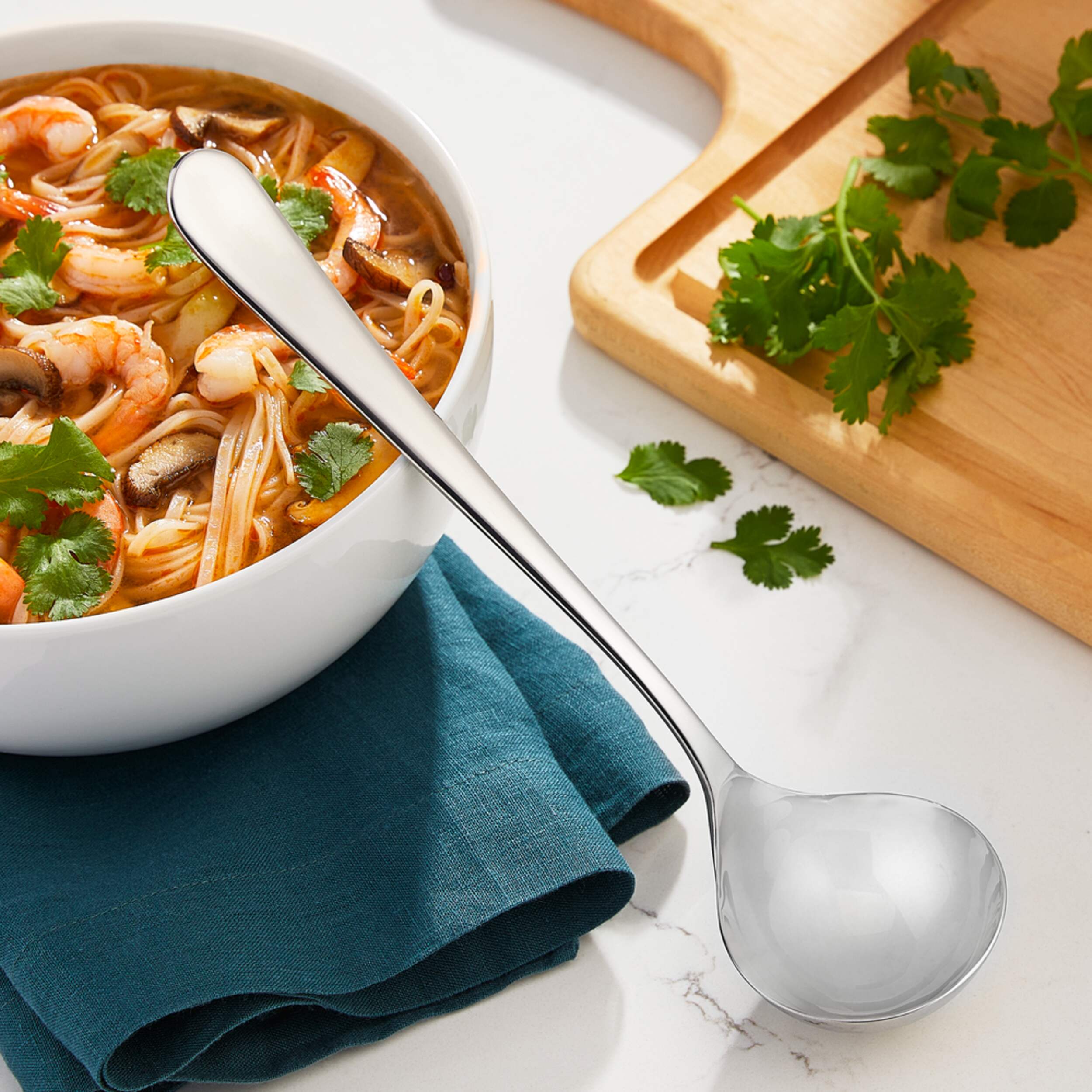 With elegance and flair, the PADERNO Ladle has a classic shape that is suitable for casual eating with the family, for use at parties, or showing off at more formal dining affairs. Made from 18/10 stainless steel, this restaurant-quality soup ladle is designed to resist both rust and corrosion. Perfect for serving or as a gift, this stainless steel soup ladle is also a breeze to clean and is dishwasher-safe.