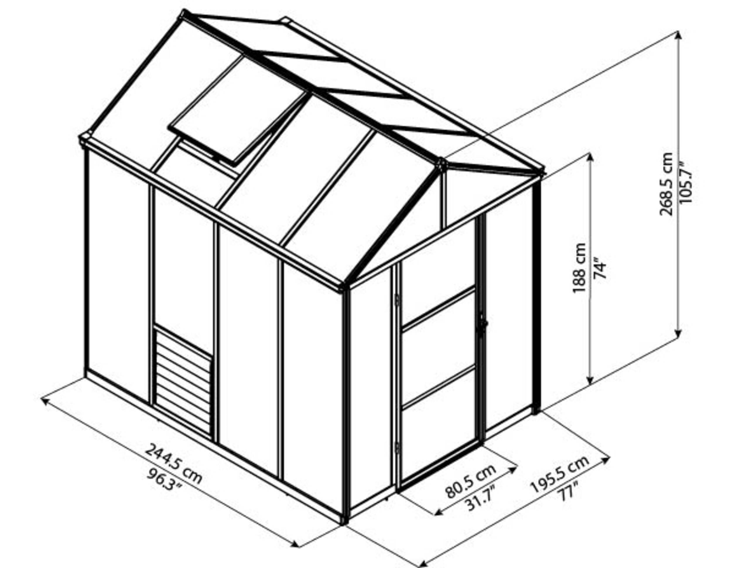 This greenhouse provides ideal conditions for an enjoyable and fruitful gardening experience. The wide entrance door and included accessories create optimal ventilation to help maintain the proper moisture and temperature levels. The high roof and tall eaves provide ample headroom and space to grow tall and leafy plants. The extra thick aluminium frame, with the included galvanised, rust-resistant steel base adds height, structural support, stability and alignment. It is aesthetically pleasing with its grey powder coated robust aluminium frame. This greenhouse is designed and built to last.