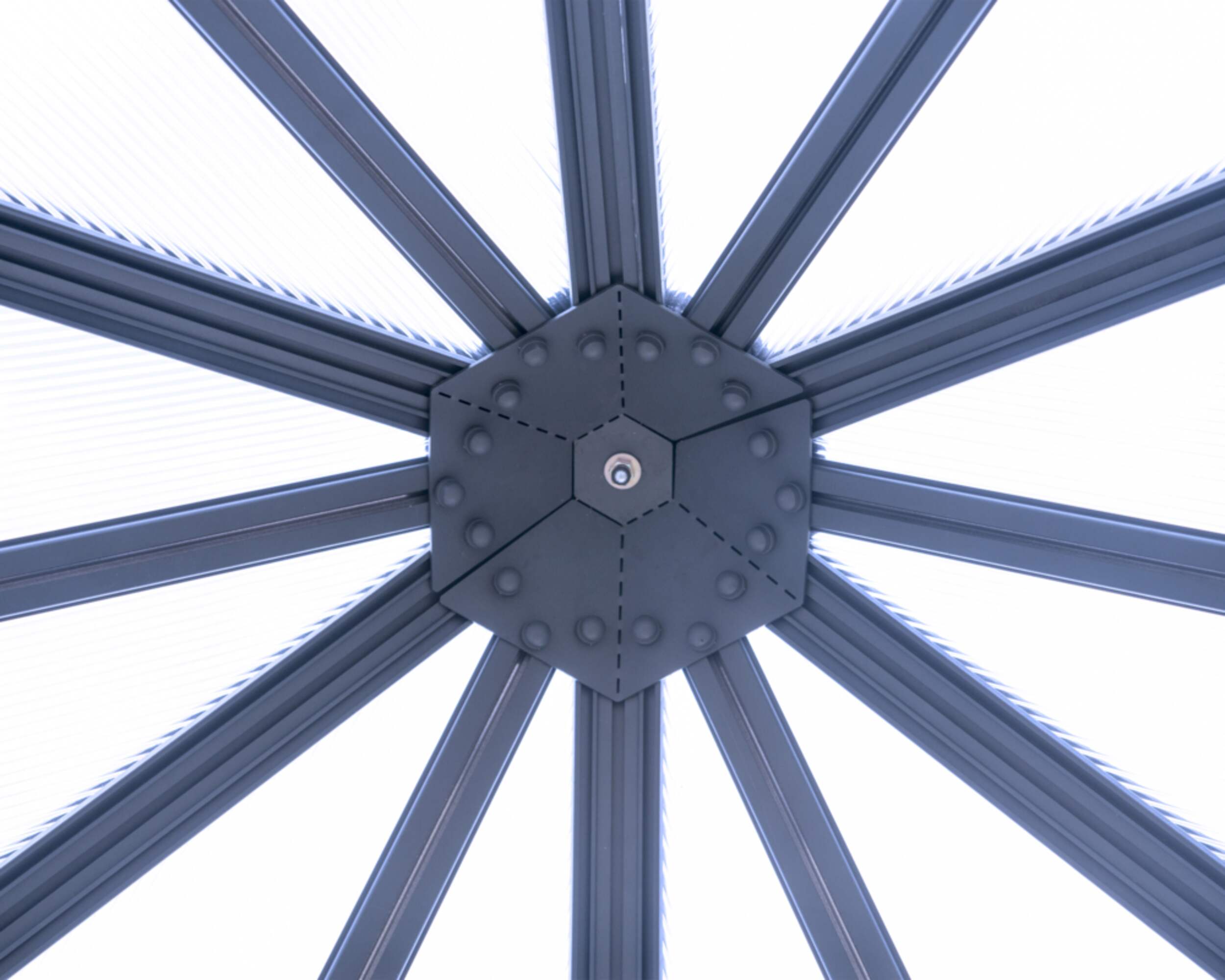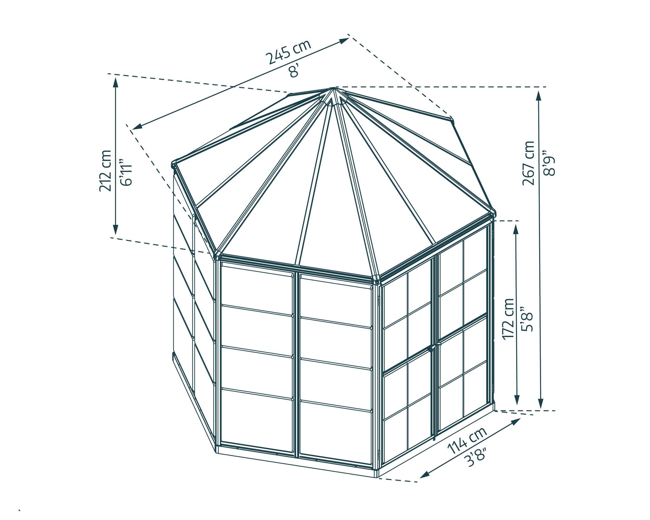 Stylish hexagonal design offers ample head room and 360° look-around clear scenery