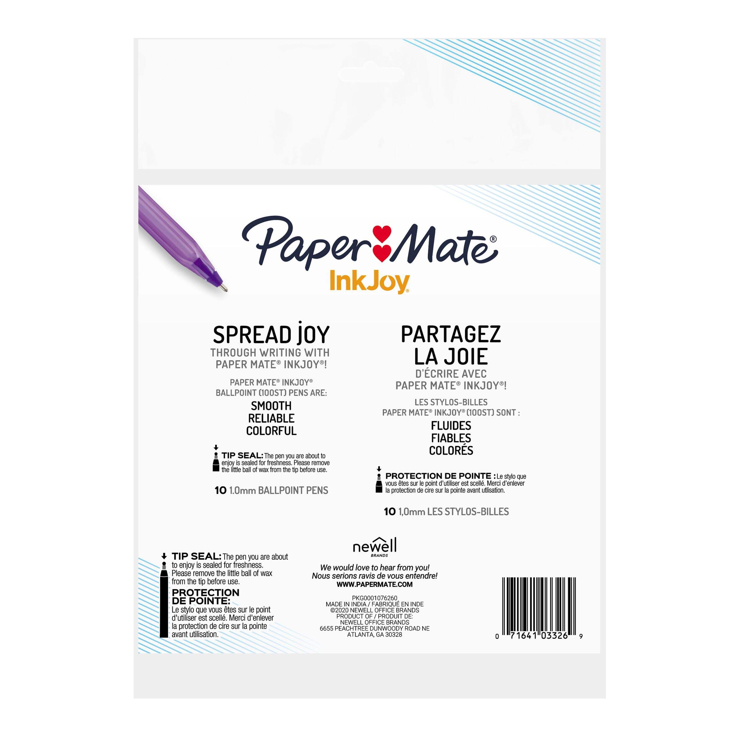 Spread joy with vivid colour! Paper Mate InkJoy 100ST ballpoint pens have a smooth, fast-starting writing system that spreads ink easily so writing’s never a drag. Even work or school is fun when you can choose from a rainbow of brilliant colours and enjoy ink that flows as freely as your thoughts. Brighten up every page and make writing more exciting with Paper Mate InkJoy ballpoint pens.