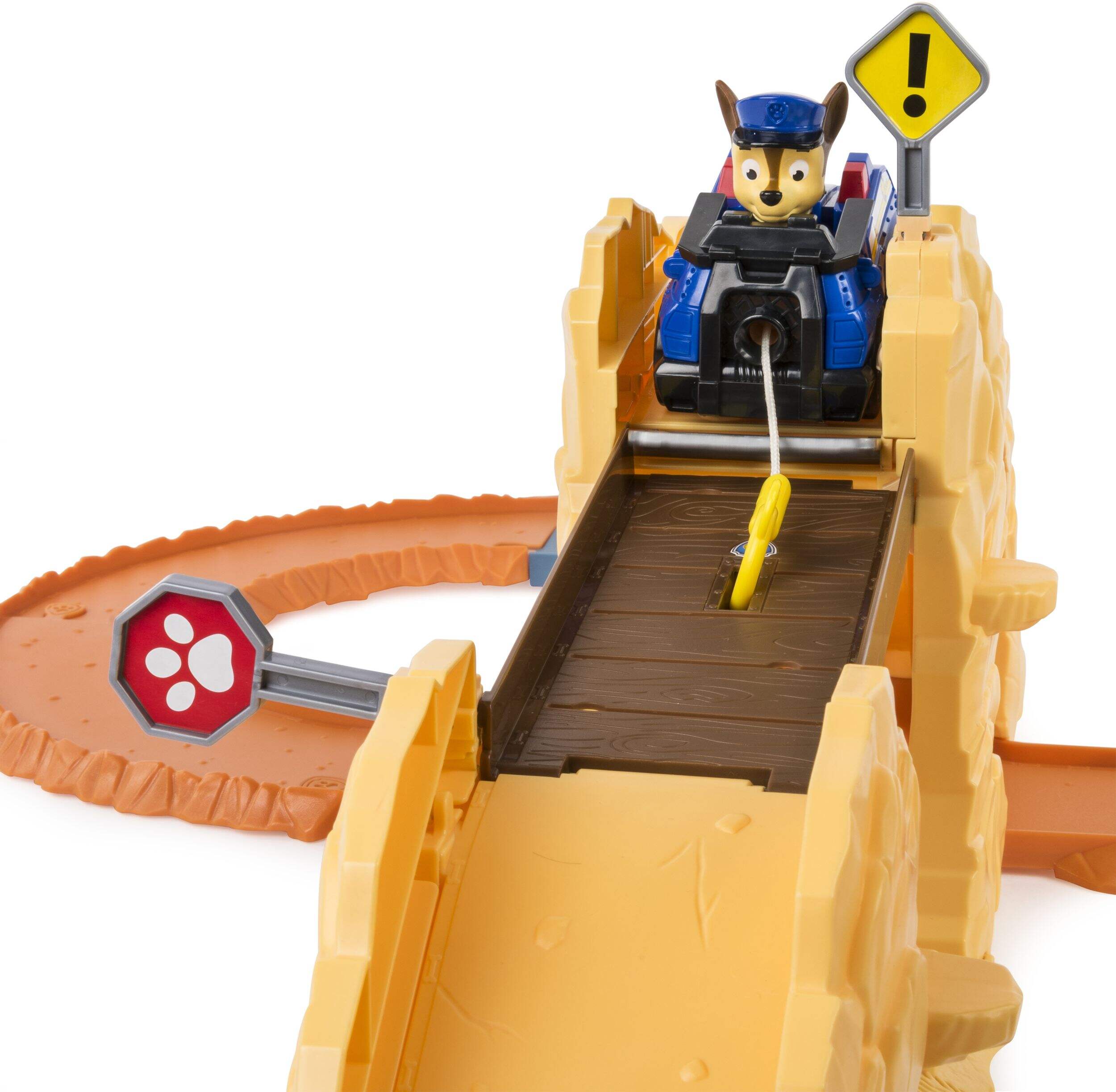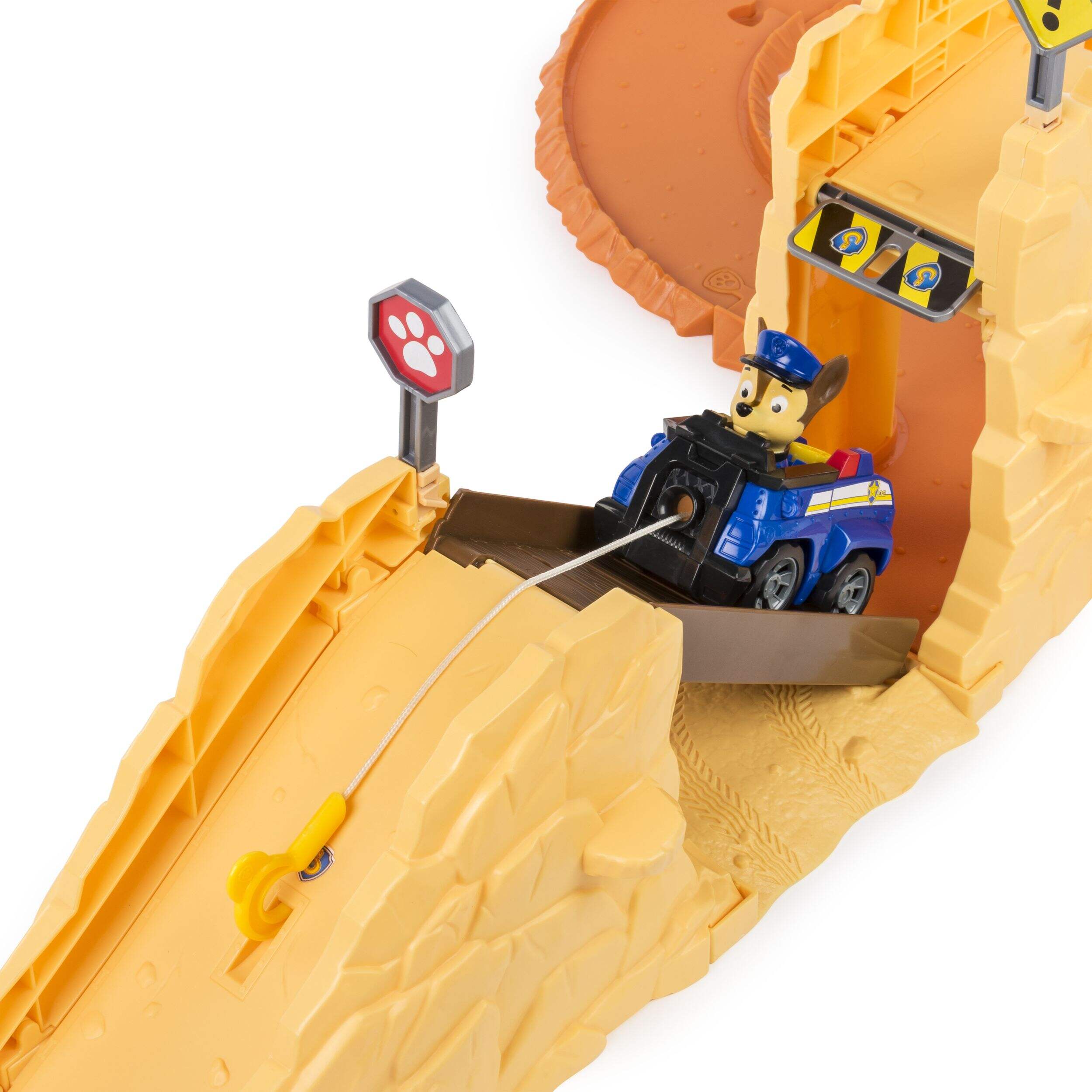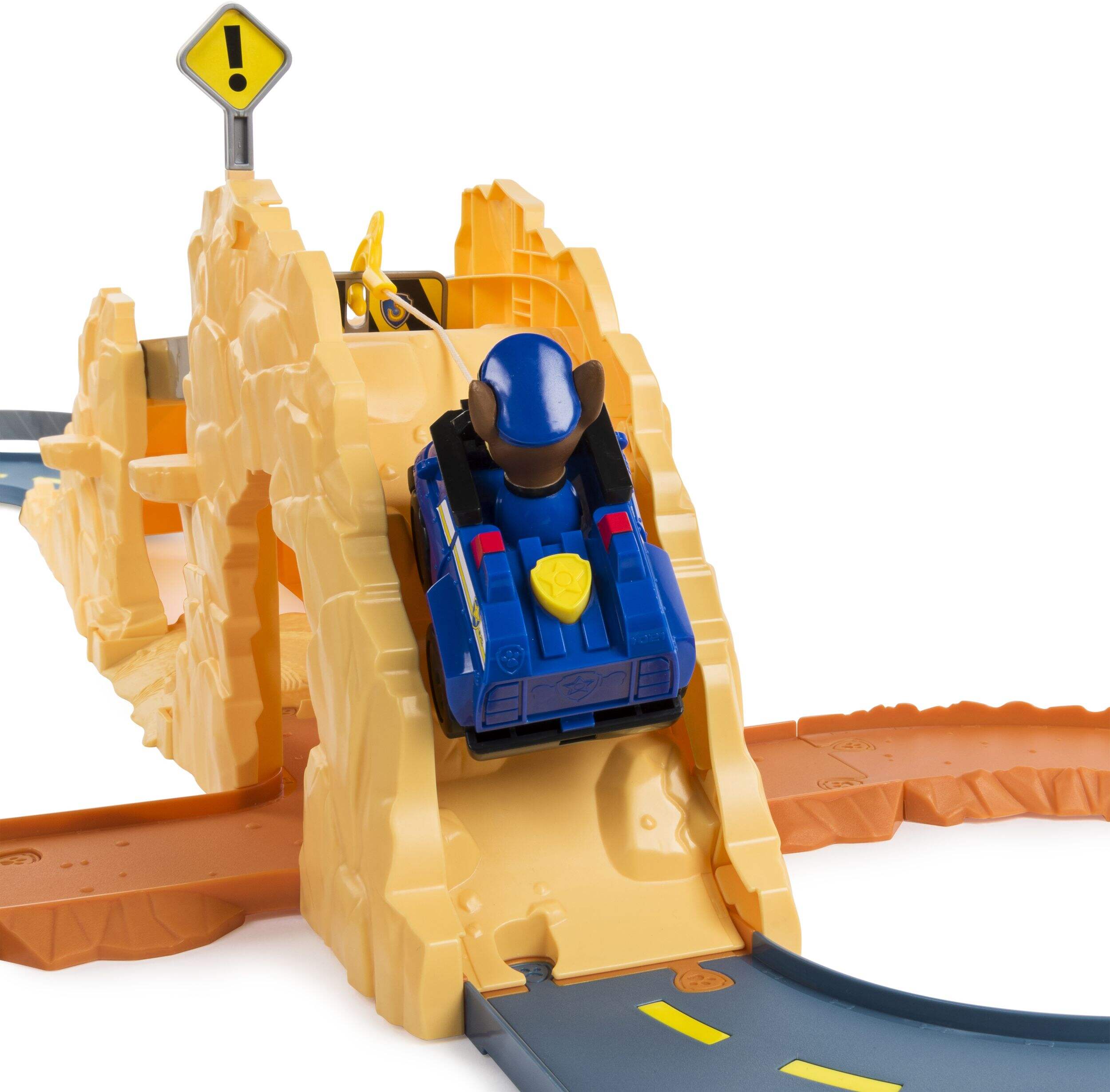 Large track and elevated mountain lets kids zoom along with chase to his next mission