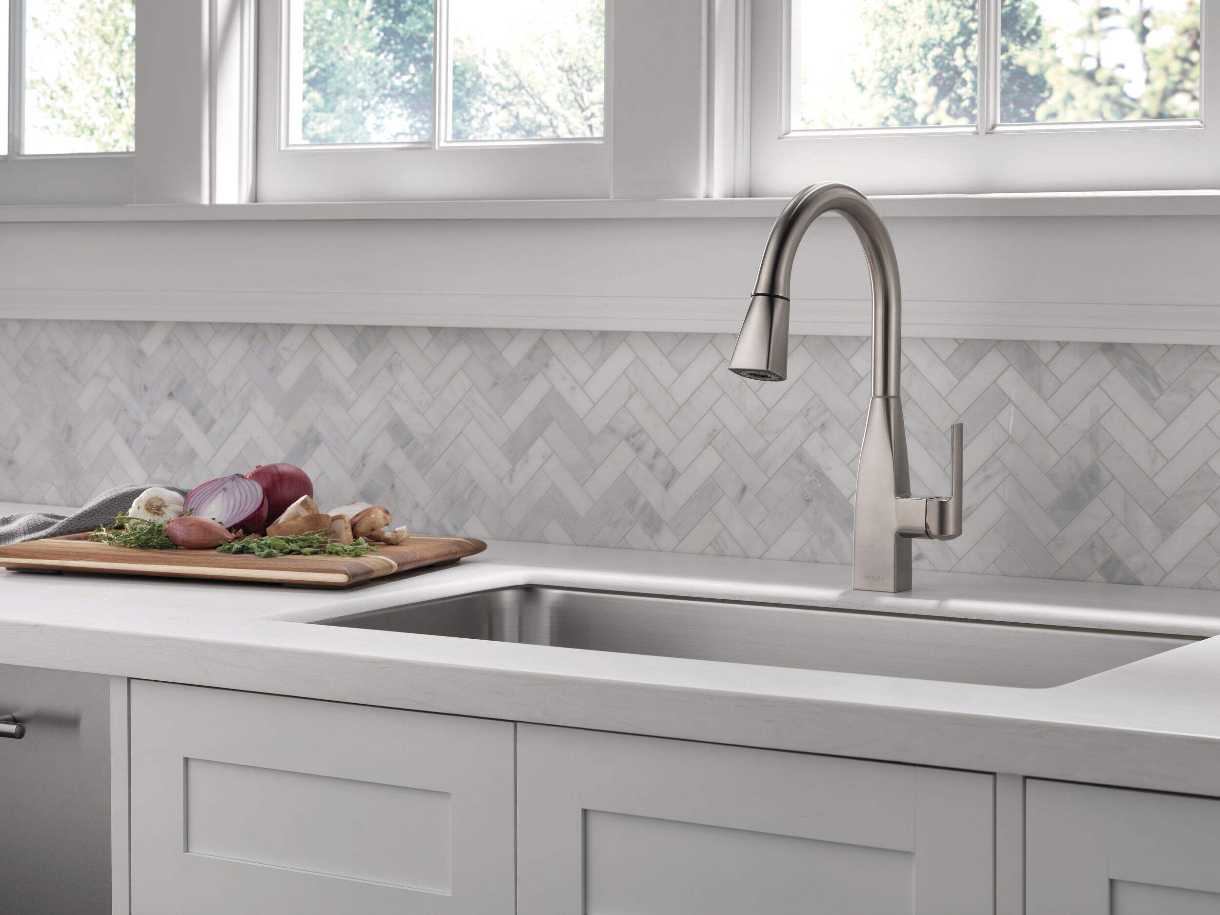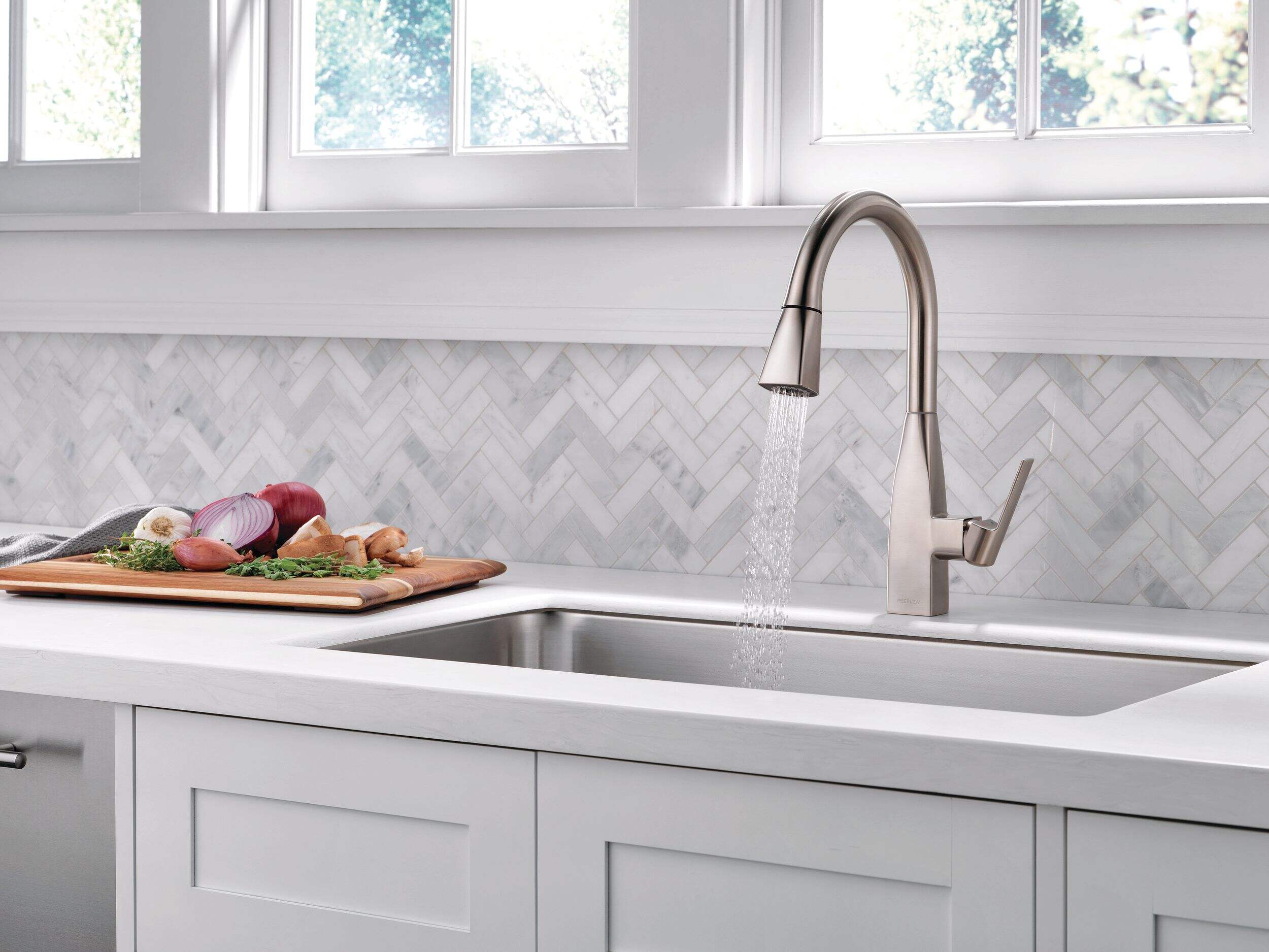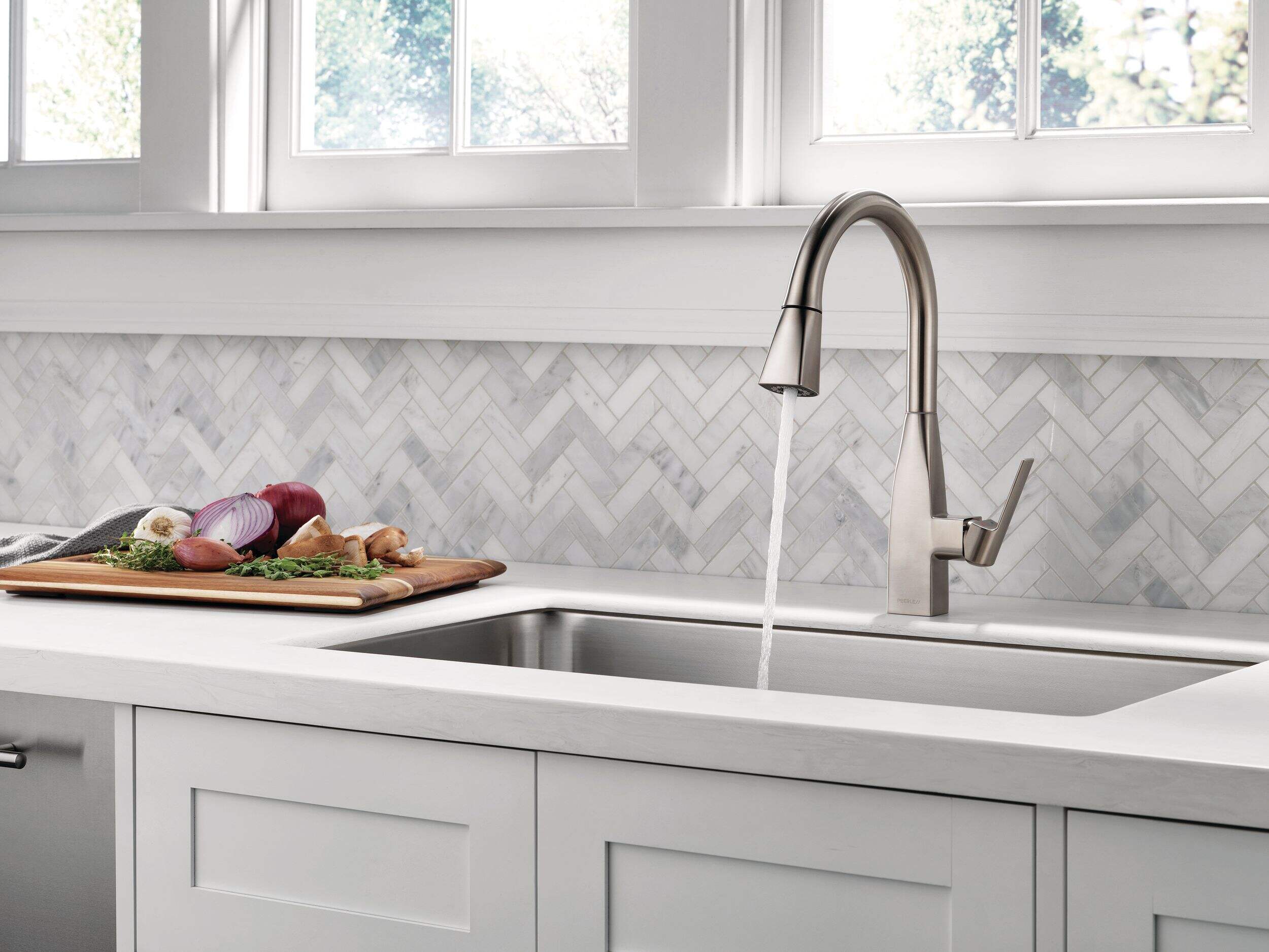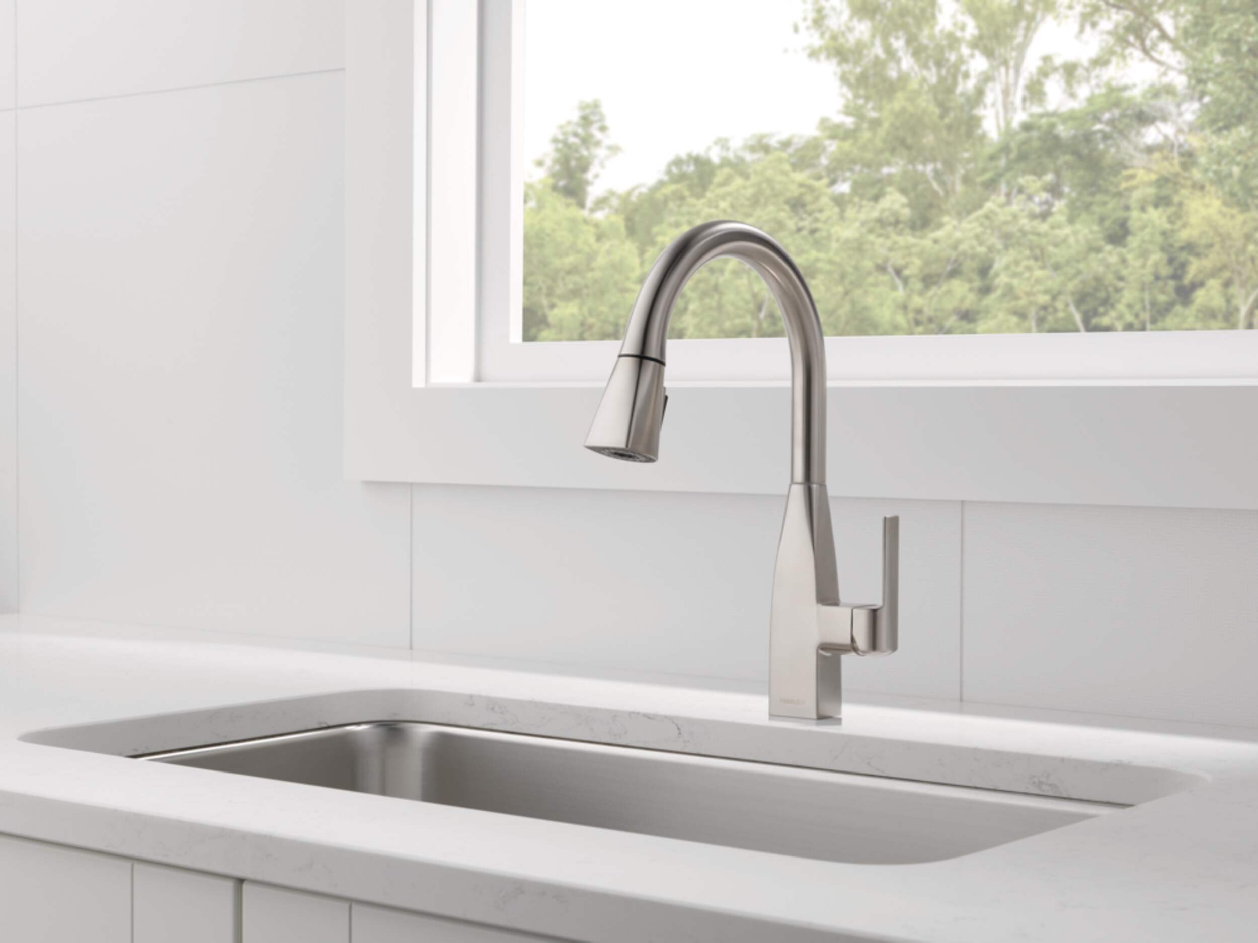 The Peerless® Xander Single-Handle High-Arc Pull-Down Kitchen Faucet in Stainless Steel brings sleek, contemporary style and functionality to any kitchen. Featuring a high-arc spout and pull-down spray head, this faucet offers flexibility and convenience for rinsing, washing, and filling larger pots. The single-handle design ensures easy control of water temperature and flow. Built with a stainless steel finish that resists tarnishing and corrosion, the Xander faucet combines durability with modern design, making it an ideal choice for both busy and stylish kitchens.