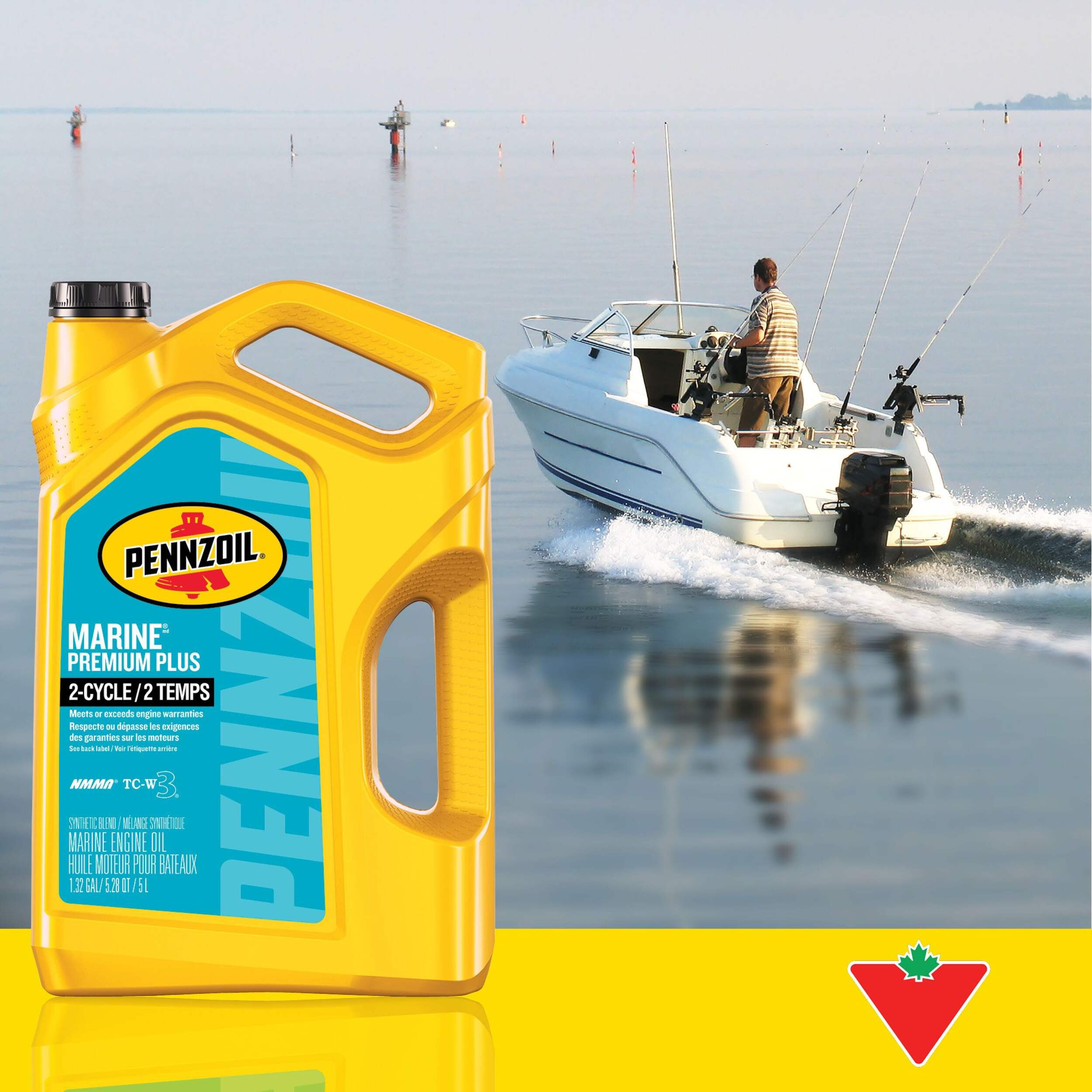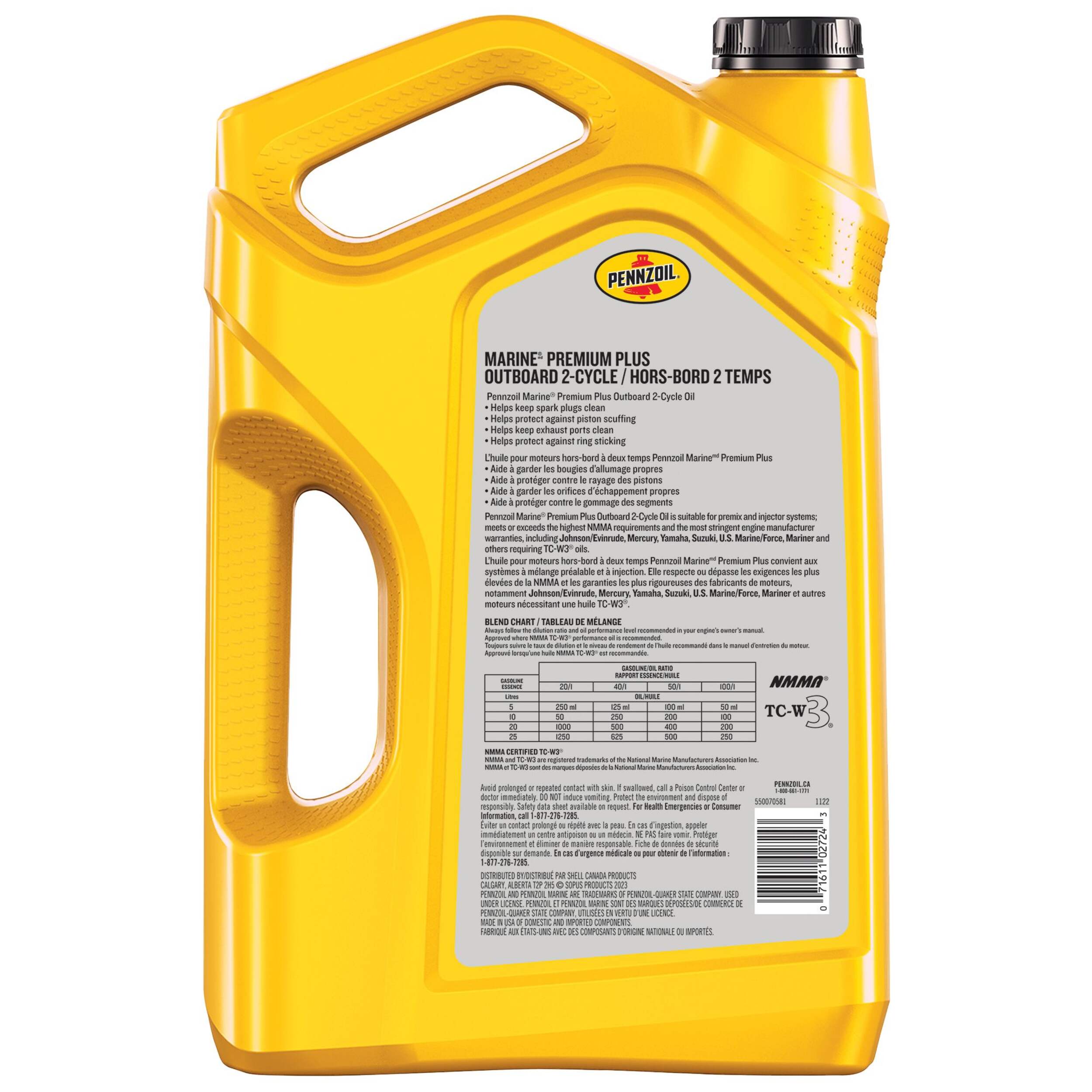 Pennzoil Marine Premium Plus 2-Cycle Engine Oil is a high-performance synthetic blend designed for demanding marine engines. Offering superior protection against scuffing, ring sticking, and deposits, this oil supports smooth operation while working to enhance longevity. It’s NMMA TC-W3 certified, making this oil suitable for use in both pre-mix and oil-injection systems in modern outboard engines.