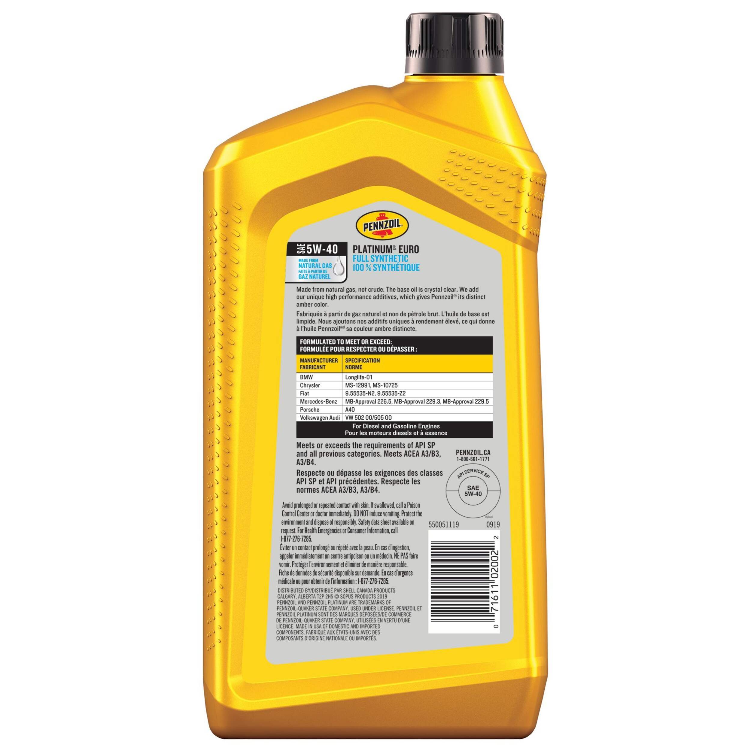Pennzoil Platinum® Euro with PurePlus™ Technology is a first of its kind full synthetic motor oil made from natural gas and designed for COMPLETE PROTECTION for top engine performance. Formulated for most European vehicles.