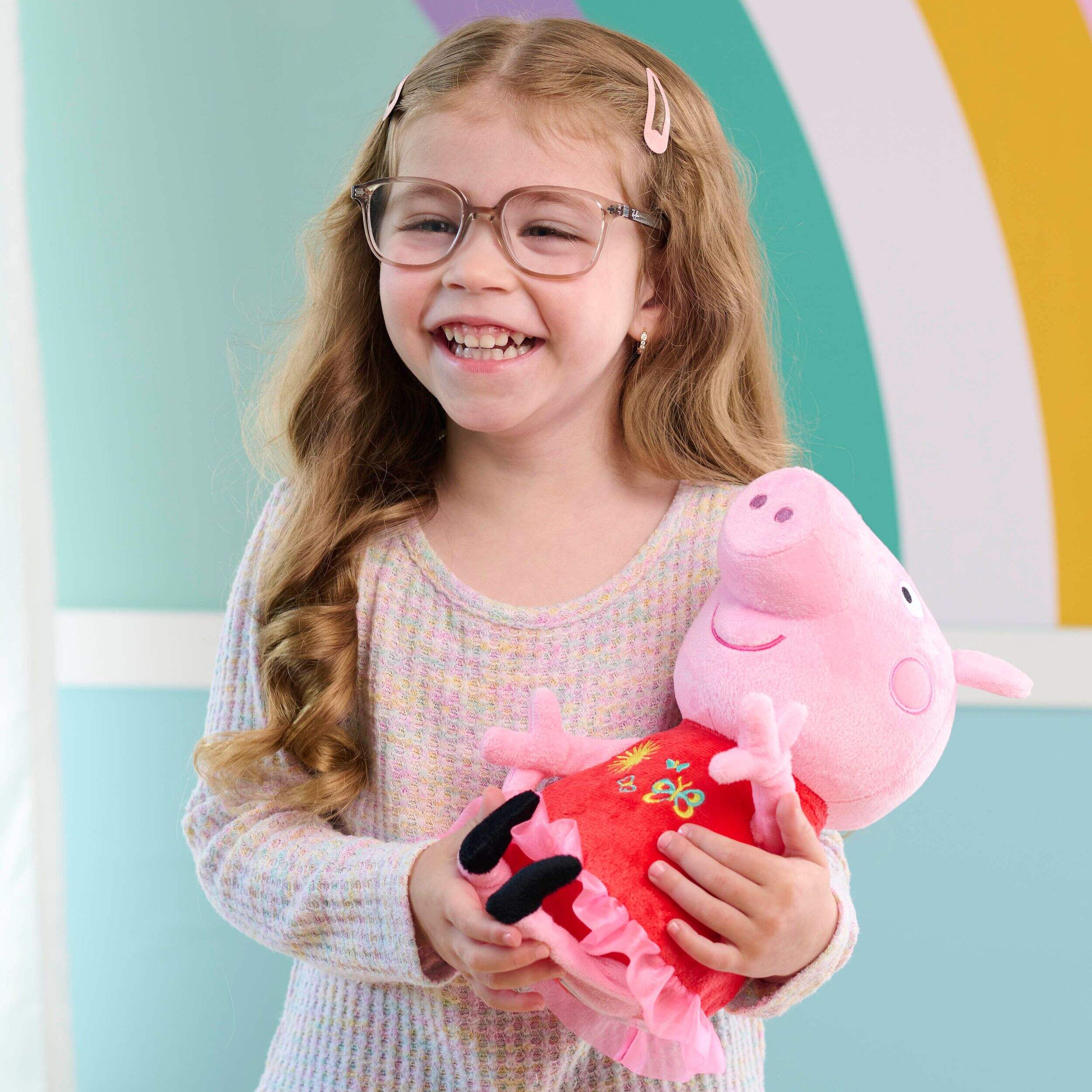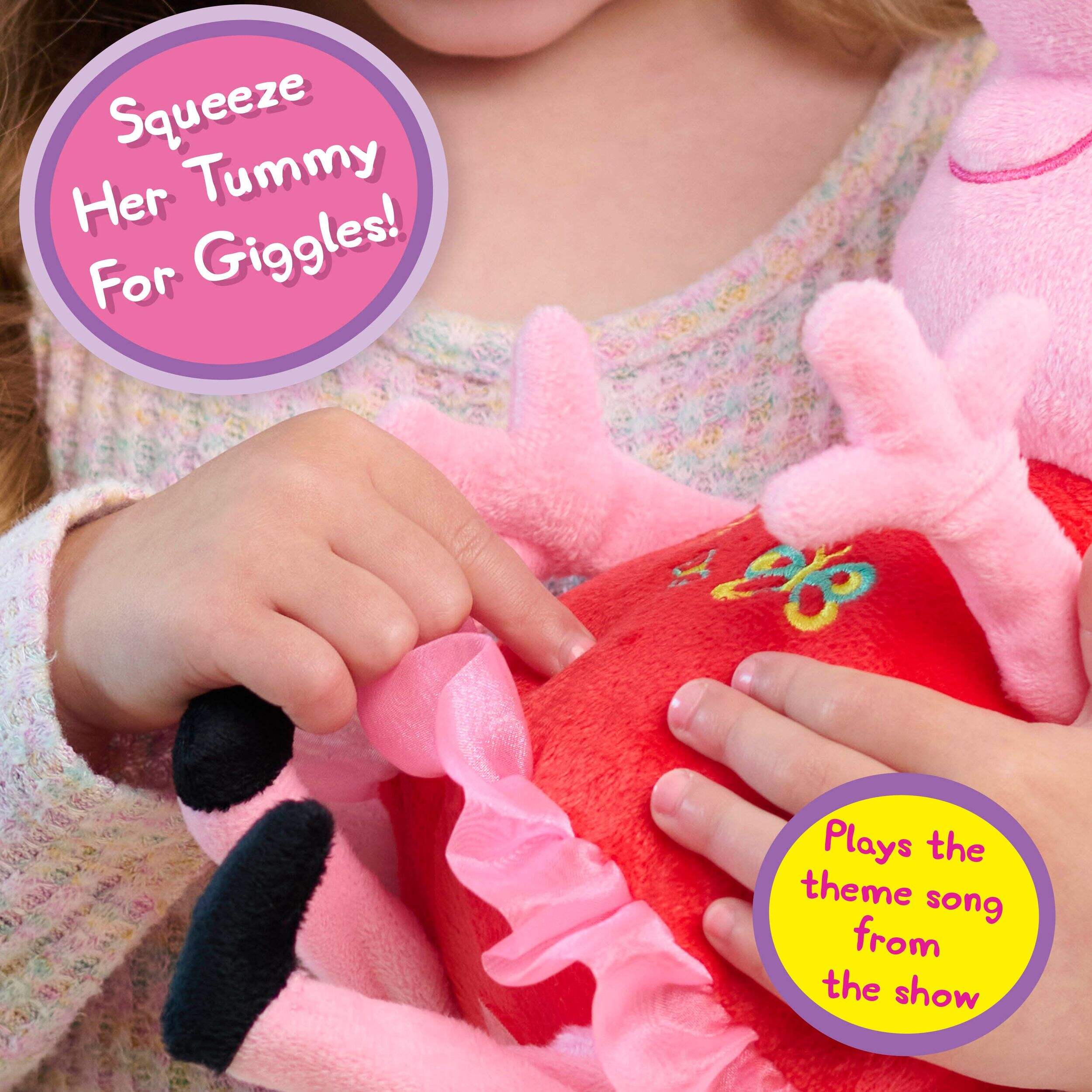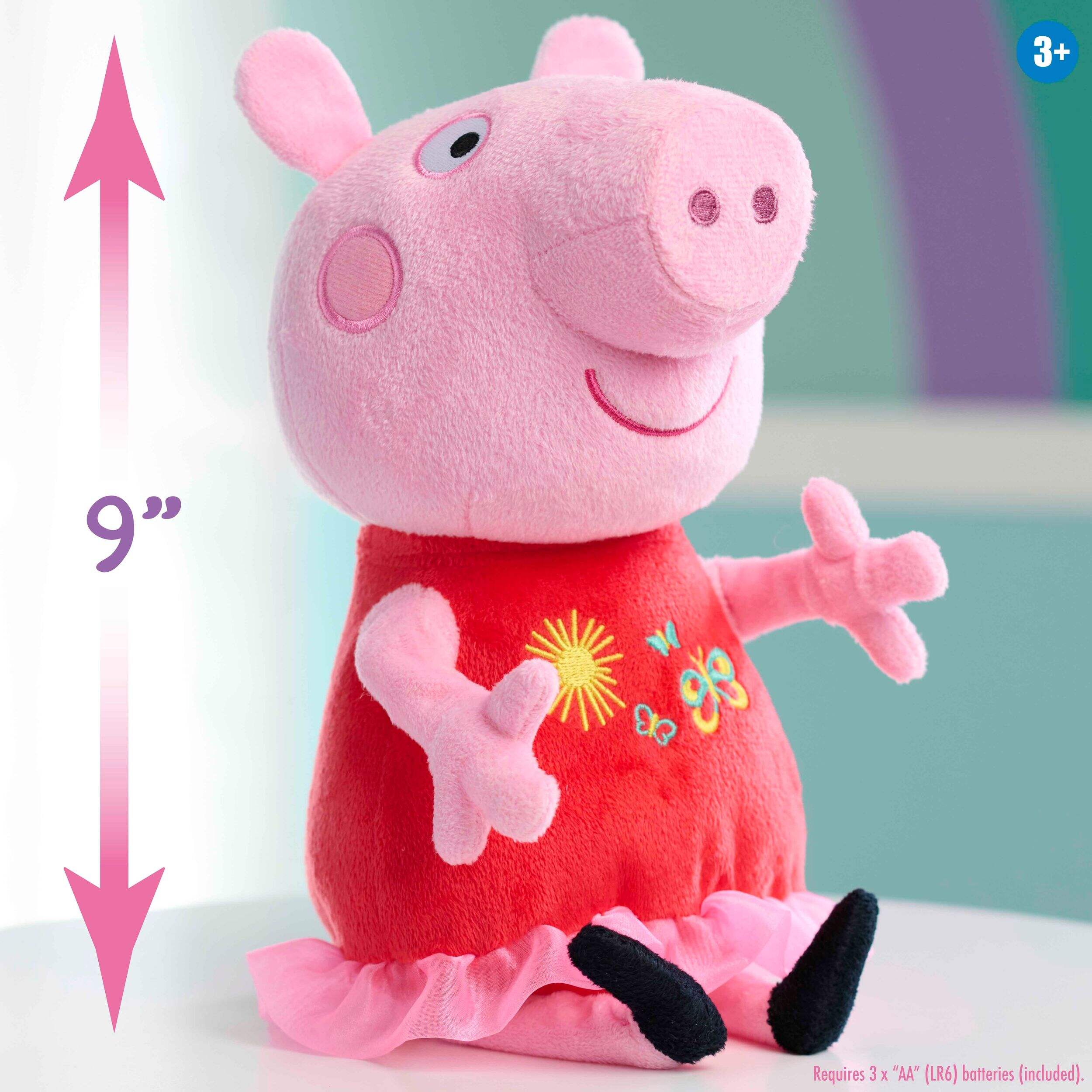 It’s always a great day when this Peppa Pig Stuffed Animal is around. By squeezing Peppa's stomach, kids will be treated to giggles as Peppa kicks out her feet in glee. Peppa will also play the theme song from her show. Made from super-soft fabric with embroidered details, this toy makes a great snuggle companion for fun-loving kids. The toy stands ten inches and is suitable for children three and up.