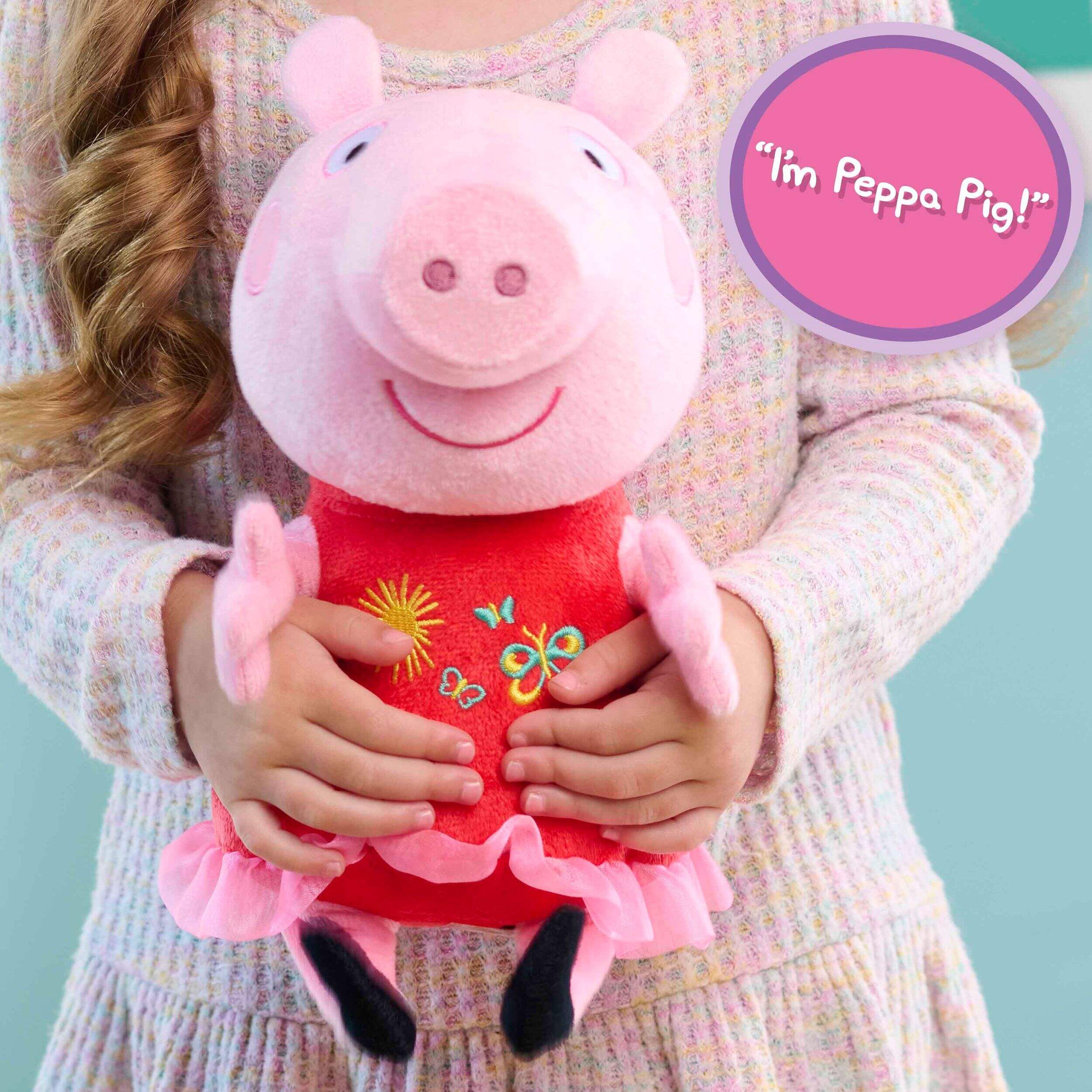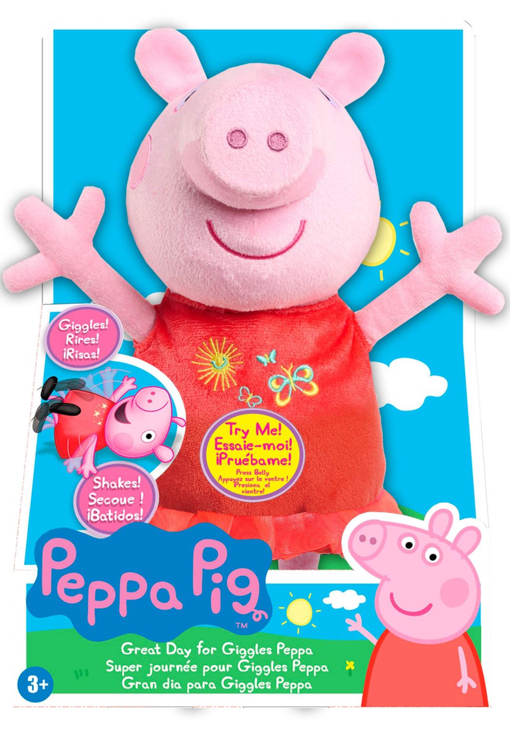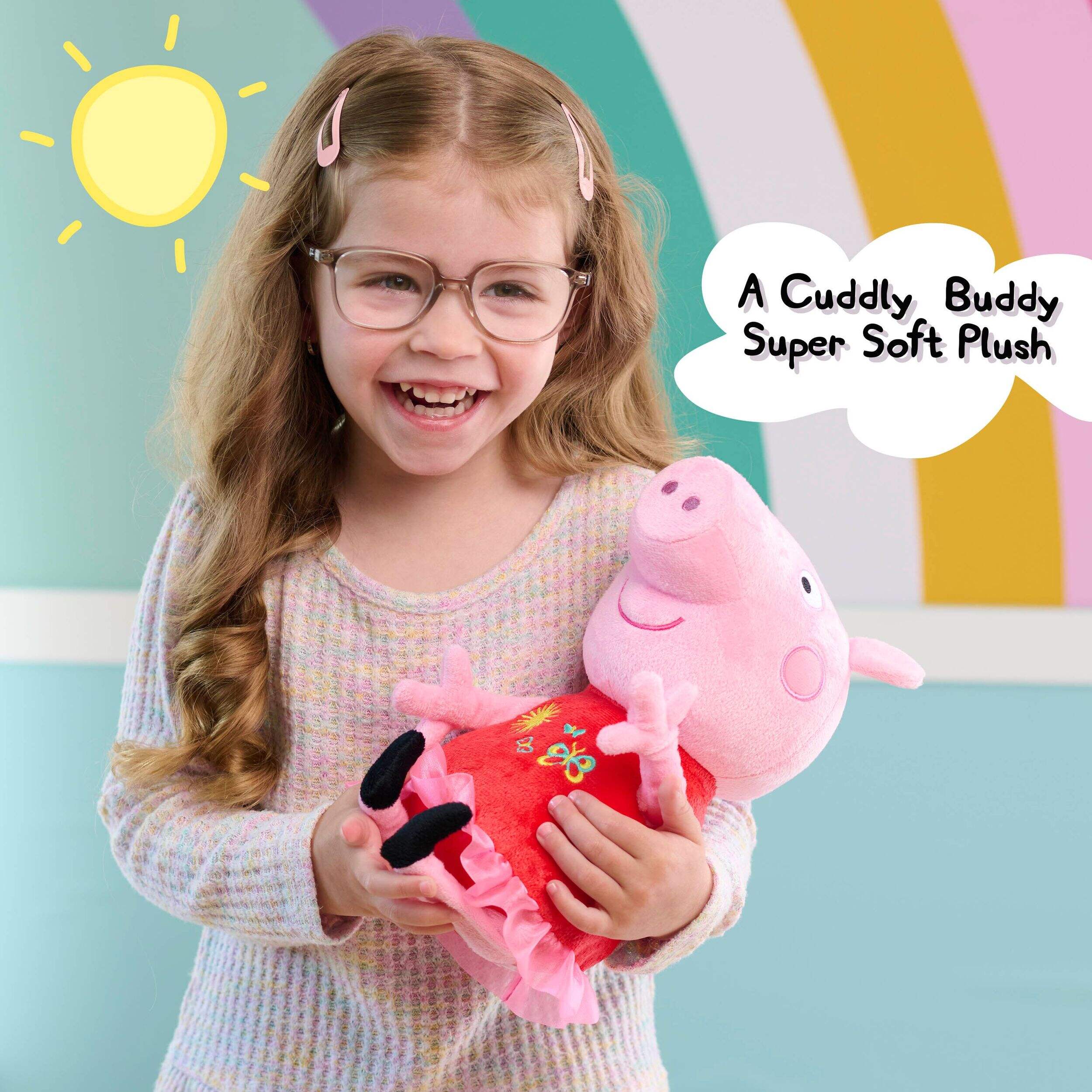 It’s always a great day when this Peppa Pig Stuffed Animal is around. By squeezing Peppa's stomach, kids will be treated to giggles as Peppa kicks out her feet in glee. Peppa will also play the theme song from her show. Made from super-soft fabric with embroidered details, this toy makes a great snuggle companion for fun-loving kids. The toy stands ten inches and is suitable for children three and up.