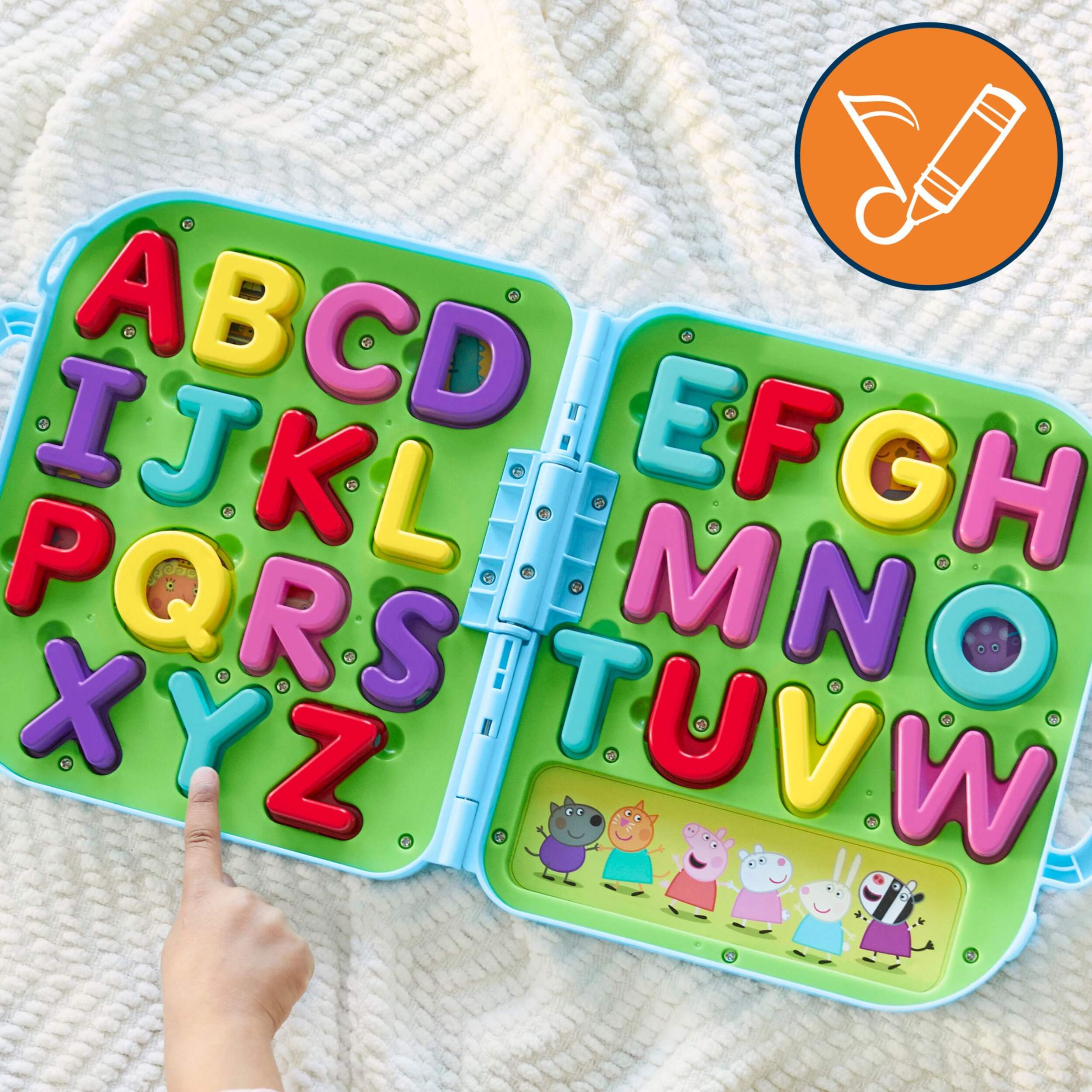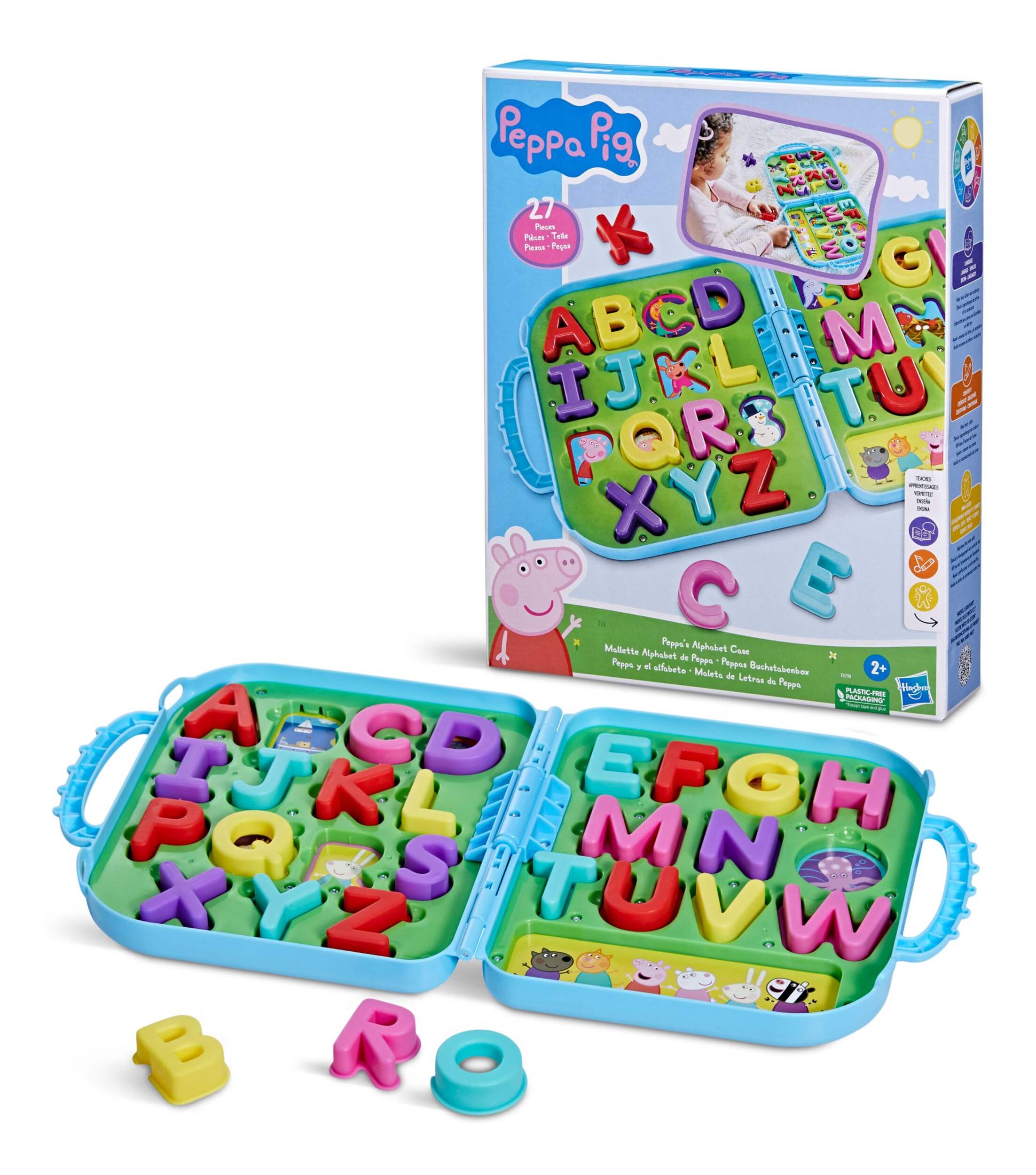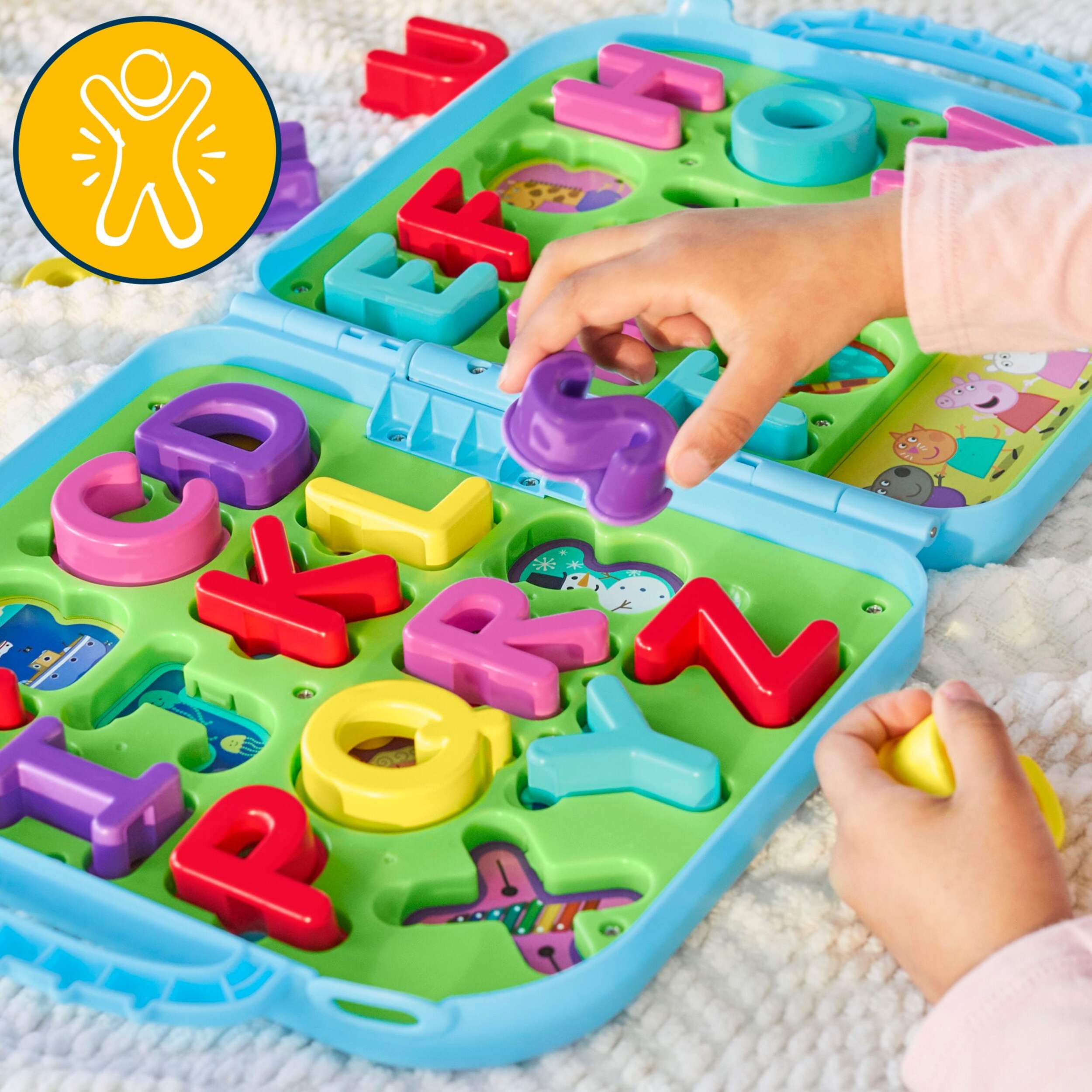 Open up Peppa Pig Learn with Peppa Letters Case and find an oink-tastic alphabet puzzle with 26 colourful, removable letter pieces