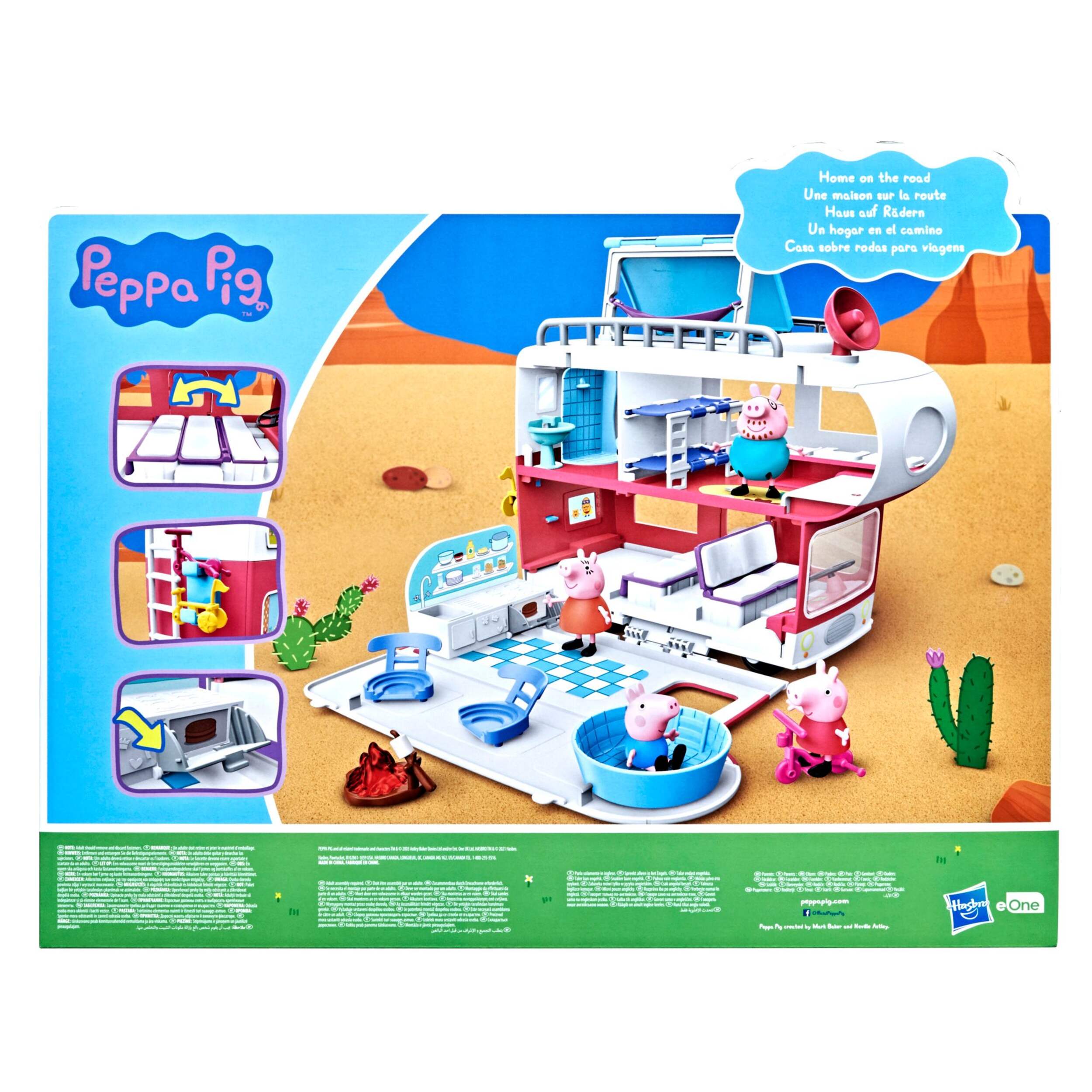 Includes 4 Pig family figures and 13 themed accessories, including a movable kitchen, campfire, and even a toilet, all of which store inside for on-the-go adventures