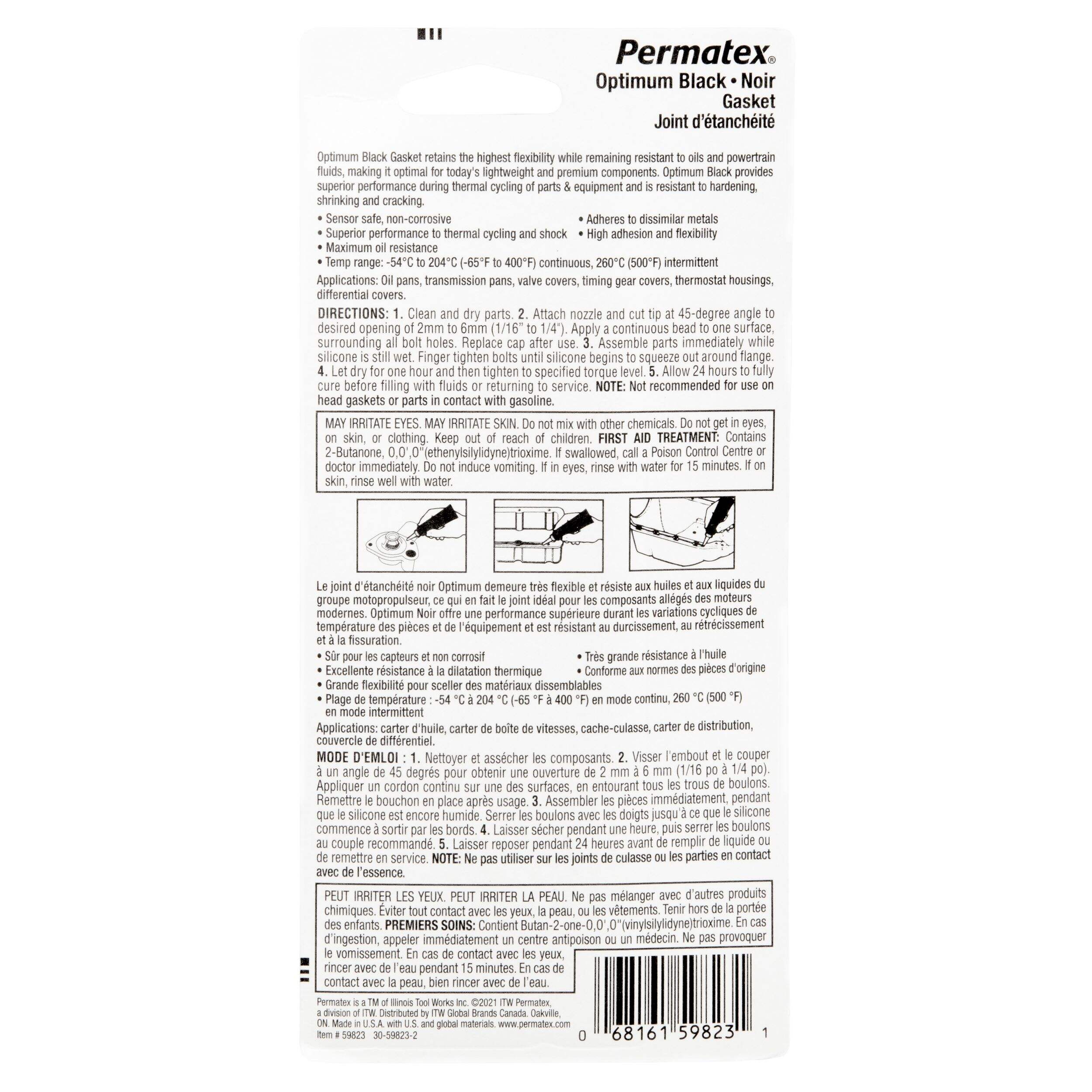 Permatex Optimum Black Gasket Maker is specially formulated for high flexibility and maximum oil resistance