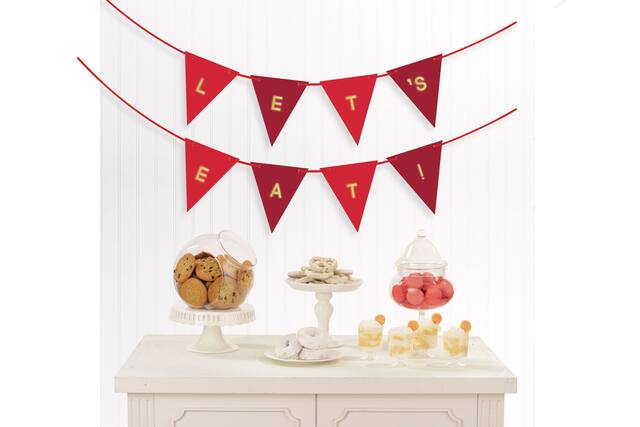 Simply use the included character stickers to spell out a message, string the flags together with the satin ribbon and hang it up for all to see