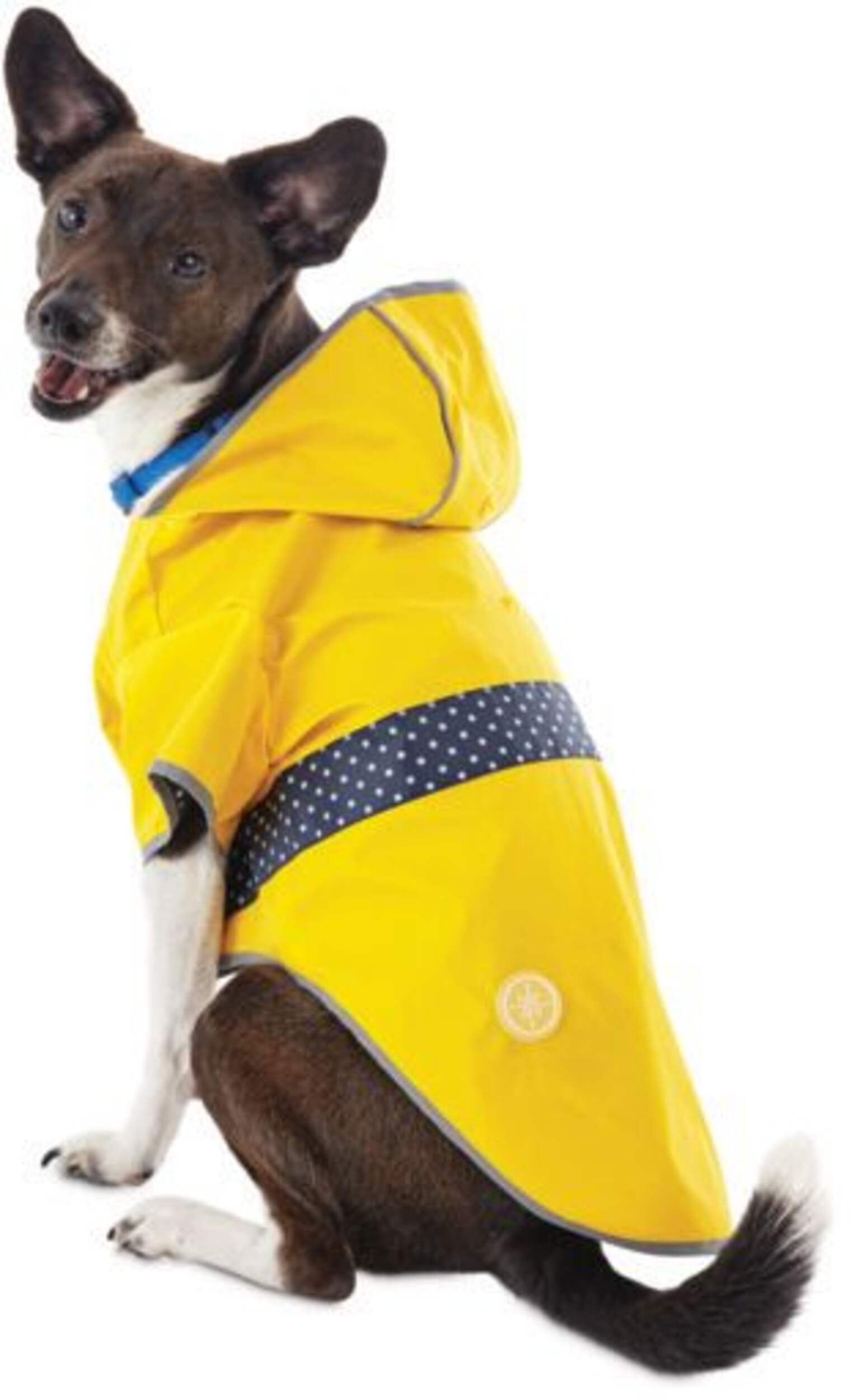 Petco Reversible Dog Raincoat features a 2-in-1 design so you can opt for an adorable polka dot print or a sunny canary colour with a printed trim