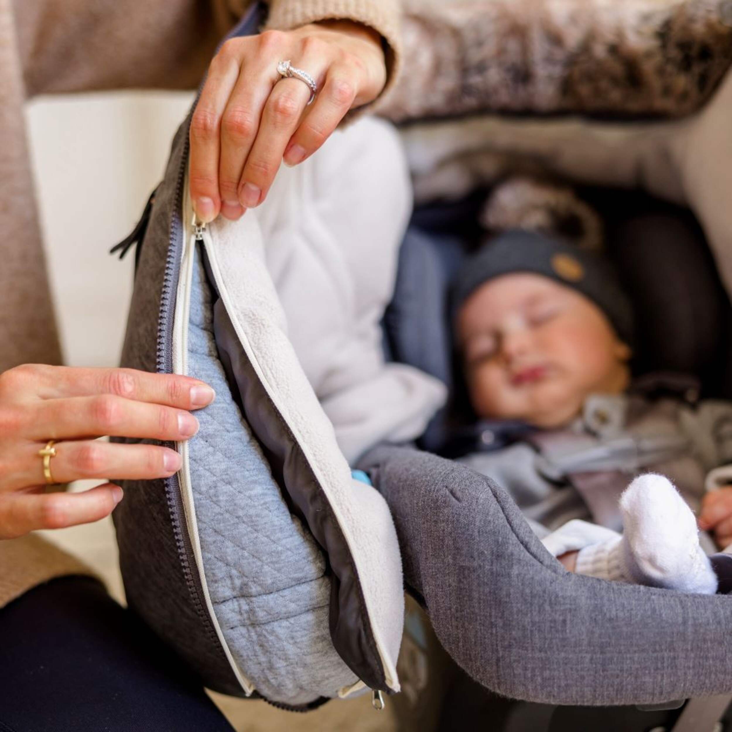 The Petit Coulou 3 Seasons Baby Car Seat Cover offers a comfortable and breathable mid-season like coat with a removable liner