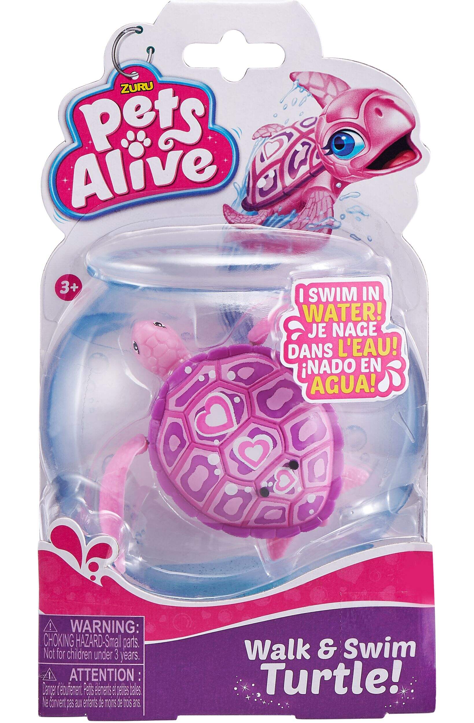Turtle: I walk and swim in water like a real turtle! Dive in with the pets alive Tiny Turtle. This gorgeous, life like turtle is happy on land or in water