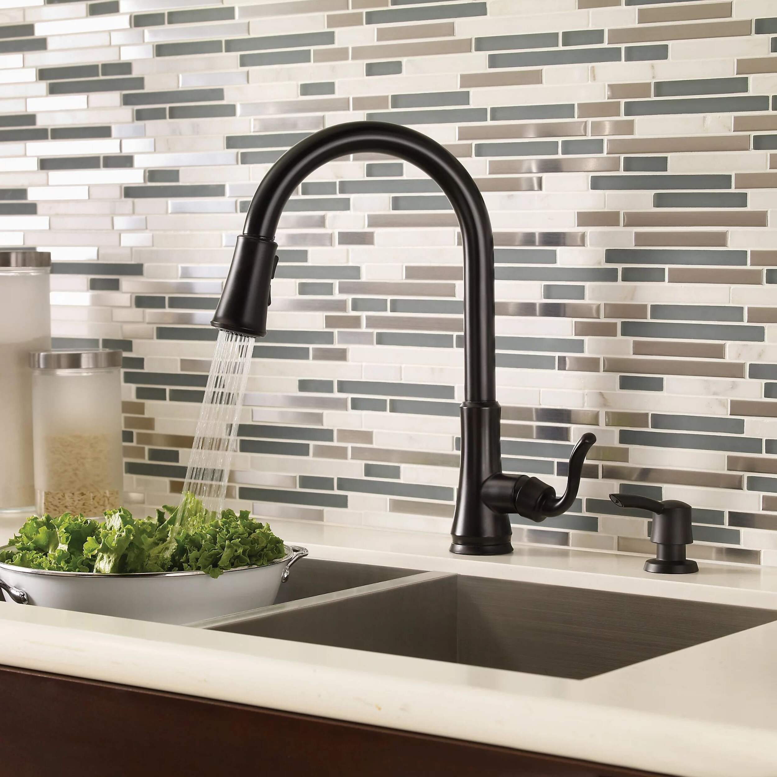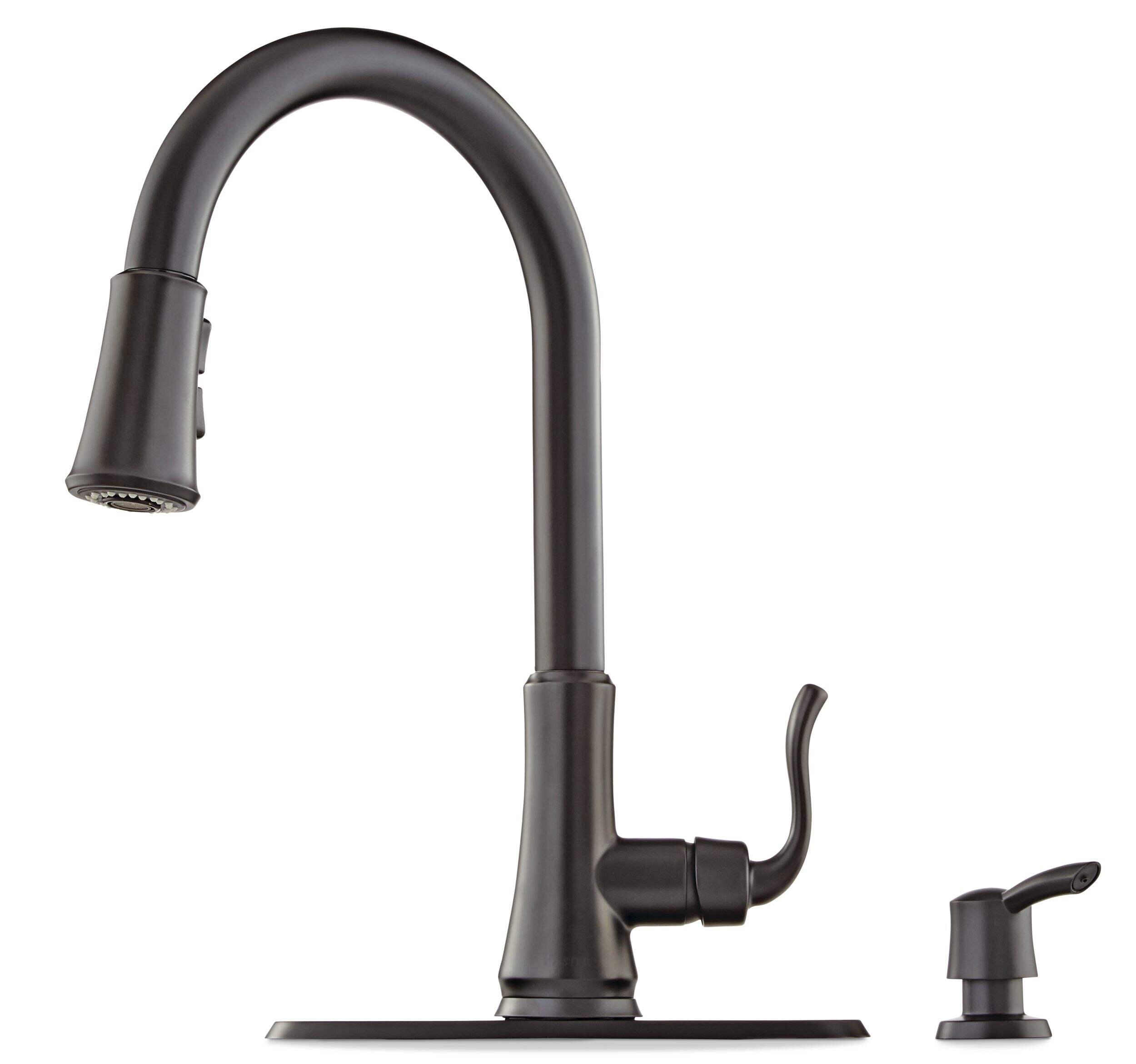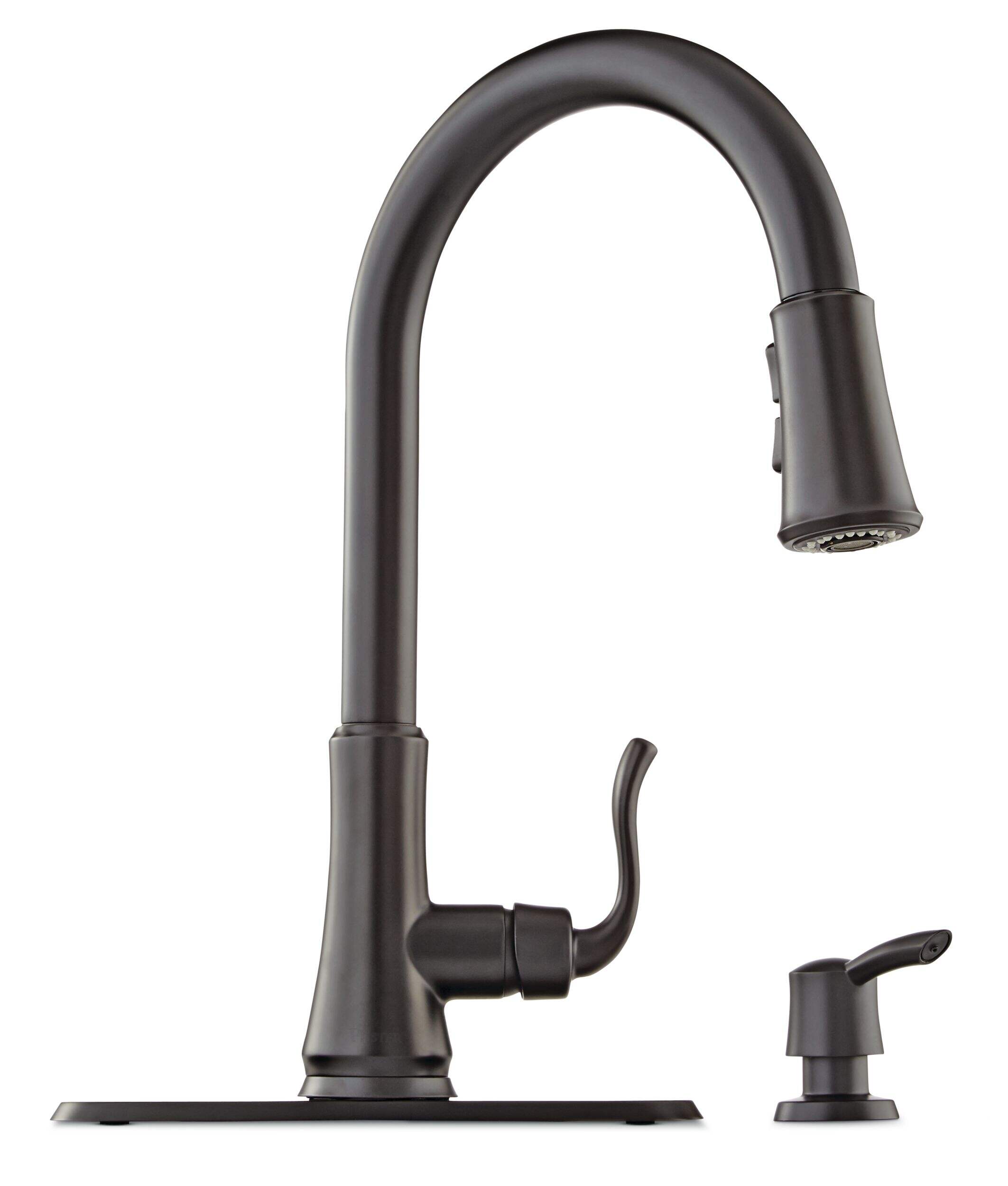 The Pfister Cagney Single-Handle High Arc Pull-Down Kitchen Faucet combines modern design with exceptional functionality, making it an essential addition to any kitchen. With its impressive pull-down spray head that offers three distinct settings—stream, spray, and pause—this faucet is tailored to meet your various kitchen needs, whether you're washing delicate produce or tackling tough grime. The high arc spout provides ample clearance, allowing for easy filling of pots and pans, making kitchen tasks effortless and efficient.