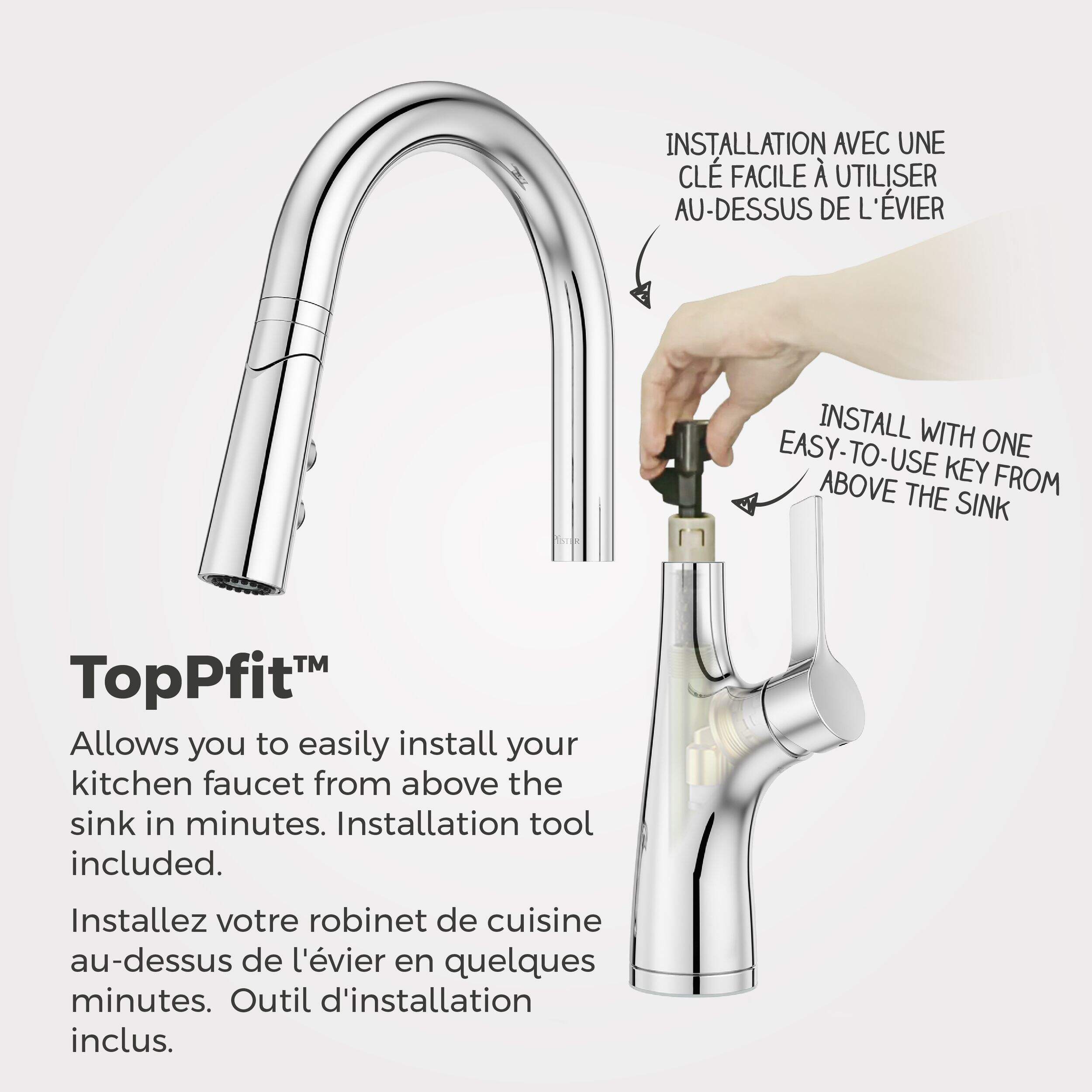 TopPfit™ technology allows you to easily install your kitchen faucet from above the sink in minutes