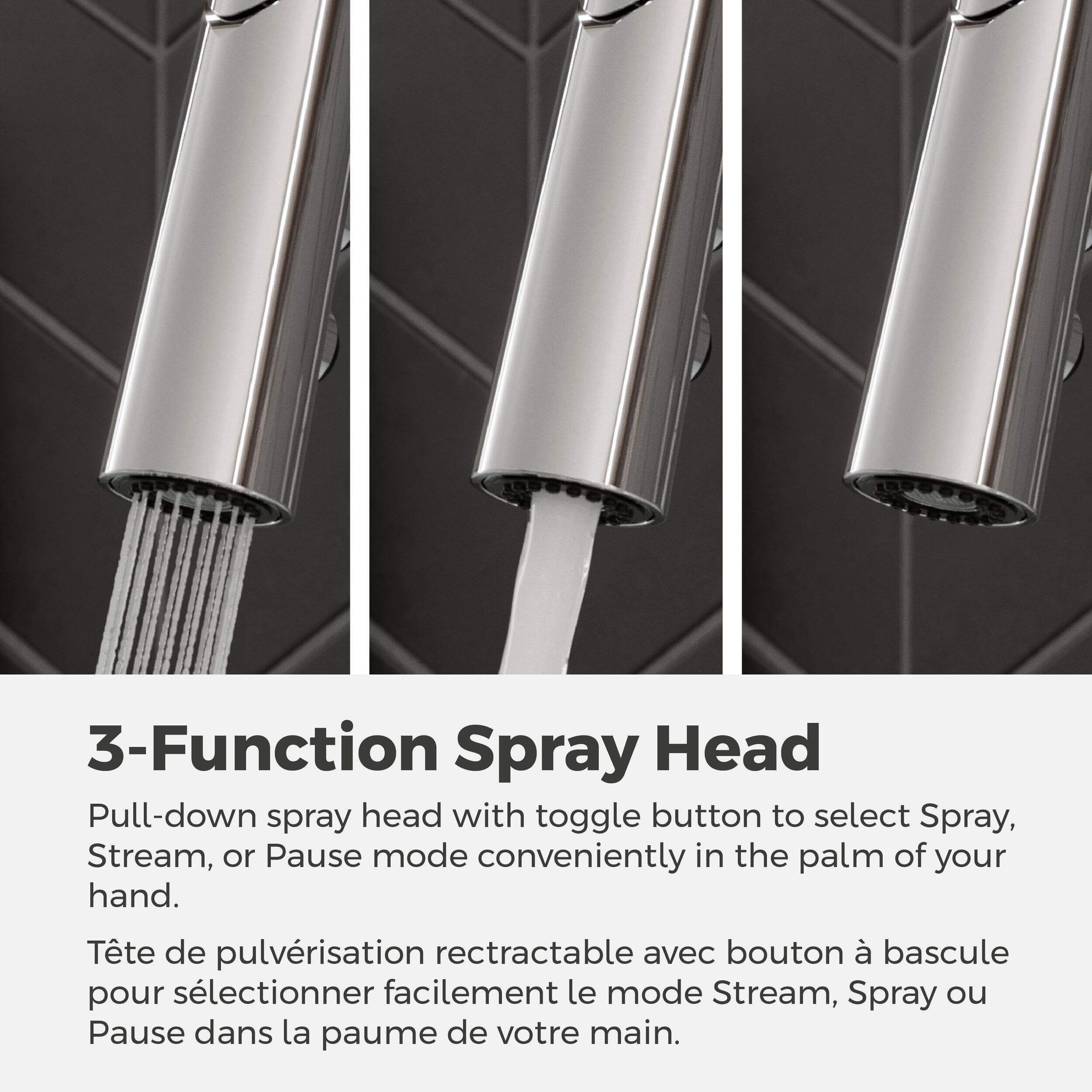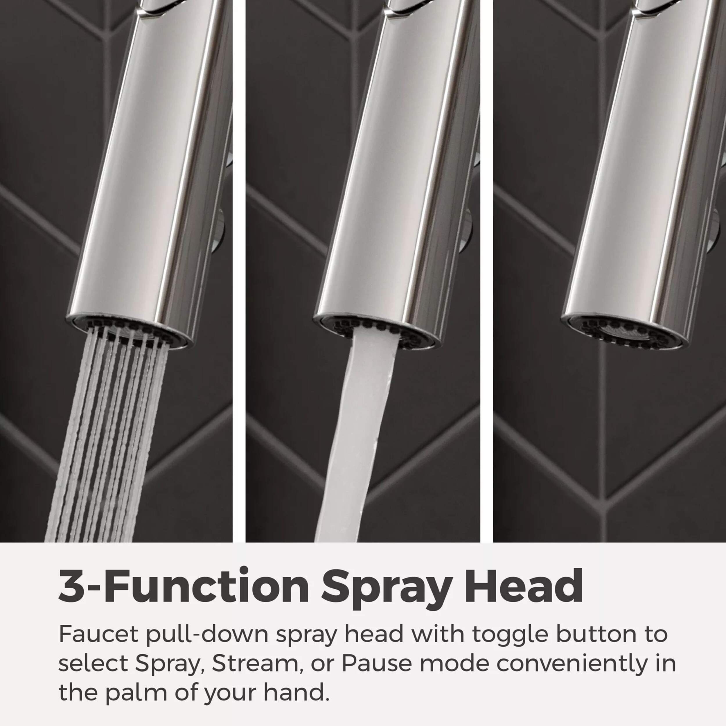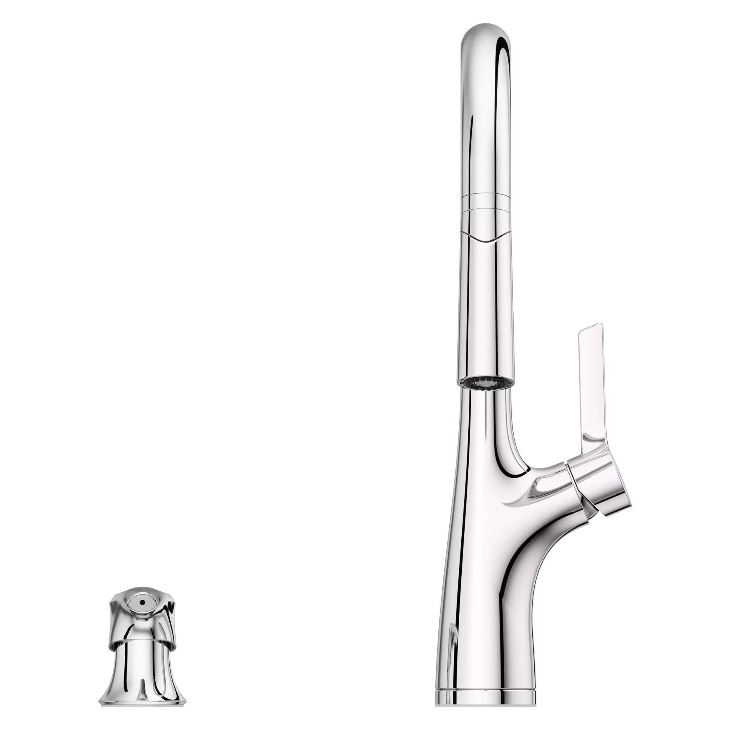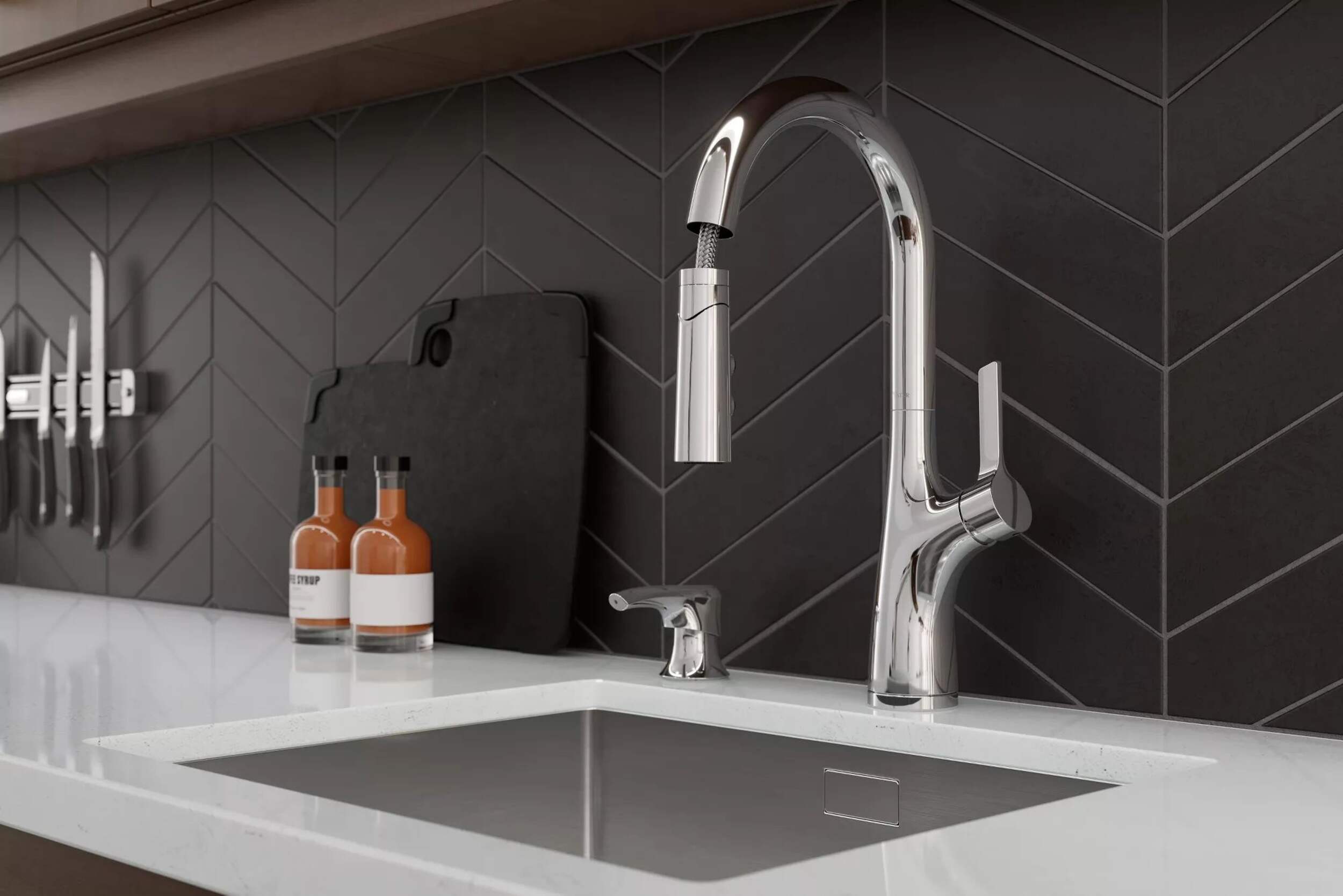 The Pfister Ceylon Pull-Down Kitchen Faucet in Polished Chrome combines elegant style with versatile functionality, making it a sophisticated addition to any kitchen. Featuring a pull-down spray head, this faucet provides extended reach and flexibility for everyday kitchen tasks. Its high-arc spout offers ample clearance for filling large pots, while the polished chrome finish adds a touch of modern shine.