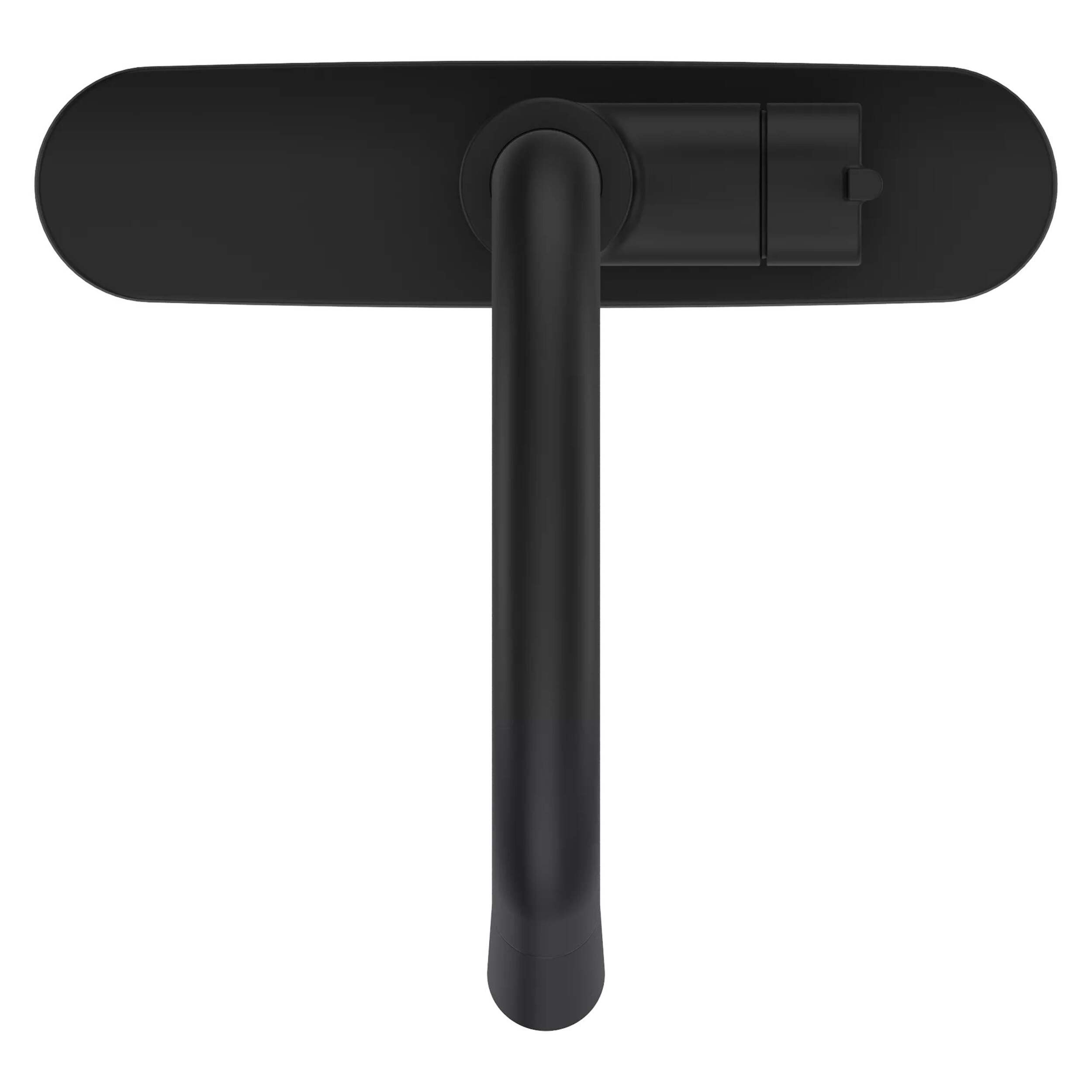 Elegant forward handle design underscores ergonomic function and helps where space behind the faucet is limited