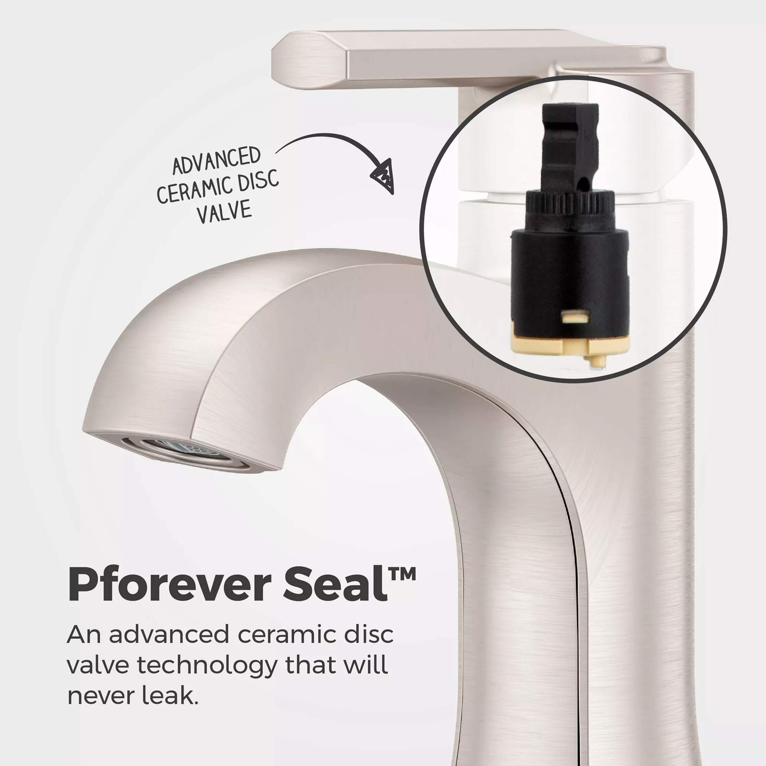 Pforever Seal™ features an advanced ceramic disc valve technology with a never-leak guarantee